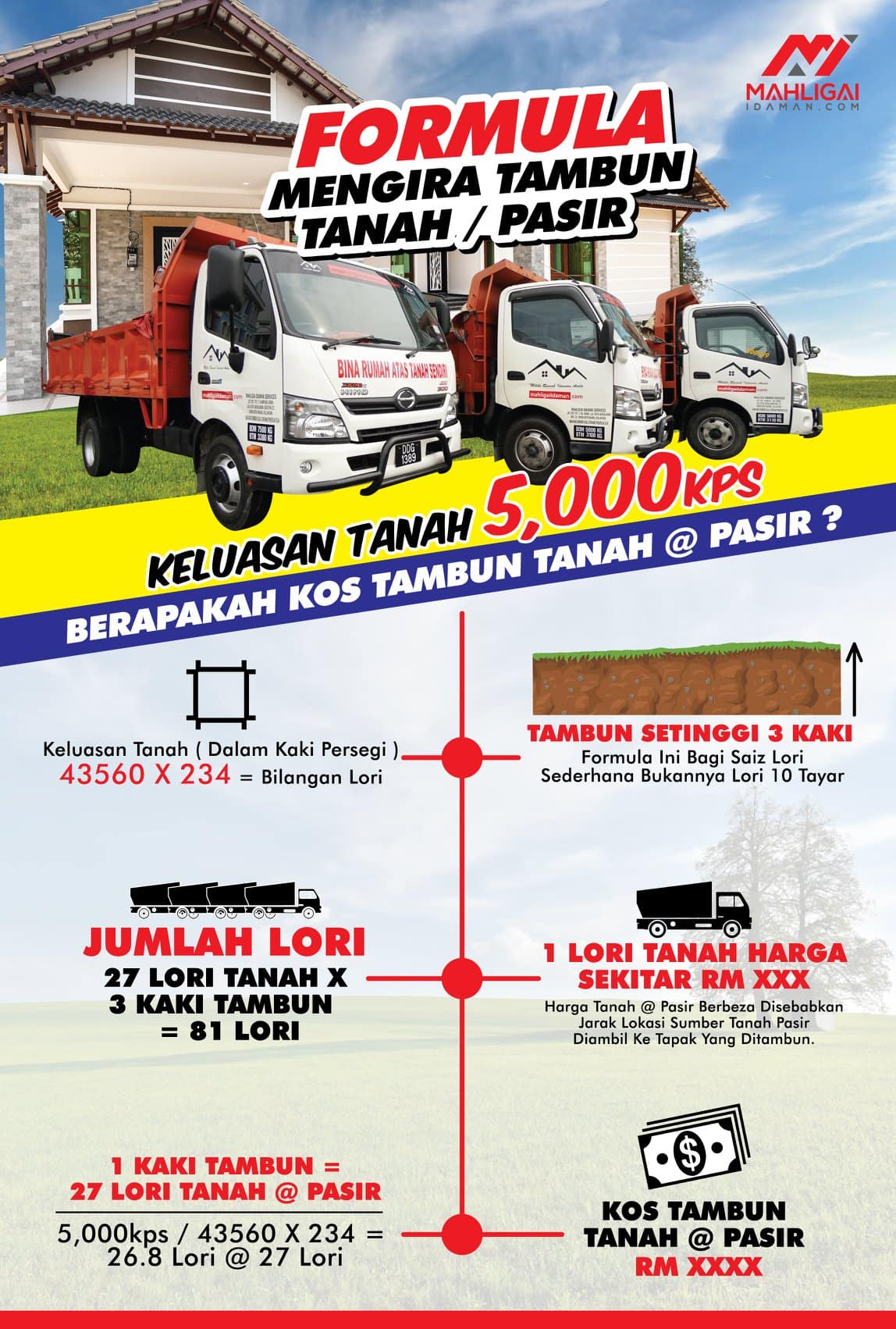 Ketahui cara pengiraan kos tambun tanah untuk tapak rumah anda.