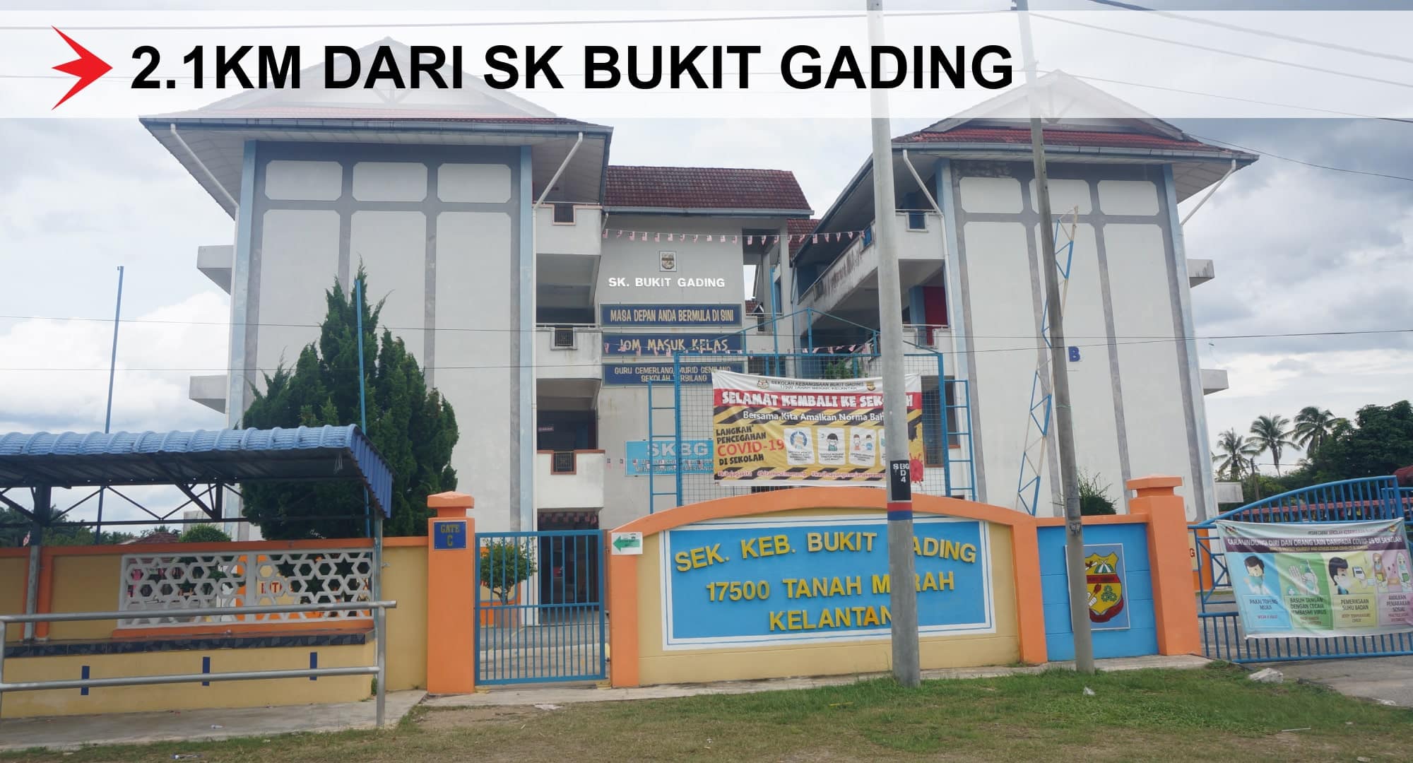 Lokasi tanah lot banglo Bukit Gading, Tanah Merah sangat strategik kerana terletak berdekatan dengan SK Bukit Gading. Lokasinya hanya 2.1 kilometer ke SK Bukit Gading dan 2.1 kilometer sahaja dengan Klinik Desa Bukit Gading menyebabkan kawasan ini menjadi tumpuan orang ramai untuk menetap disini.