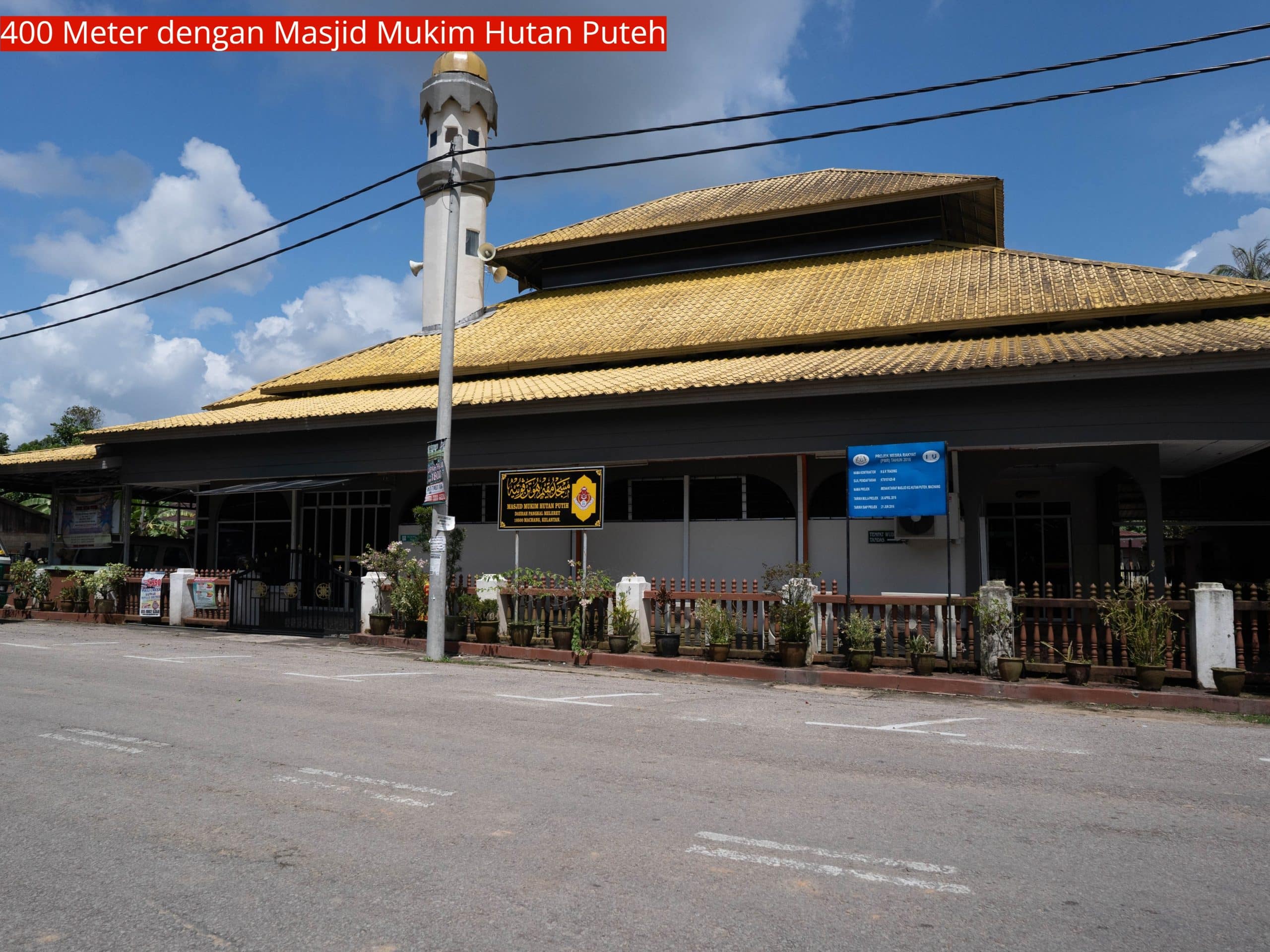 Lokasi tanah lot banglo Hutan Puteh, Machang sangat strategik kerana terletak berdekatan dengan Masjid Mukim Hutan Puteh. Lokasinya hanya 400 meter ke Masjid Mukim Hutan Puteh dan 450 meter sahaja dengan Desa Kg. Simpul Berlubang menyebabkan kawasan ini menjadi tumpuan orang ramai untuk menetap disini.