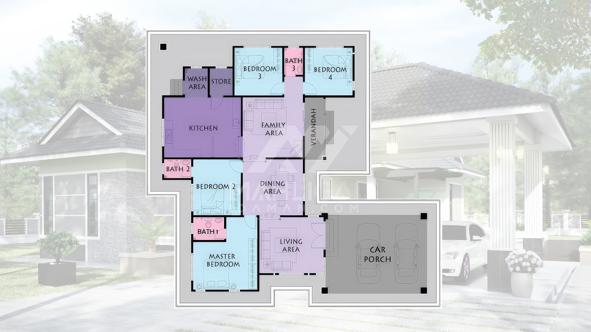 Saiz pelan ini berdasarkan pelan yang sedia ada. Pihak Mahligai Idaman tidak menetapkan sebarang jaminan bahawa pelan ini sesuai dengan bentuk atau keluasan tanah di tapak tanah lain. Kami juga tidak bertanggungjawab sekiranya pelan ini tidak mendapat kelulusan Pihak Berkuasa Tempatan (PBT) / Majlis Perbandaran di kawasan masing-masing.