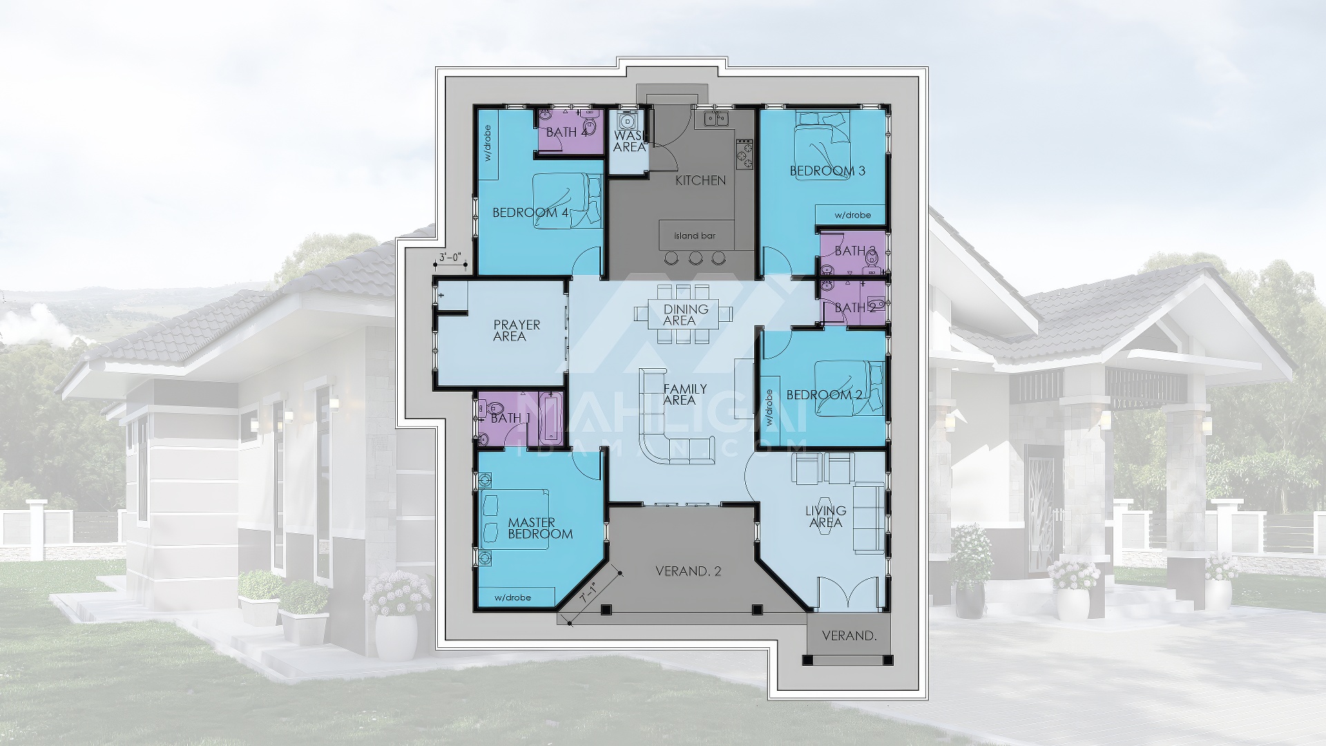 Saiz pelan ini berdasarkan pelan yang sedia ada. Pihak Mahligai Idaman tidak menetapkan sebarang jaminan bahawa pelan ini sesuai dengan bentuk atau keluasan tanah di tapak tanah lain. Kami juga tidak bertanggungjawab sekiranya pelan ini tidak mendapat kelulusan Pihak Berkuasa Tempatan (PBT) / Majlis Perbandaran di kawasan masing-masing.