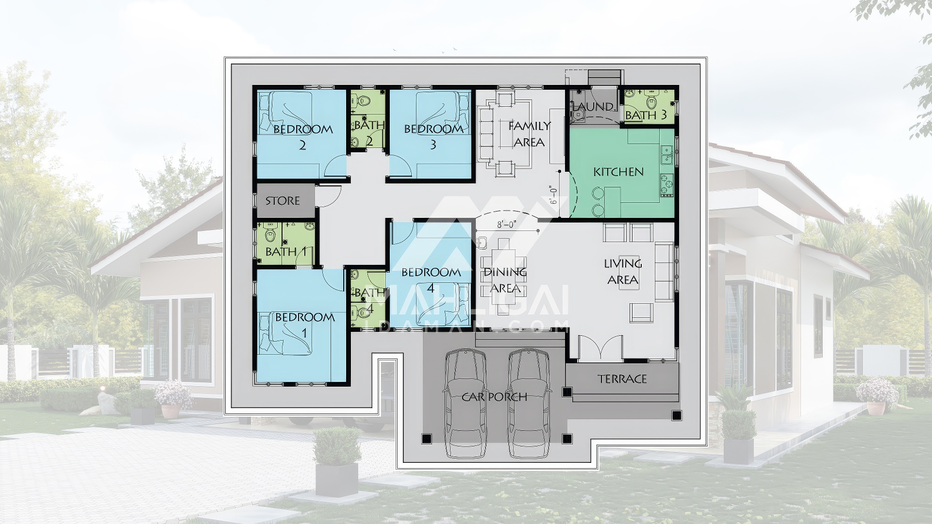 Saiz pelan ini berdasarkan pelan yang sedia ada. Pihak Mahligai Idaman tidak menetapkan sebarang jaminan bahawa pelan ini sesuai dengan bentuk atau keluasan tanah di tapak tanah lain. Kami juga tidak bertanggungjawab sekiranya pelan ini tidak mendapat kelulusan Pihak Berkuasa Tempatan (PBT) / Majlis Perbandaran di kawasan masing-masing.