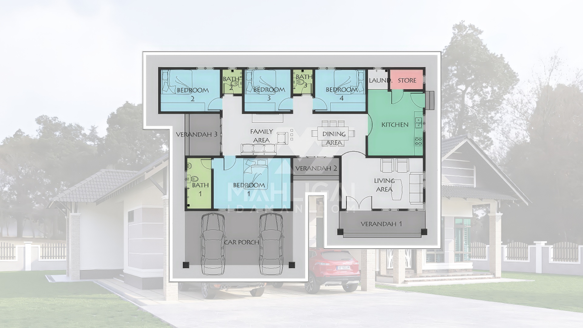 Saiz pelan ini berdasarkan pelan yang sedia ada. Pihak Mahligai Idaman tidak menetapkan sebarang jaminan bahawa pelan ini sesuai dengan bentuk atau keluasan tanah di tapak tanah lain. Kami juga tidak bertanggungjawab sekiranya pelan ini tidak mendapat kelulusan Pihak Berkuasa Tempatan (PBT) / Majlis Perbandaran di kawasan masing-masing.