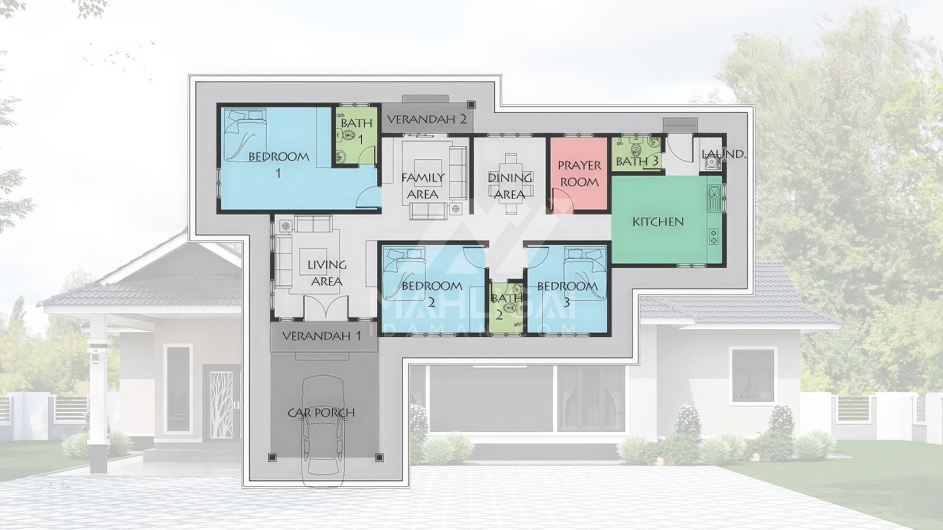 Saiz pelan ini berdasarkan pelan yang sedia ada. Pihak Mahligai Idaman tidak menetapkan sebarang jaminan bahawa pelan ini sesuai dengan bentuk atau keluasan tanah di tapak tanah lain. Kami juga tidak bertanggungjawab sekiranya pelan ini tidak mendapat kelulusan Pihak Berkuasa Tempatan (PBT) / Majlis Perbandaran di kawasan masing-masing.