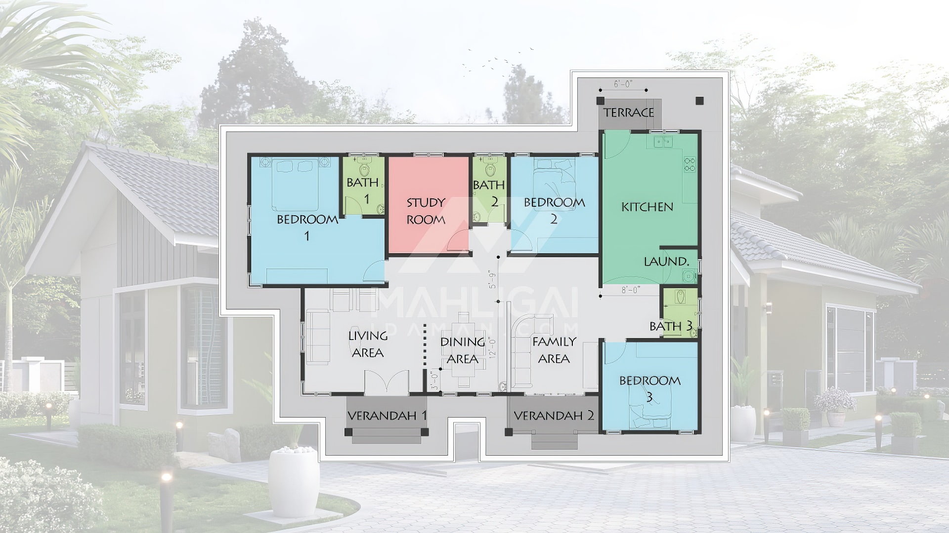 Saiz pelan ini berdasarkan pelan yang sedia ada. Pihak Mahligai Idaman tidak menetapkan sebarang jaminan bahawa pelan ini sesuai dengan bentuk atau keluasan tanah di tapak tanah lain. Kami juga tidak bertanggungjawab sekiranya pelan ini tidak mendapat kelulusan Pihak Berkuasa Tempatan (PBT) / Majlis Perbandaran di kawasan masing-masing.