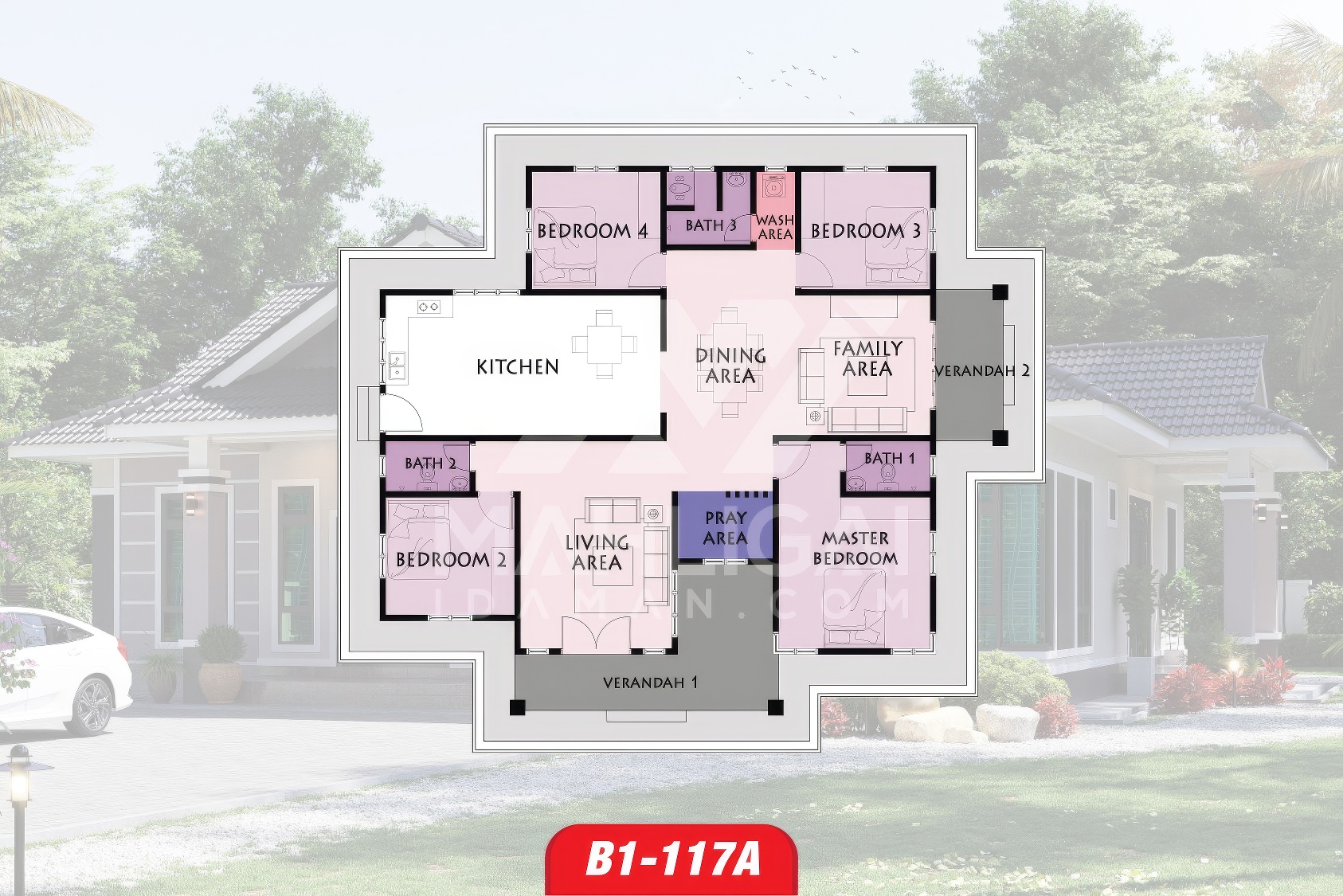 Saiz pelan ini berdasarkan pelan yang sedia ada. Pihak Mahligai Idaman tidak menetapkan sebarang jaminan bahawa pelan ini sesuai dengan bentuk atau keluasan tanah di tapak tanah lain. Kami juga tidak bertanggungjawab sekiranya pelan ini tidak mendapat kelulusan Pihak Berkuasa Tempatan (PBT) / Majlis Perbandaran di kawasan masing-masing.