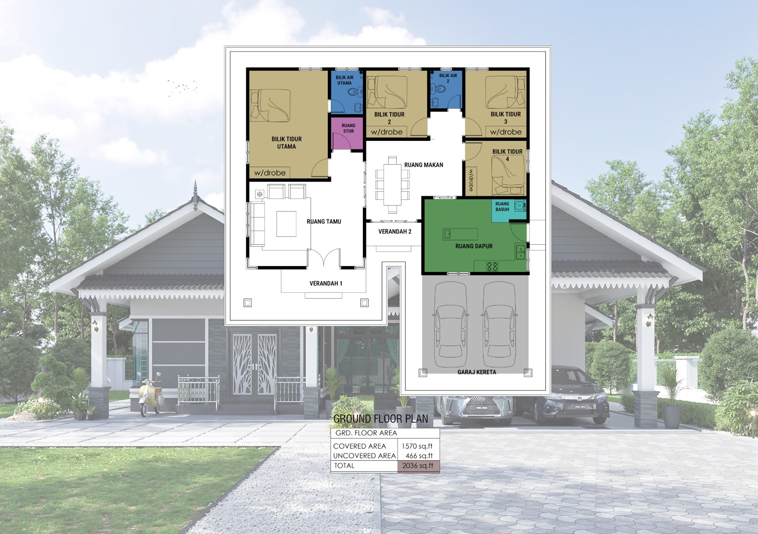 Pakej ini merupakan pakej pelan lengkap dengan file-file original pelan yang boleh digunakan oleh arkitek untuk perubahan dan ubahsuai.