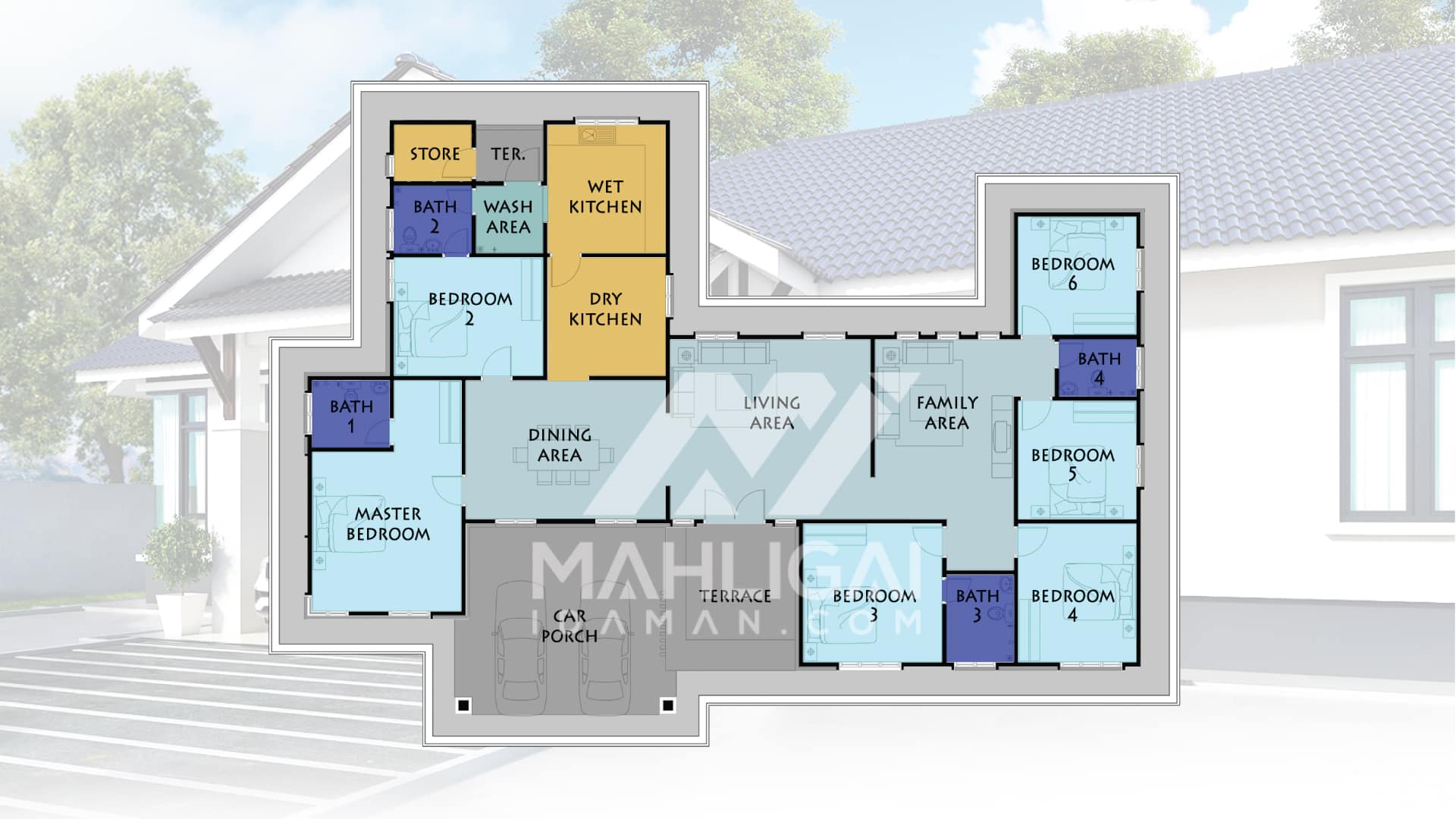 1) Saiz pelan ini berdasarkan pelan yang sedia ada. Pihak Mahligai Idaman tidak menetapkan sebarang jaminan bahawa pelan ini sesuai dengan bentuk atau keluasan tanah di tapak tanah lain. Kami juga tidak bertanggungjawab sekiranya pelan ini tidak mendapat kelulusan Pihak Berkuasa Tempatan (PBT) / Majlis Perbandaran di kawasan masing-masing.