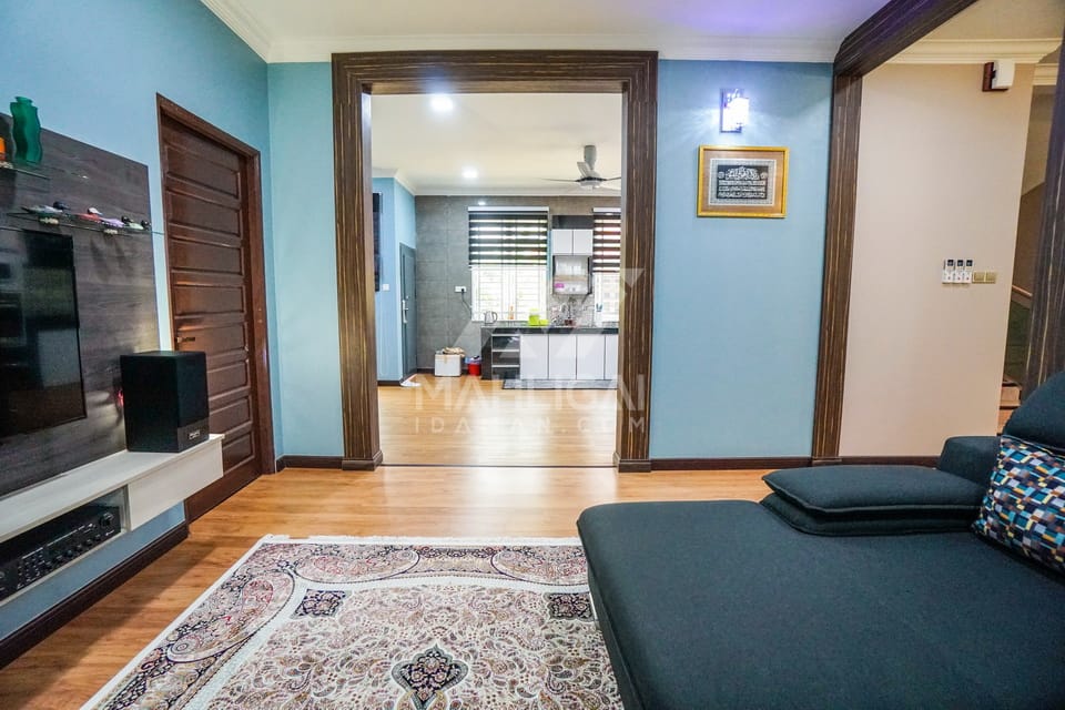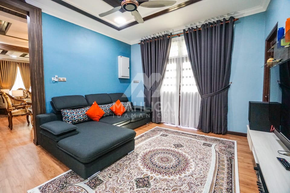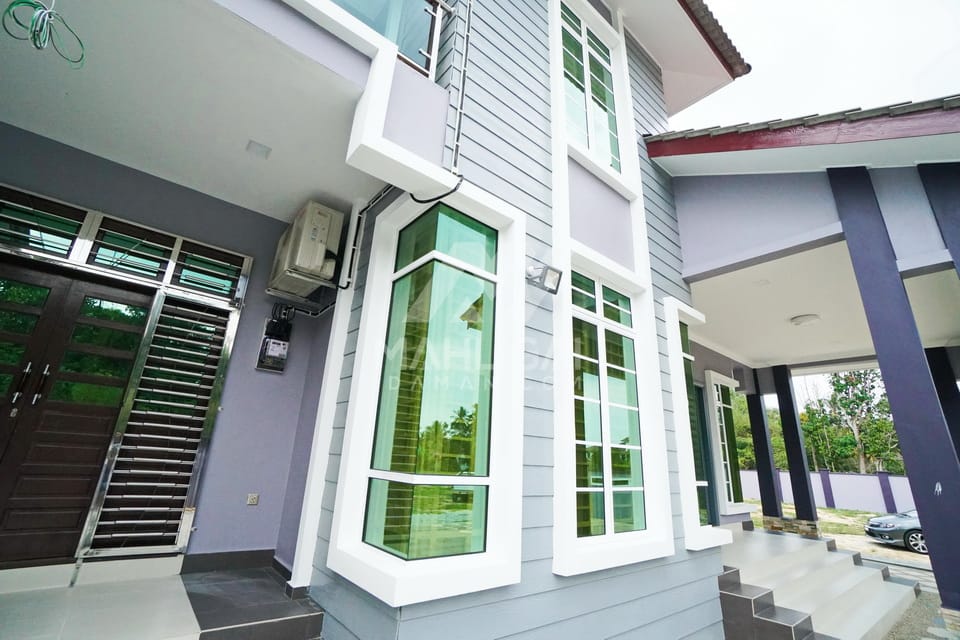 Banglo ini dibina dengan spesifikasi asas Pakej Gold dan beberapa penambahan dari sudut design seperti penggunaan batu hiasan pada tiang luar rumah, pengguna batu cipping pada bahgian porch, torehan (groove lines) pada bahagian dinding luar rumah, shera board serta penggunaan cermin ‘reflect green‘.