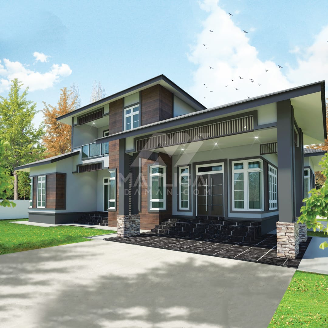 Banglo ini dibina dengan spesifikasi asas Pakej Gold dan beberapa penambahan dari sudut design seperti penggunaan batu hiasan pada tiang luar rumah, pengguna batu cipping pada bahgian porch, torehan (groove lines) pada bahagian dinding luar rumah, shera board serta penggunaan cermin ‘reflect green‘.