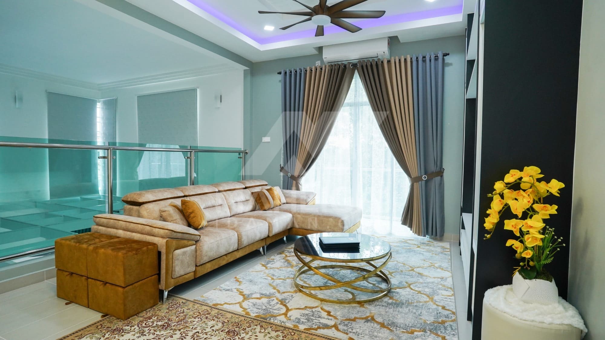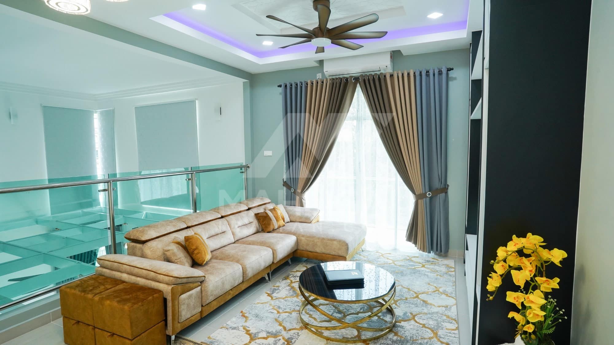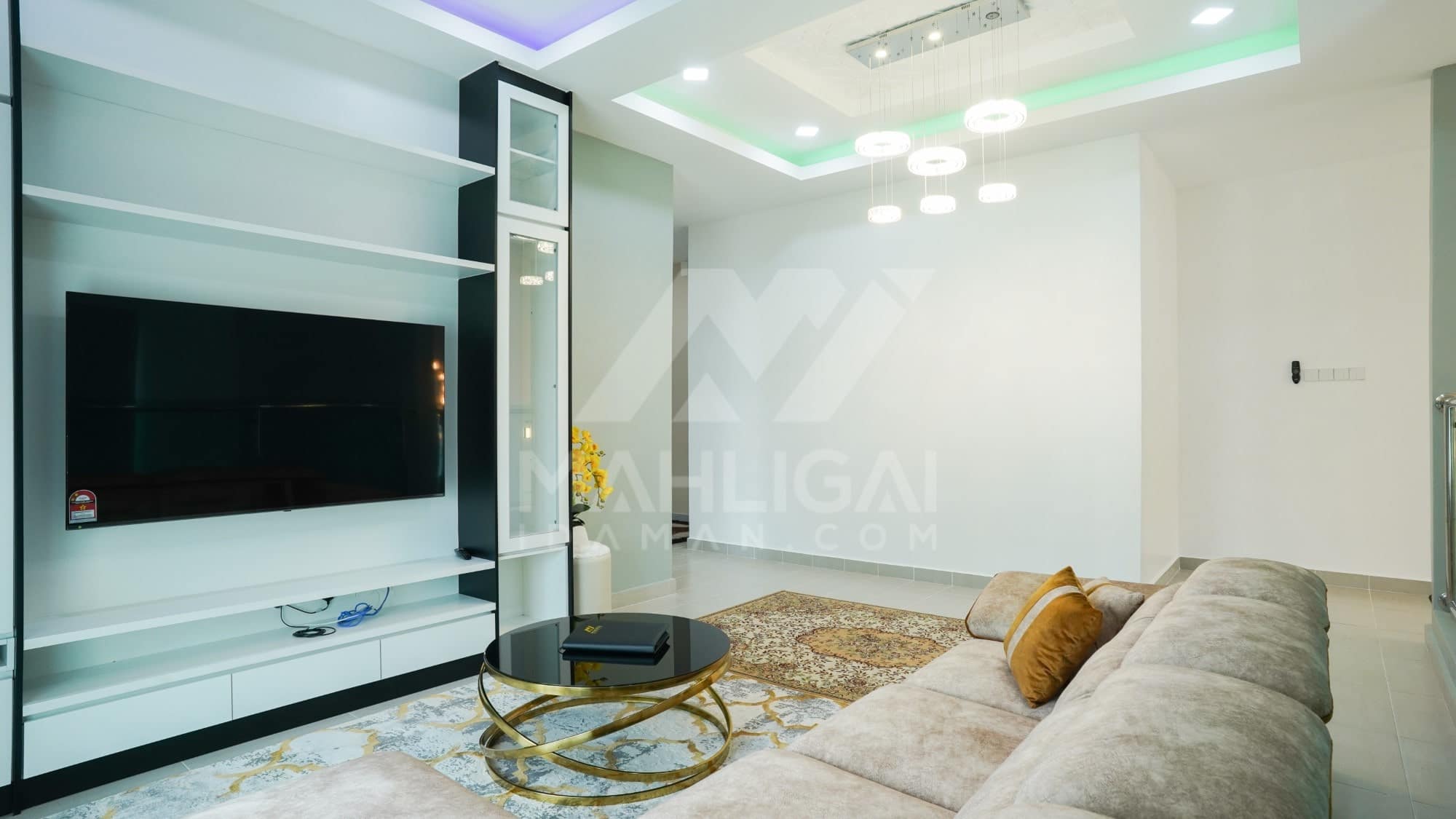 Banglo ini dibina dengan spesifikasi asas Pakej Gold dan beberapa penambahan dari sudut design seperti pemasangan cornice pada seluruh bahagian tingkap luar rumah, torehan groove line, pemasangan batu hiasan pada dinding luar rumah serta pemasangan islamic geometry pada porch membuatkan rumah ini lebih aggun.