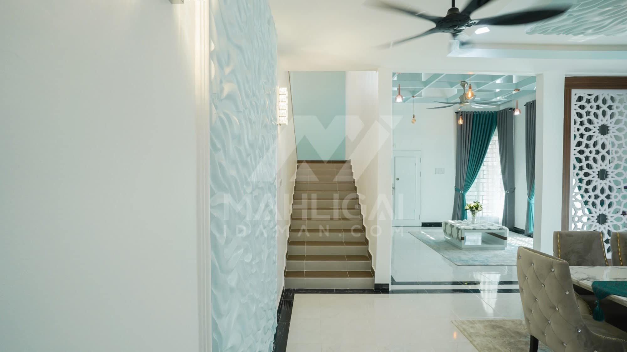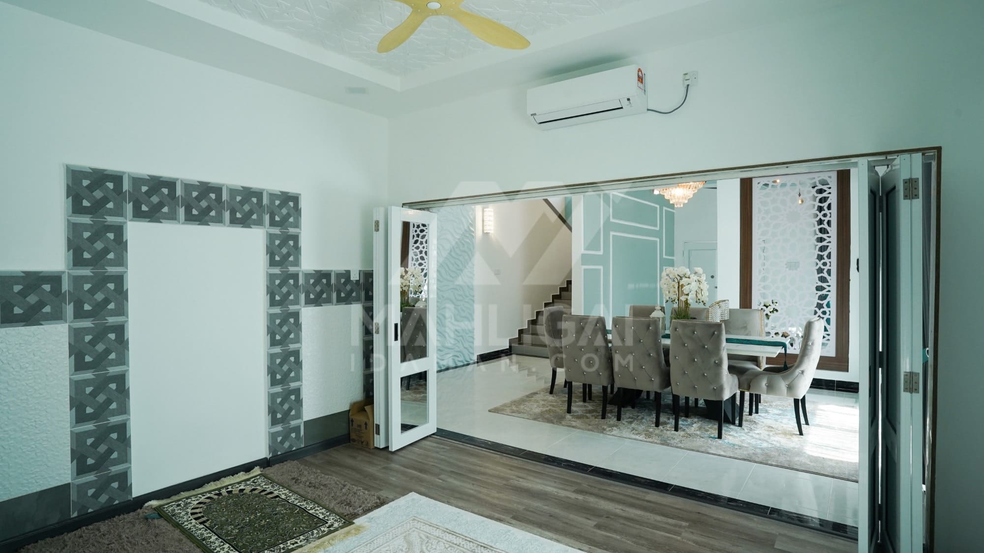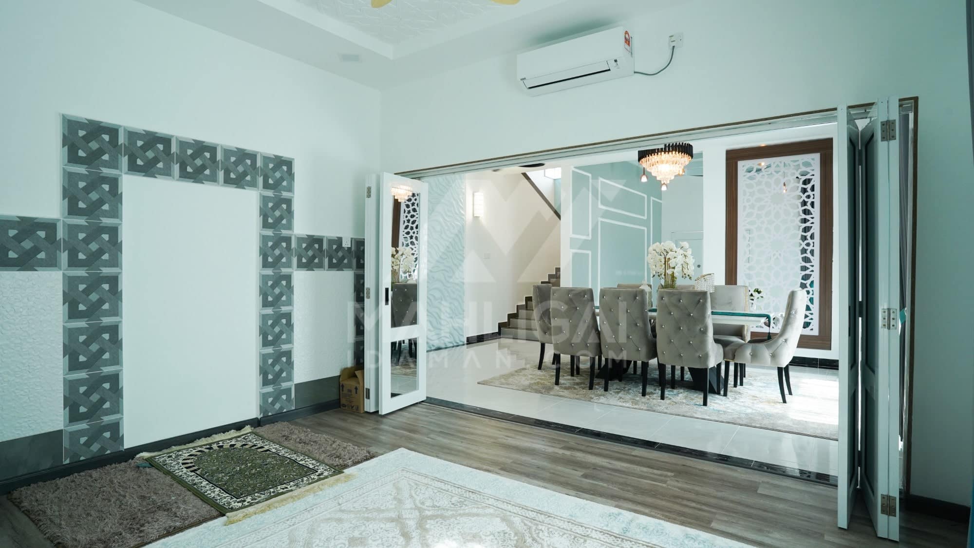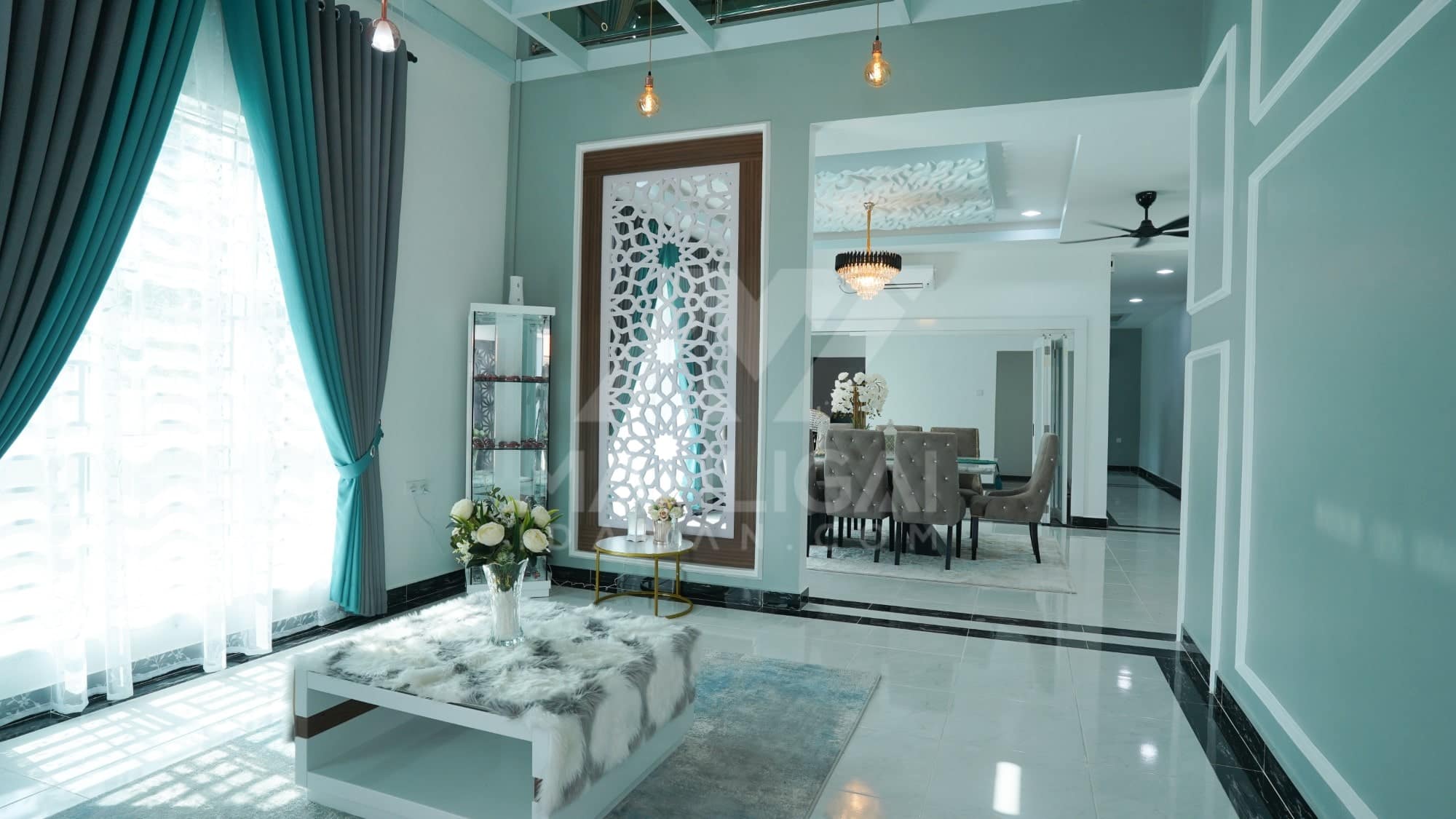 Banglo milik klien kami En Sukiman telah siap dibina sepenuhnya di Kemaman,Terengganu. Keunikan banglo ini ia mempunyai ruang terbuka di bahagian atas dan bawah. Banglo ini dilengkapi dengan lima (5) bilik tidur dan tujuh (7) bilik air. Banglo yang berkeluasan 4184 kaki persegi ini menggabungkan ciri-ciri banglo moden berkonsepkan islamic iaitu dari segi rekabentuk dalaman dan luaran yang sangat menarik. Dari segi penggunaan tona warna mereka memilih gabungan warna turquoise, hijau muda dan soft grey, manakala pada bahagian dalam rumah pula mereka memilih warna lembut seperti putih, foggy grey, veridian green dan juga half baked.
