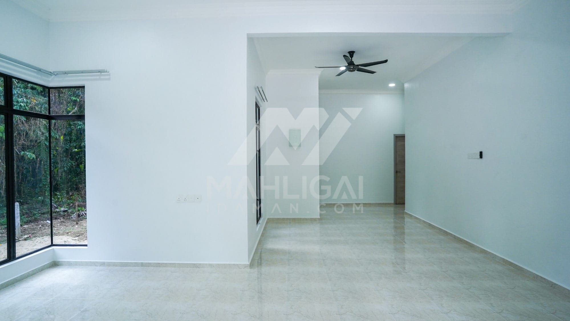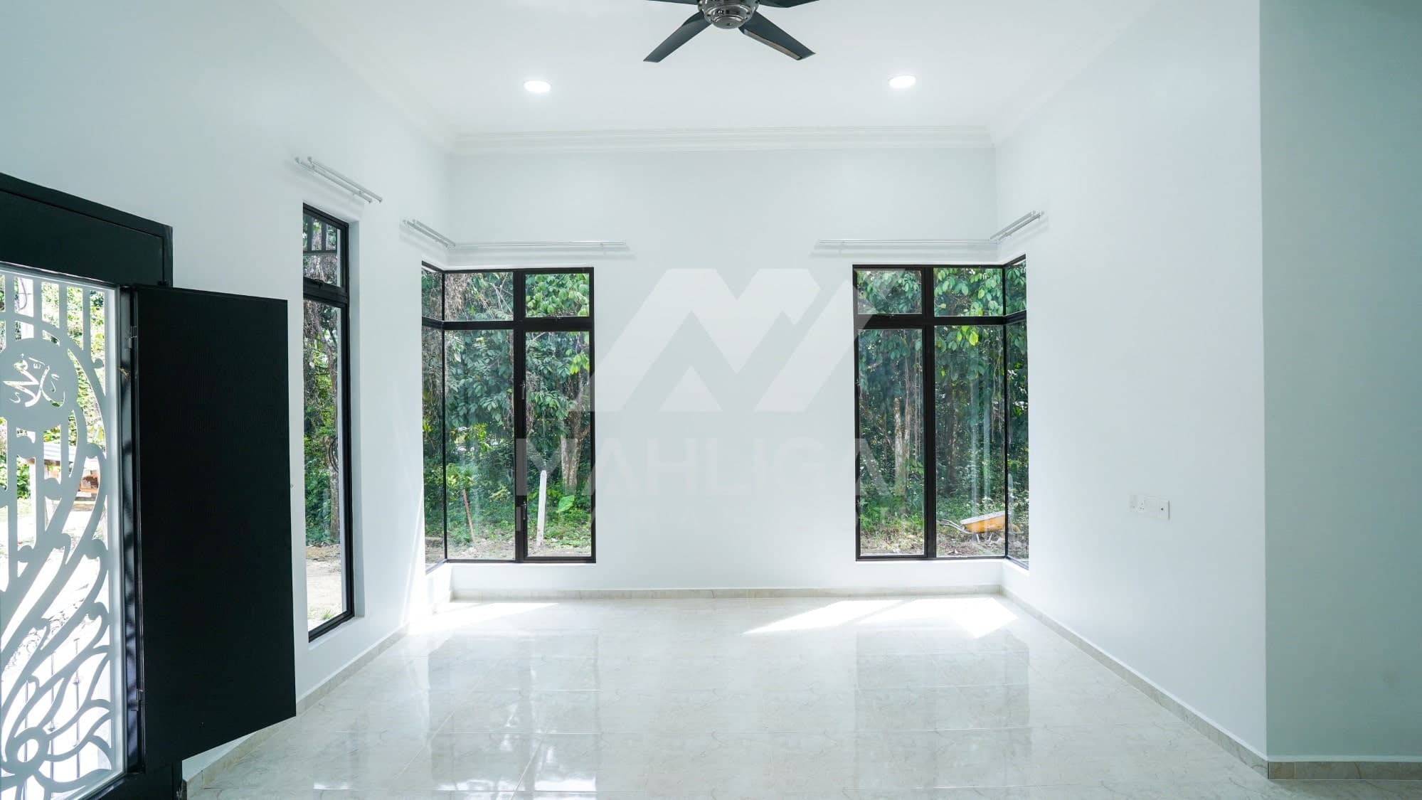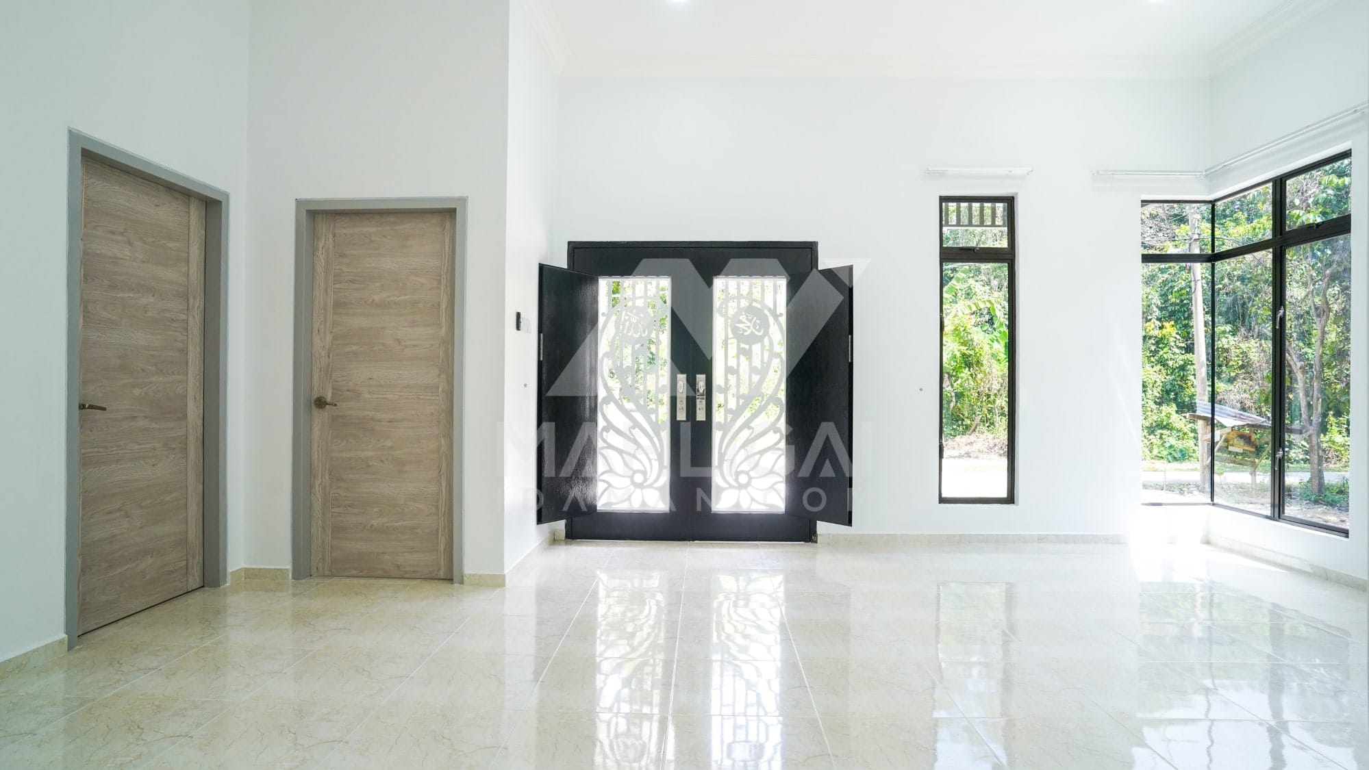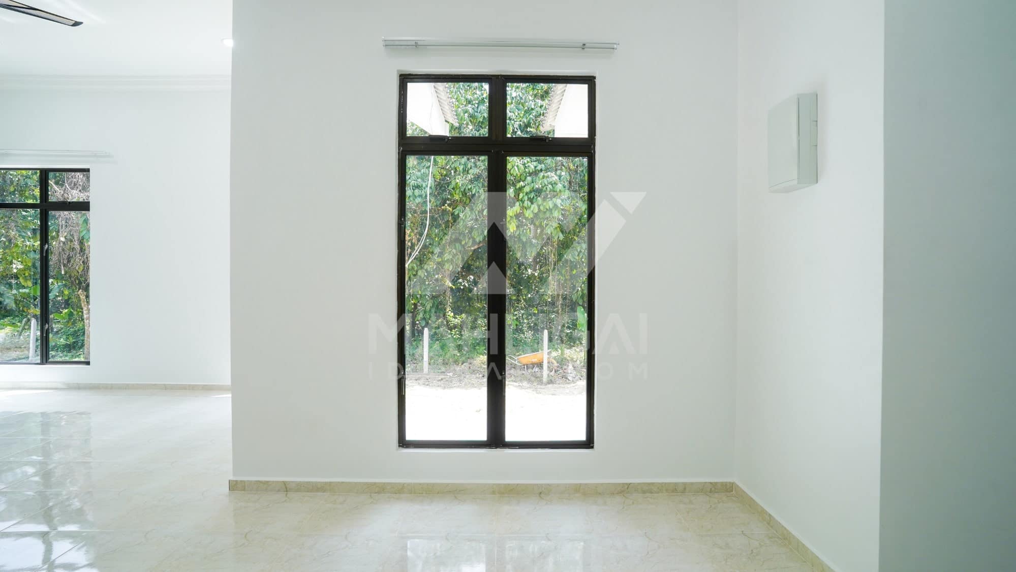 Banglo ini dibina dengan spesifikasi asas Pakej Silver dengan penambahan aksesori iaitu pemasangan cornice pada keseluruhan tingkap dan dinding luar rumah, groove line pada dinding di bahagian luar rumah