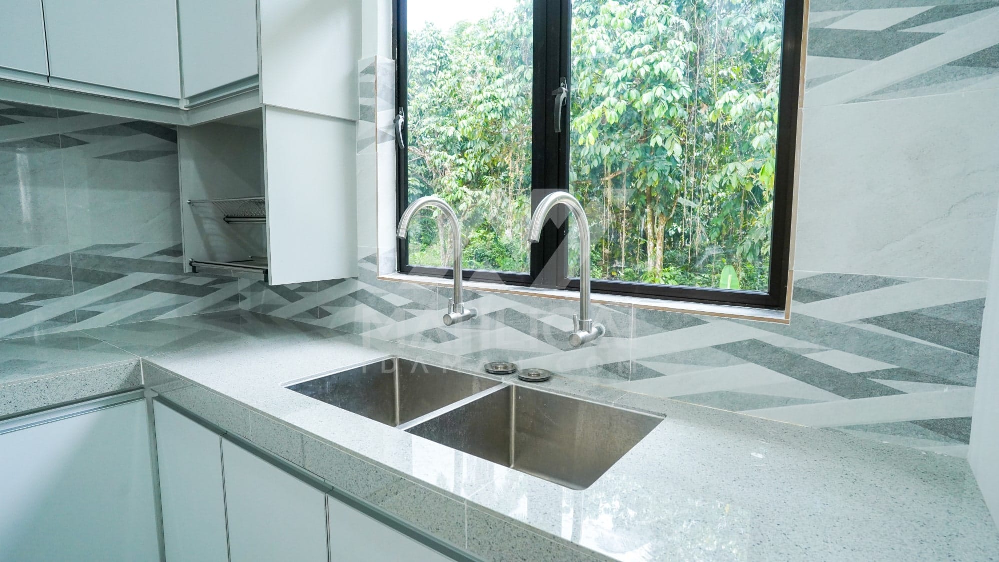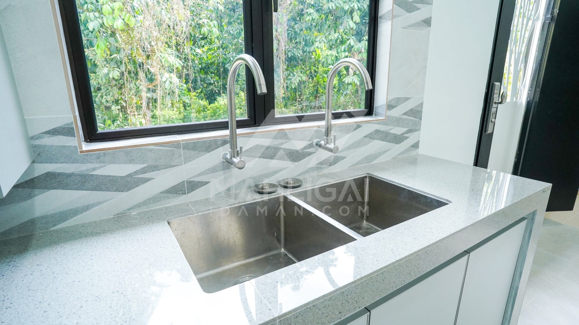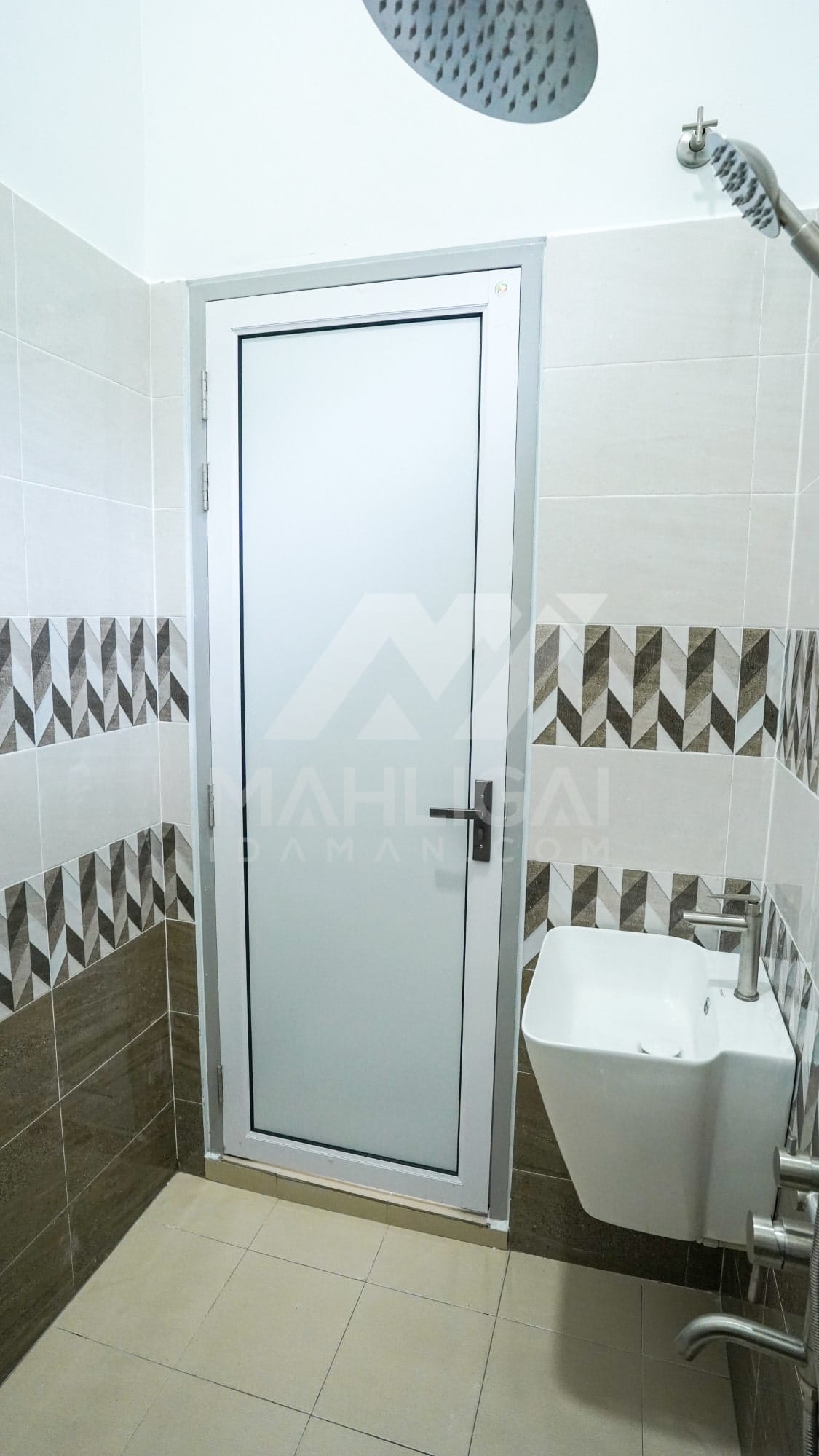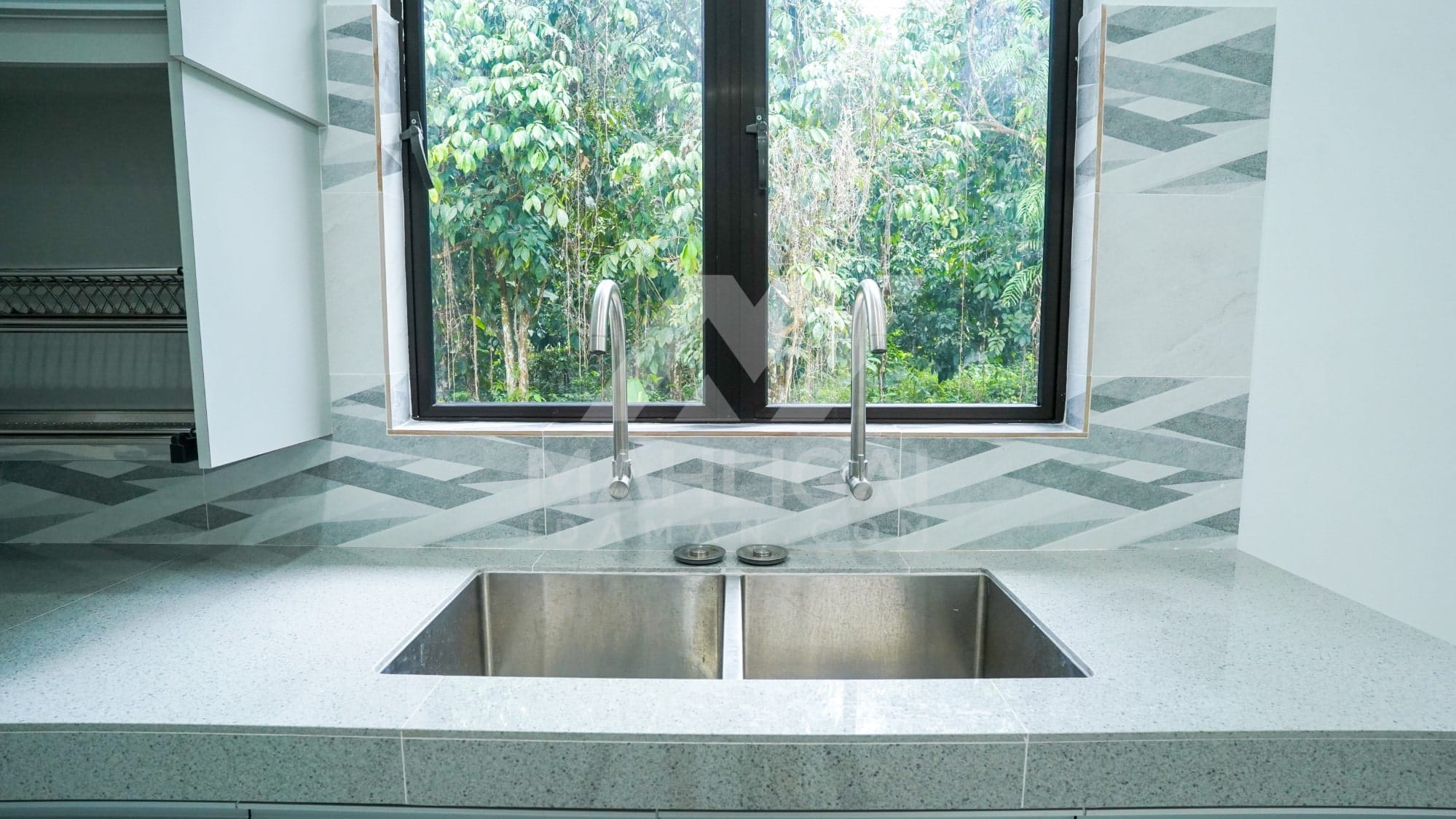 Banglo ini dibina dengan spesifikasi asas Pakej Silver dengan penambahan aksesori iaitu pemasangan cornice pada keseluruhan tingkap dan dinding luar rumah, groove line pada dinding di bahagian luar rumah