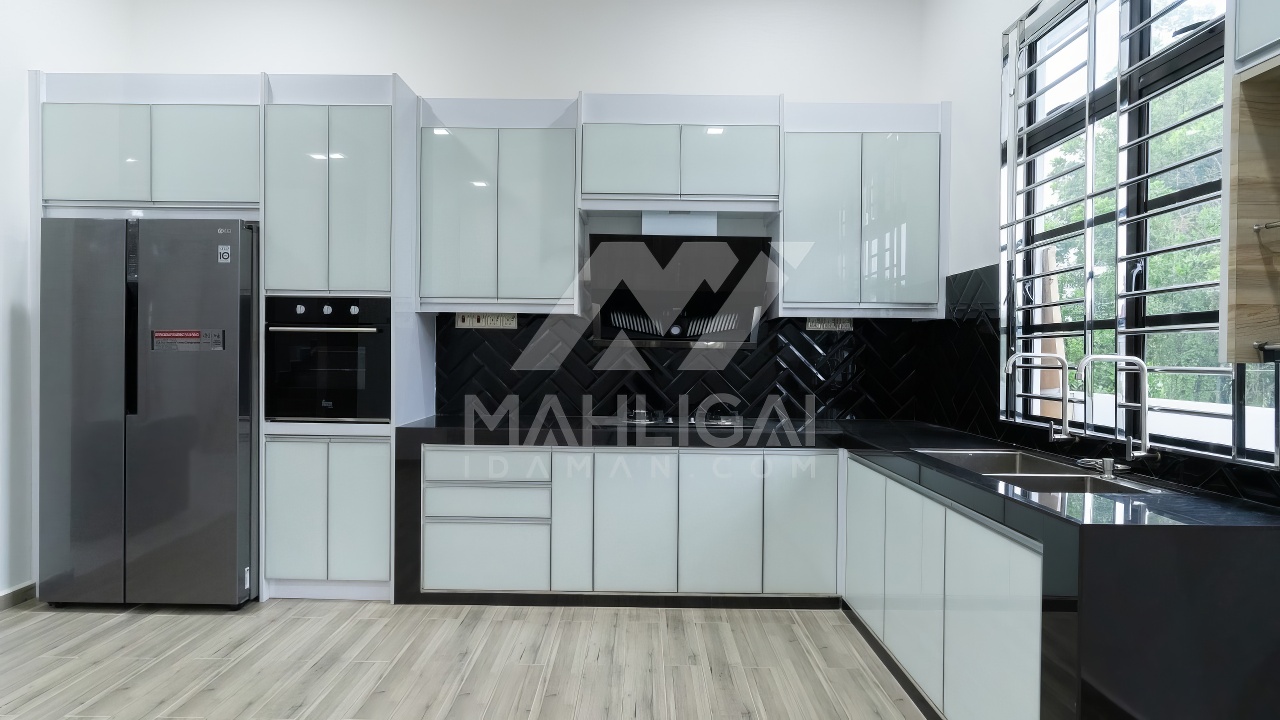 Banglo ini dibina dengan spesifikasi asas pakej gold dengan penambahan aksesori iaitu pemasangan cornice pada keseluruhan tingkap dan dinding luar rumah, groove line pada dinding di bahagian luar rumah
