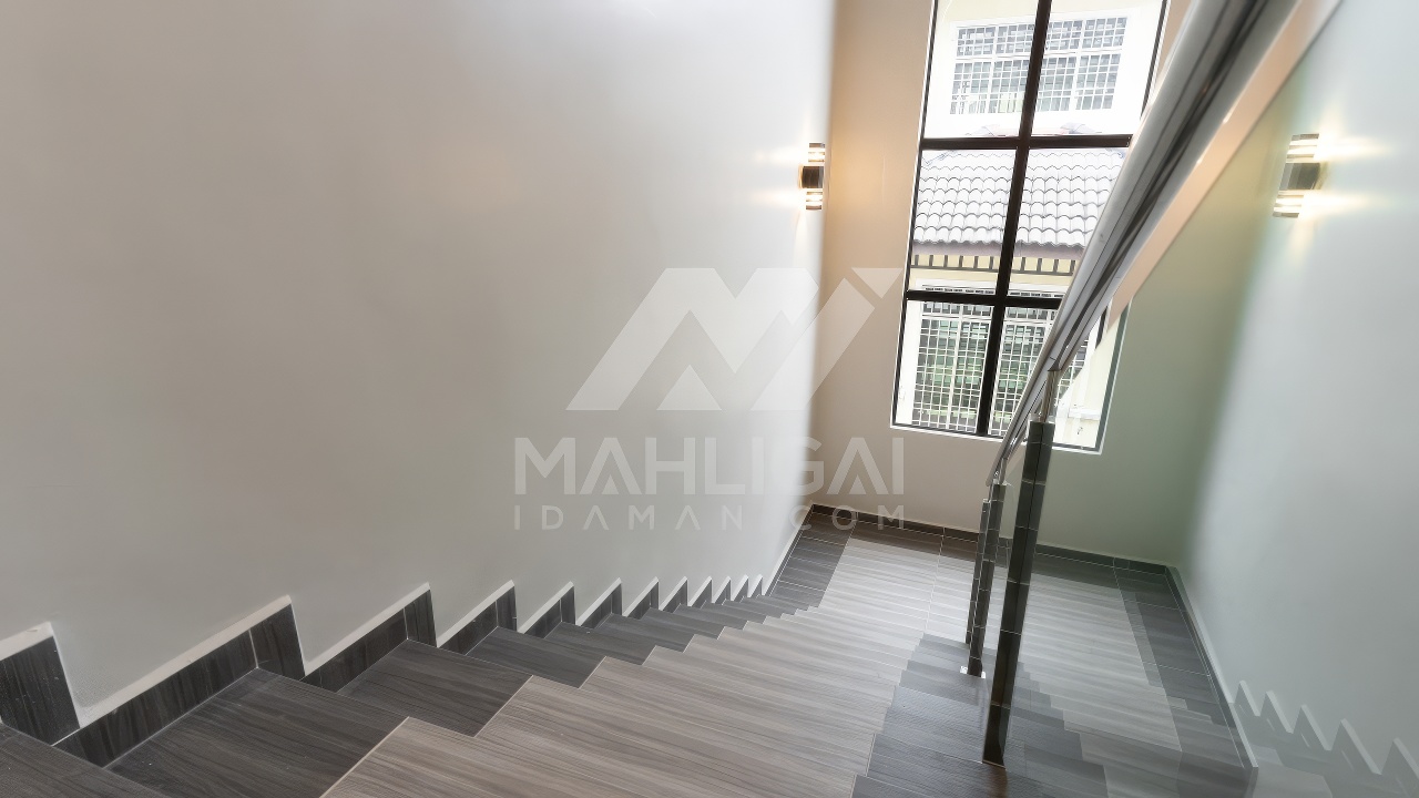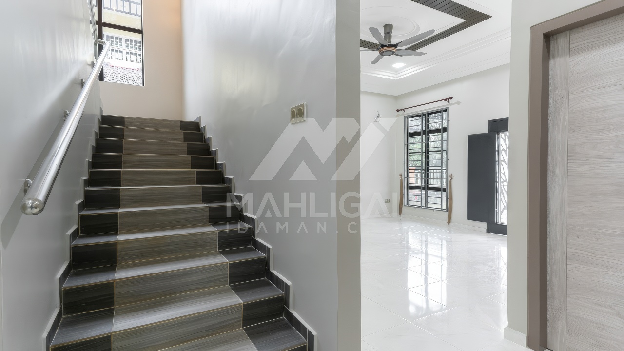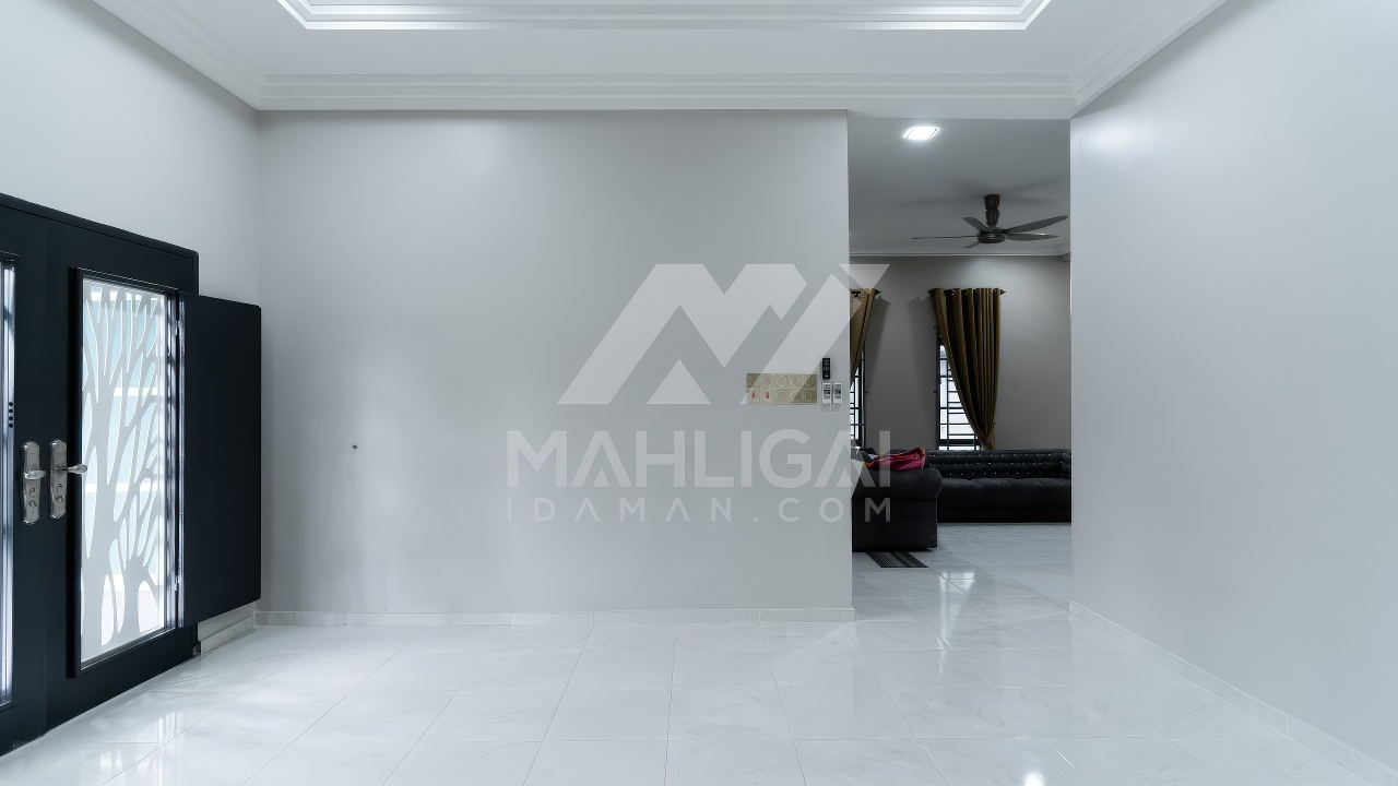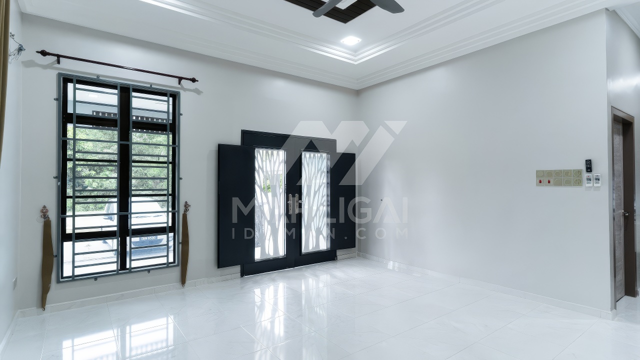 Banglo ini dibina dengan spesifikasi asas pakej gold dengan penambahan aksesori iaitu pemasangan cornice pada keseluruhan tingkap dan dinding luar rumah, groove line pada dinding di bahagian luar rumah