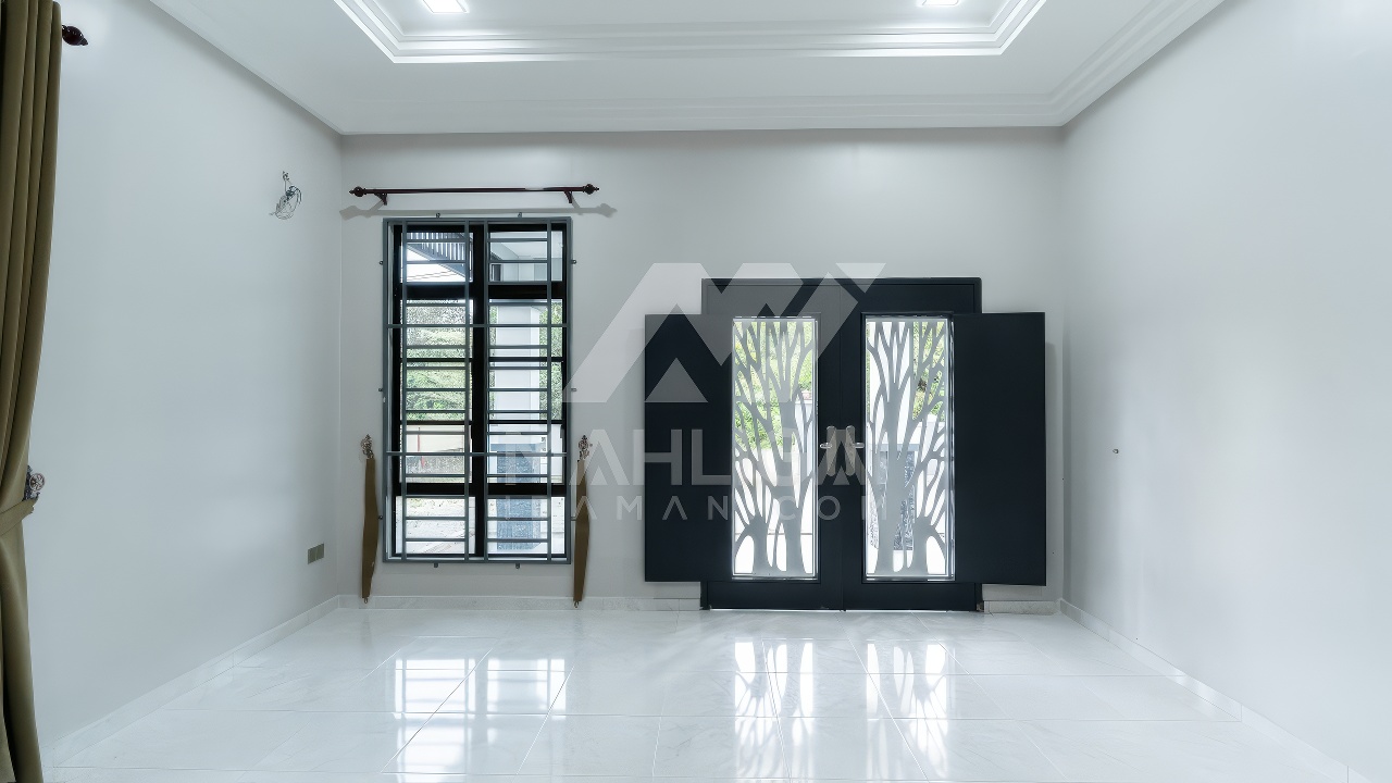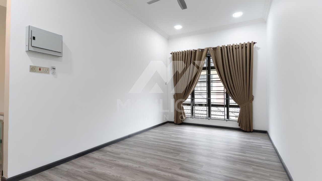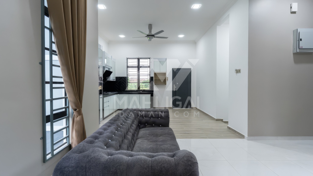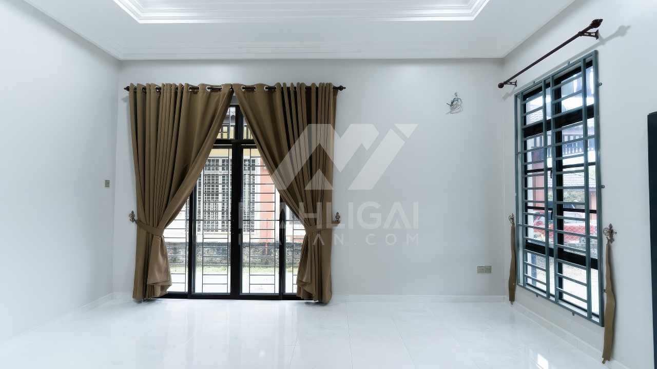 Banglo ini dibina dengan spesifikasi asas pakej gold dengan penambahan aksesori iaitu pemasangan cornice pada keseluruhan tingkap dan dinding luar rumah, groove line pada dinding di bahagian luar rumah