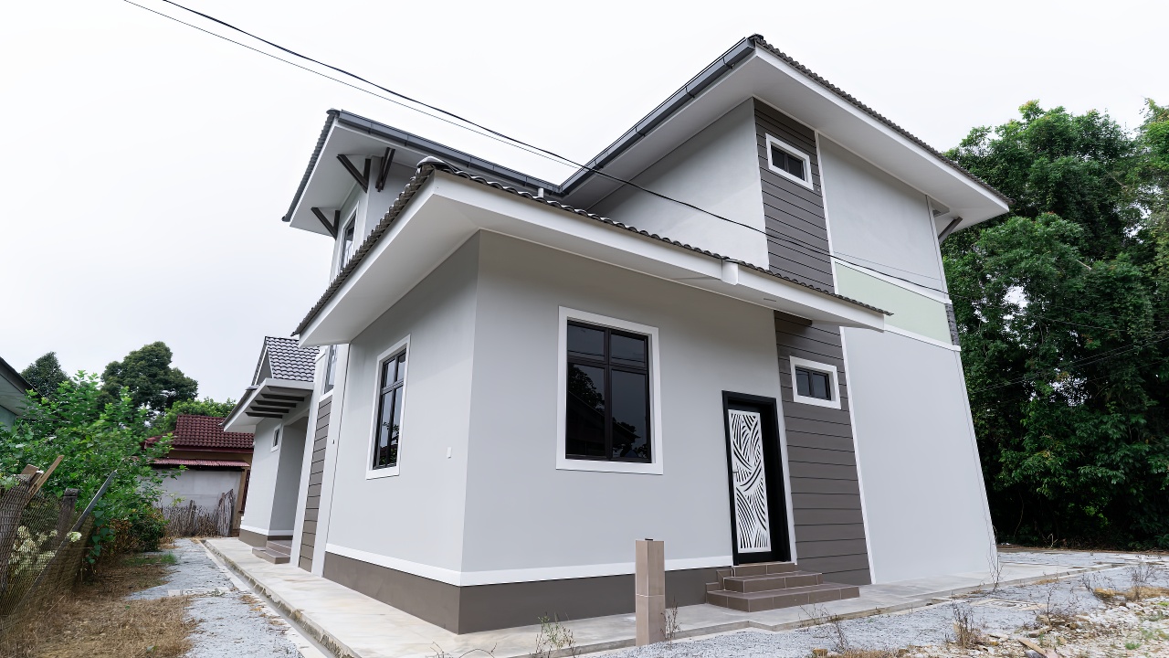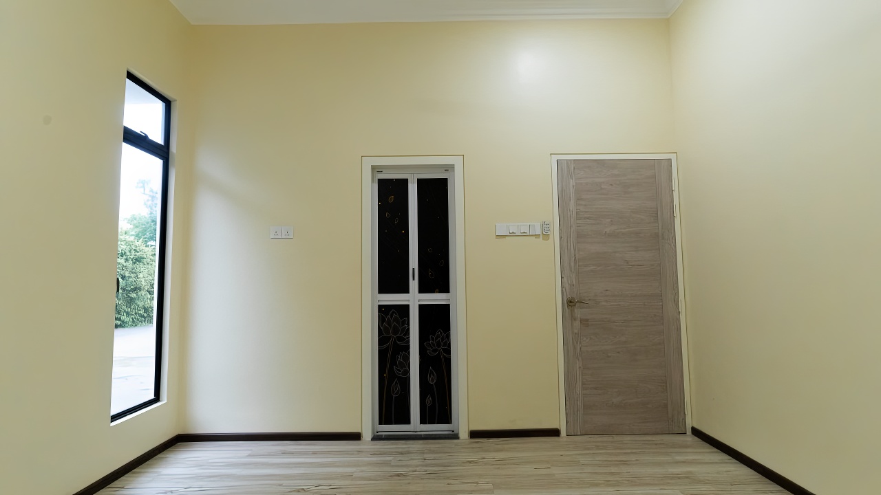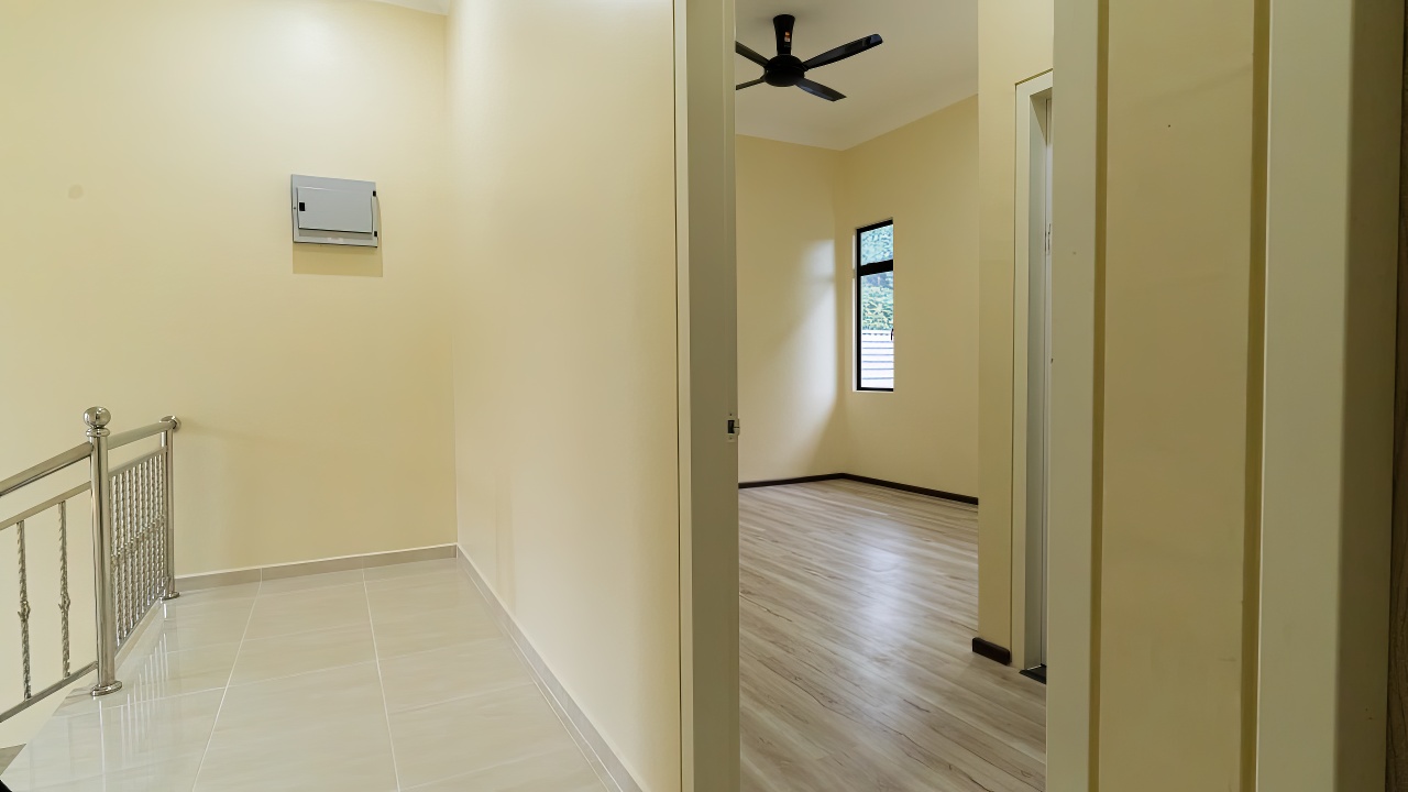 Banglo ini dibina dengan spesifikasi asas pakej silver dengan penambahan aksesori iaitu pemasangan cornice pada keseluruhan tingkap dan dinding luar rumah, groove line pada dinding di bahagian luar rumah.