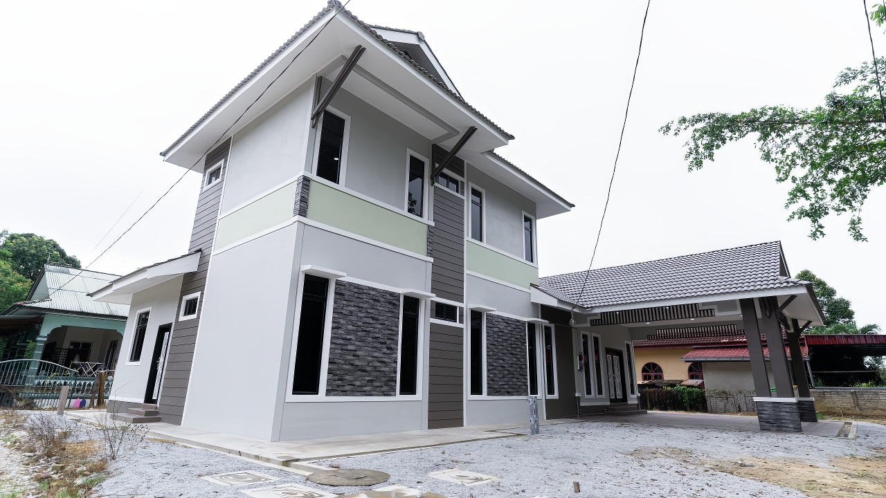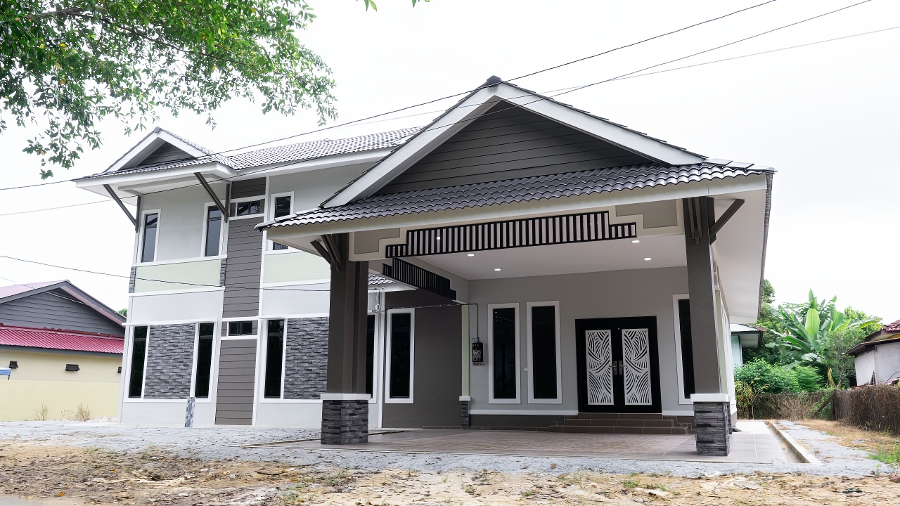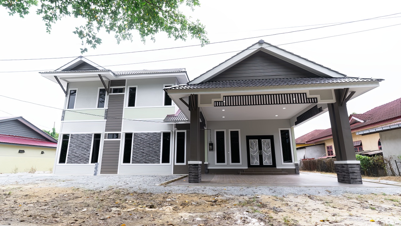 Banglo dua tingkat milik klien kami Encik Saufi kini telah siap dibina sepenuhnya di Kg. Tok Jiring, Kuala Terengganu. Banglo ini dilengkapi dengan lima (5) bilik tidur dan lima (5) bilik air. Banglo yang berkeluasan 2,969 kaki persegi ini menggabungkan ciri-ciri banglo moden iaitu dari segi rekabentuk dalaman dan luaran yang sangat menarik. Dari segi penggunaan tona warna kelabu dan hitam. Bahagian dalam rumah pula mereka memilih warna kuning dan putih menaikan lagi seri dan kemewahan dalam rumah.