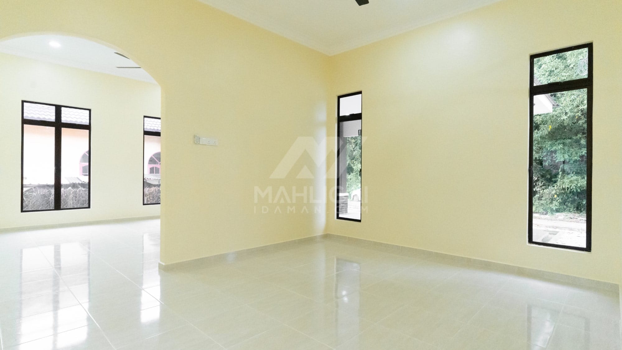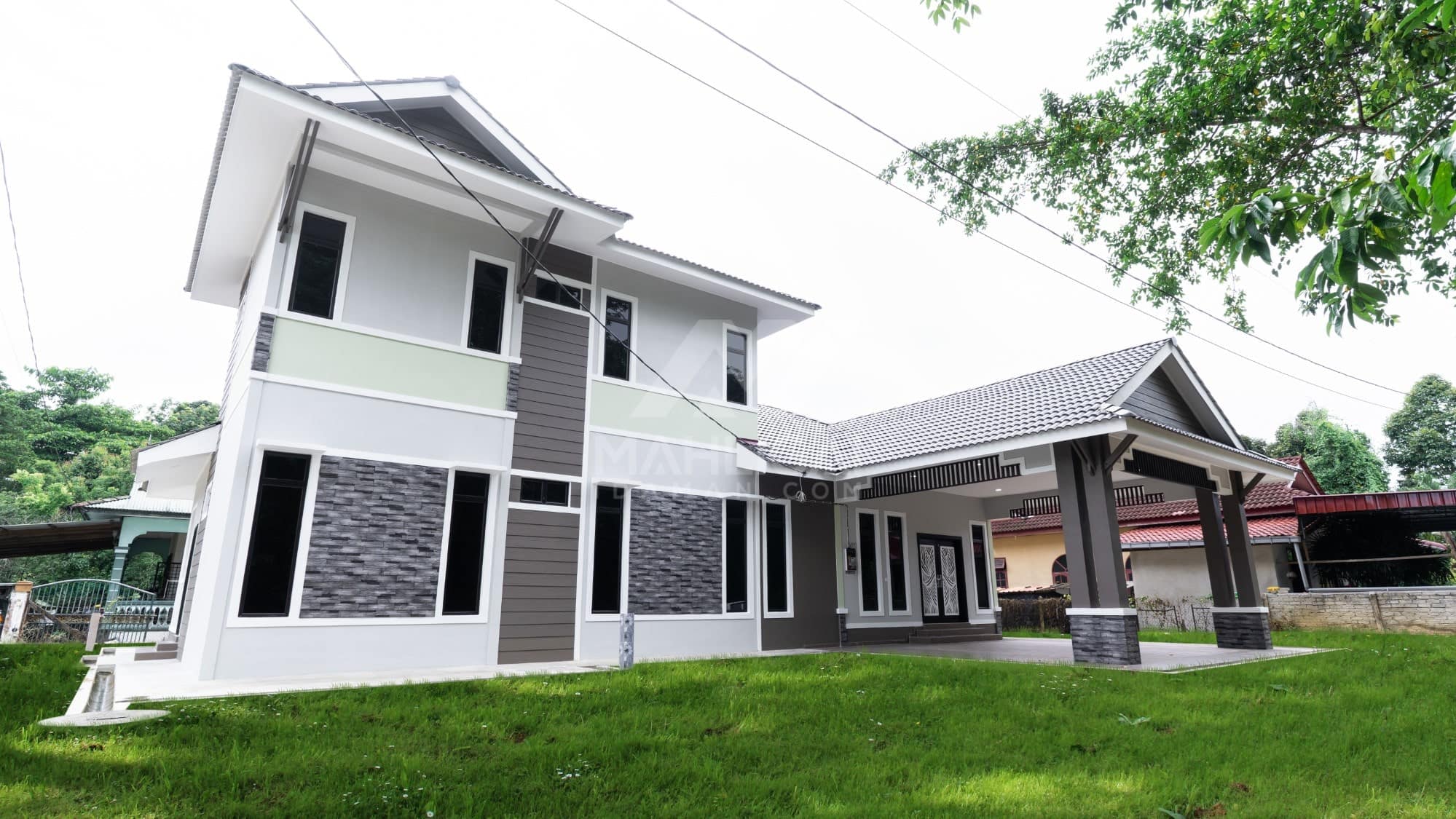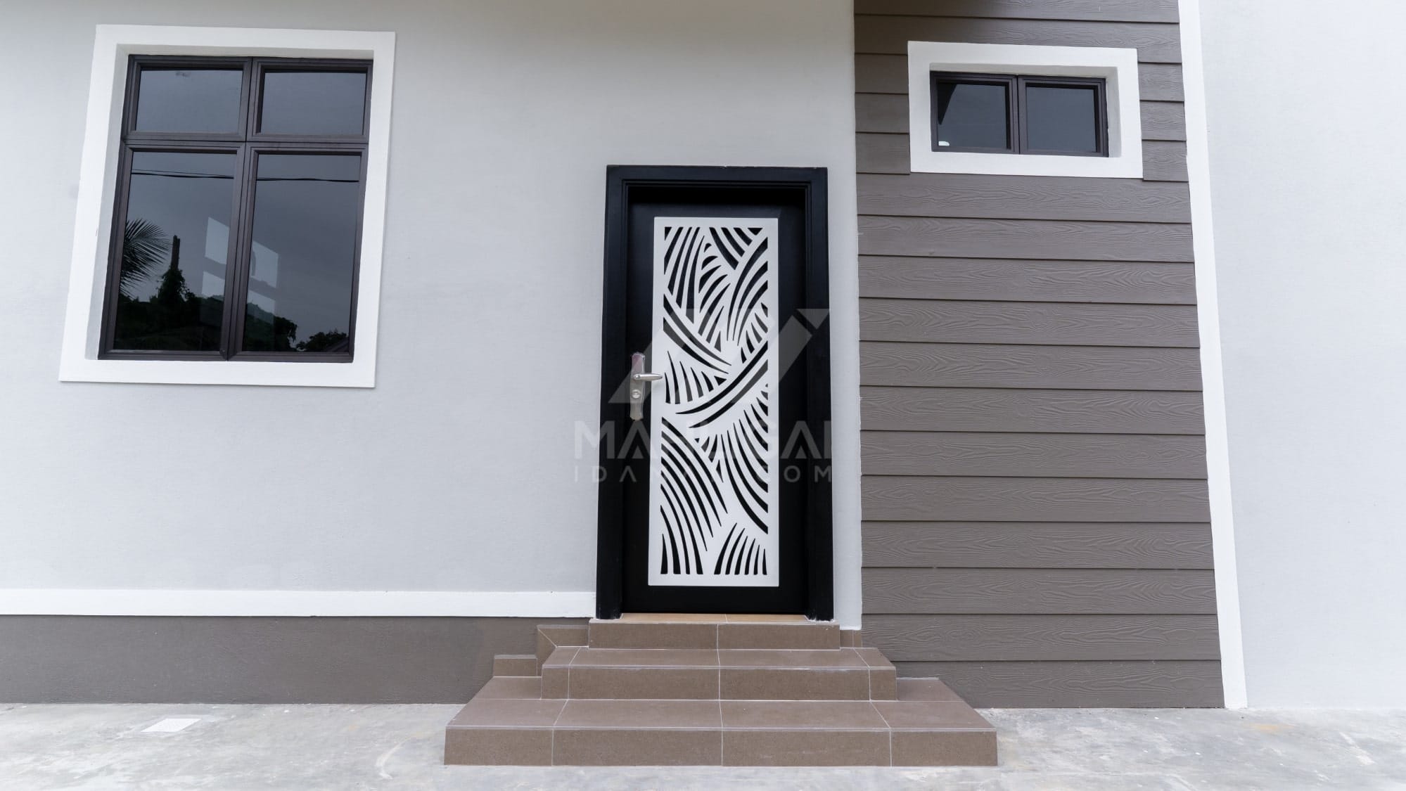Banglo ini dibina dengan spesifikasi asas Pakej Silver dengan penambahan aksesori iaitu pemasangan cornice pada keseluruhan tingkap dan dinding luar rumah, groove line pada dinding di bahagian luar rumah