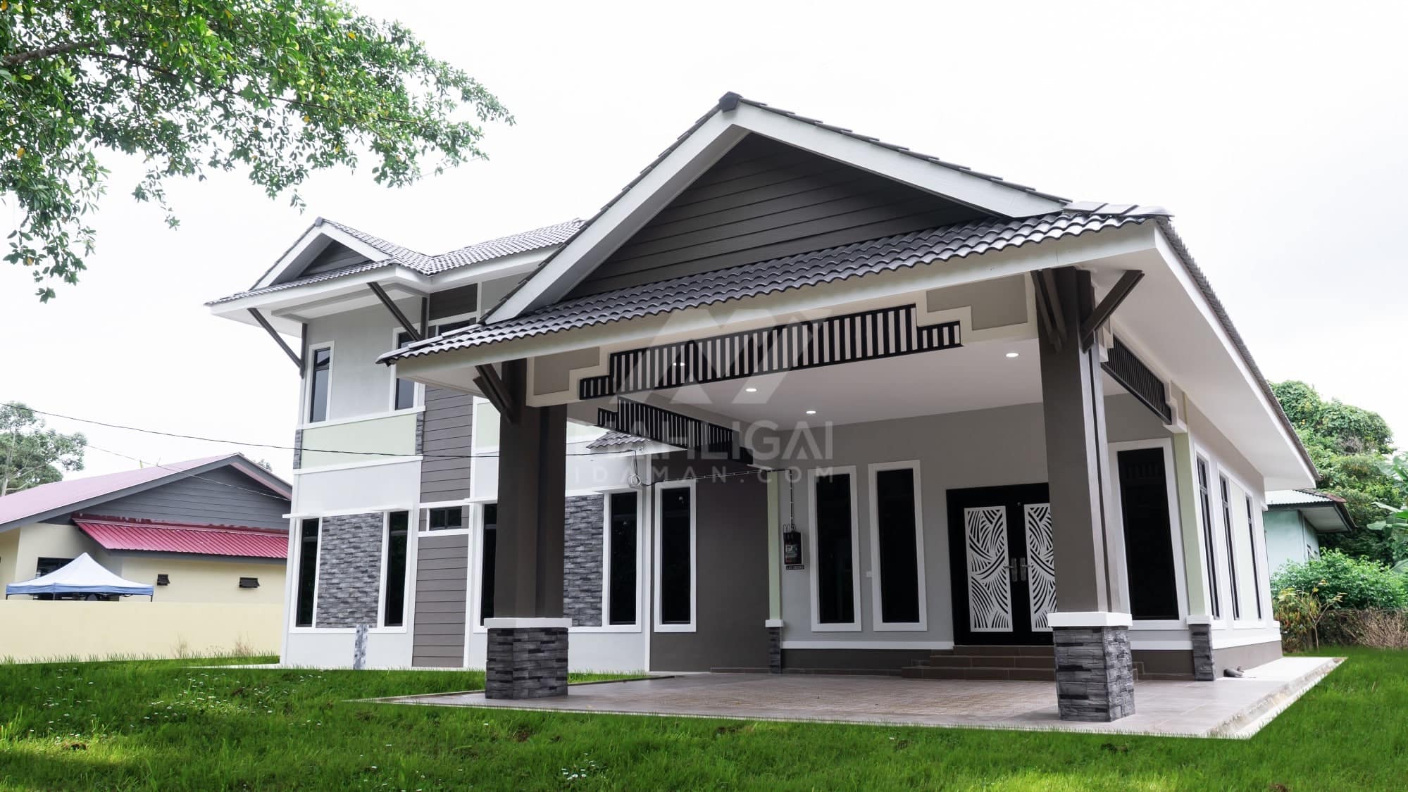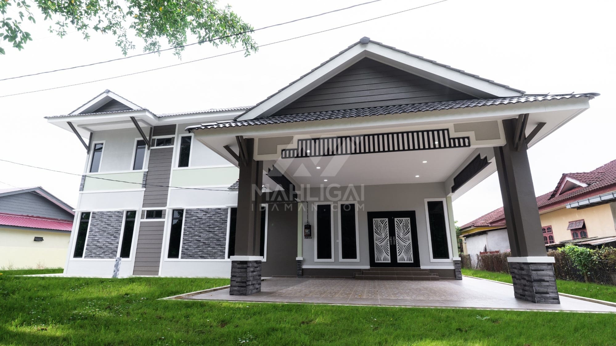 Kini banglo 2 tingkat milik klien kami En Saufi telah siap dibina sepenuhnya di Tok Jiring, Kuala Terengganu. Banglo ini dilengkapi dengan lima bilik tidur dan lima bilik air. Banglo yang berkeluasan 2,969 kaki persegi ini menggabungkan ciri-ciri banglo moden iaitu dari segi rekabentuk dalaman dan luaran yang sangat menarik. Dari segi penggunaan tona warna kelabu dan hitam. Bahagian dalam rumah pula mereka memilih warna kuning dan putih menaikan lagi seri dan kemewahan dalam rumah.
