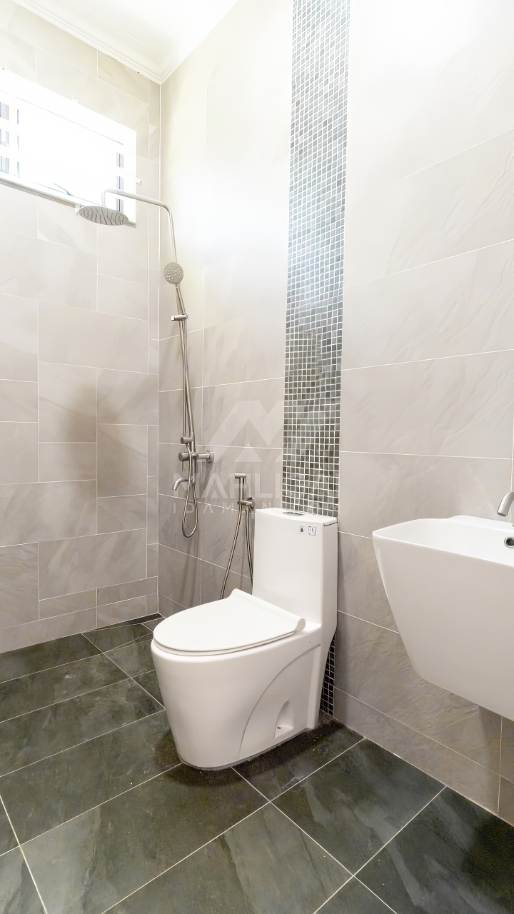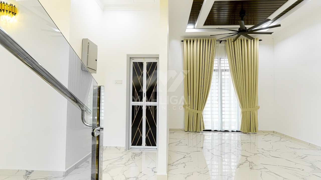 Banglo ini dibina dengan spesifikasi asas pakej silver dengan penambahan aksesori iaitu pemasangan cornice pada keseluruhan tingkap dan dinding luar rumah, groove line pada dinding di bahagian luar rumah