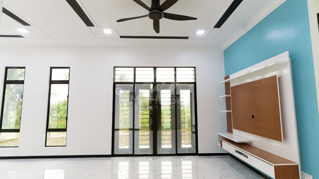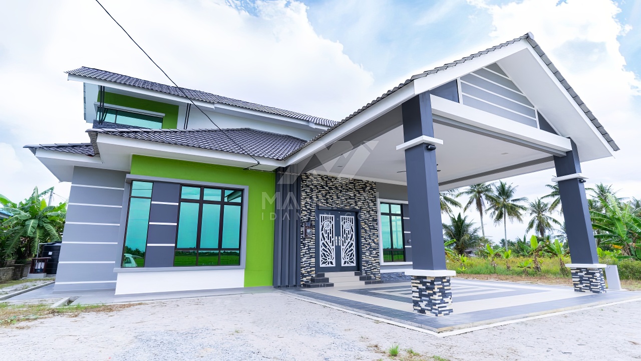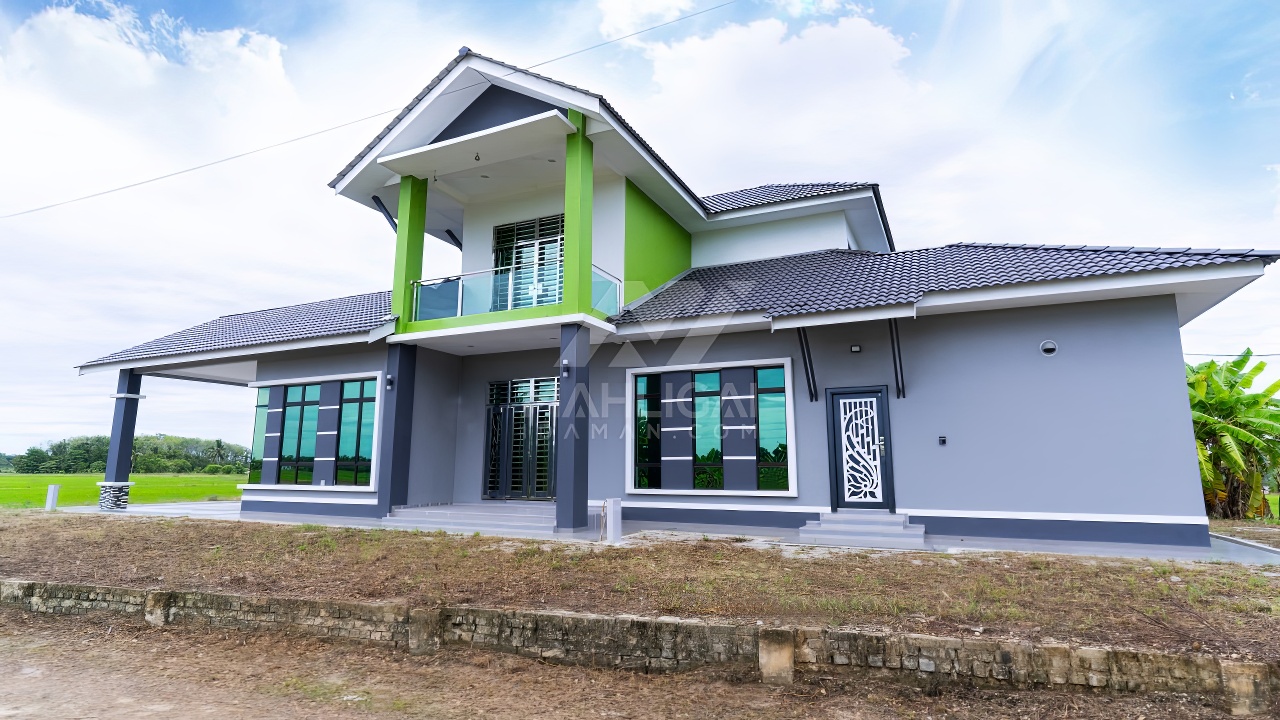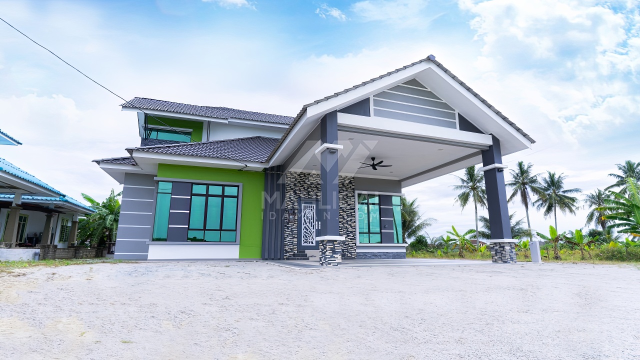 Banglo dua tingkat milik klien kami Encik Azraai kini telah siap dibina sepenuhnya di Kubang Terap, Pasir Mas, Kelantan. Banglo ini dilengkapi dengan empat (4) bilik tidur dan empat (4) bilik air. Banglo yang berkeluasan 3,010 kaki persegi ini menggabungkan ciri-ciri banglo moden iaitu dari segi rekabentuk dalaman dan luaran yang sangat menarik. Dari segi penggunaan tona warna ungu dan hijau. Bahagian dalam rumah pula mereka memilih warna pink dan ungu menaikan lagi seri dan kemewahan dalam rumah.