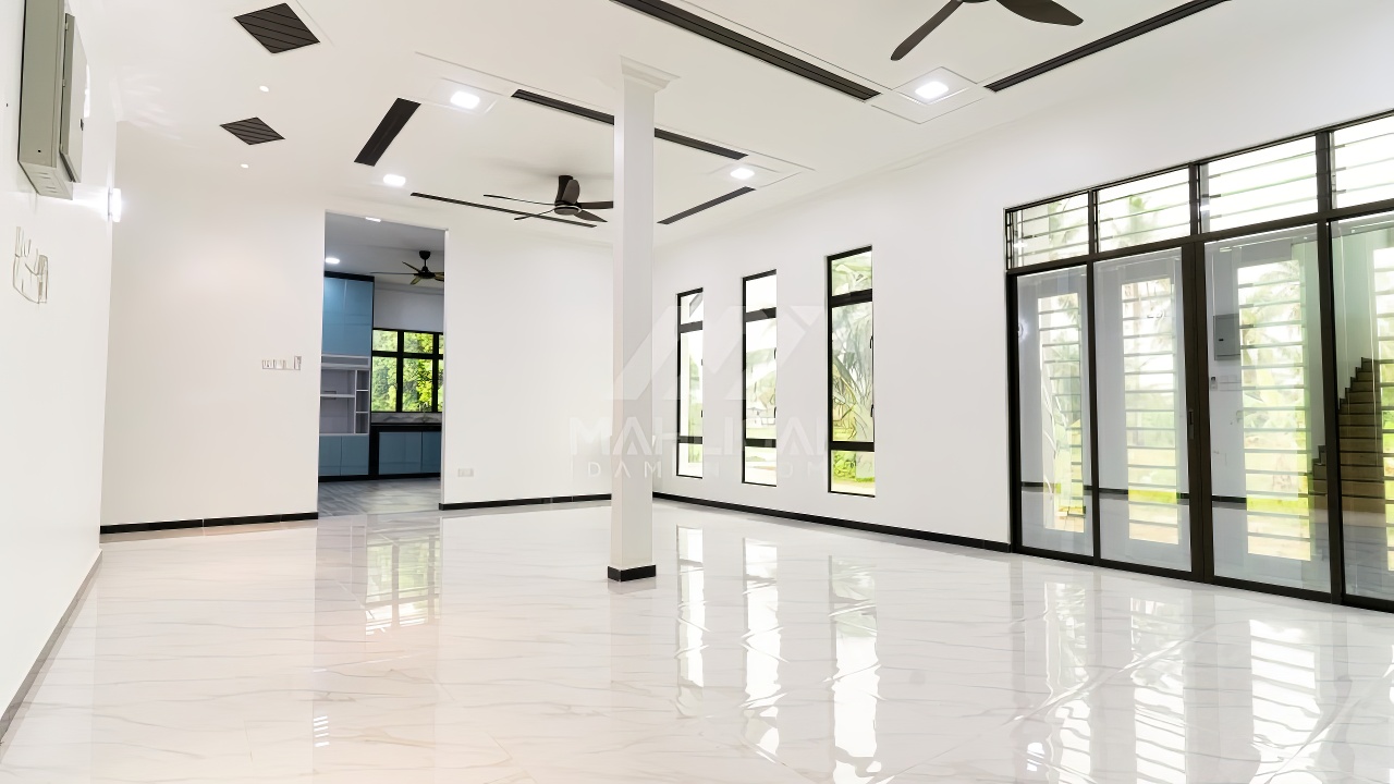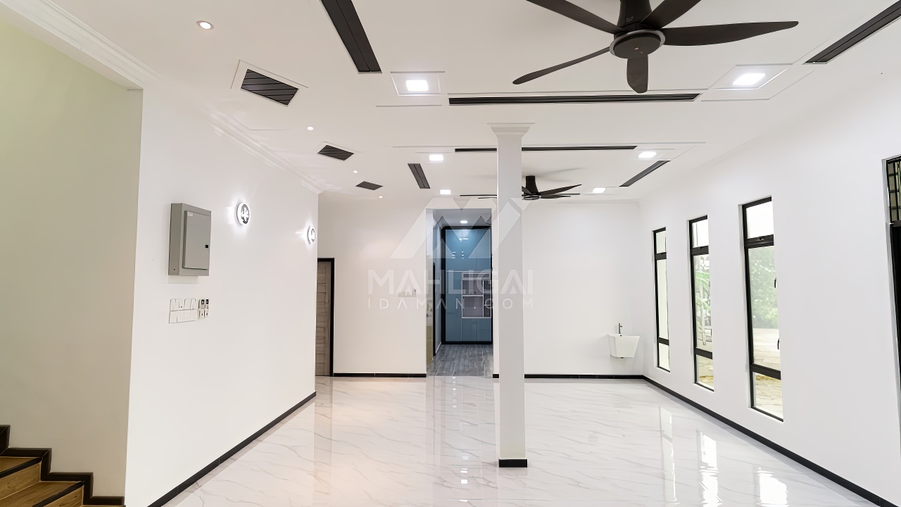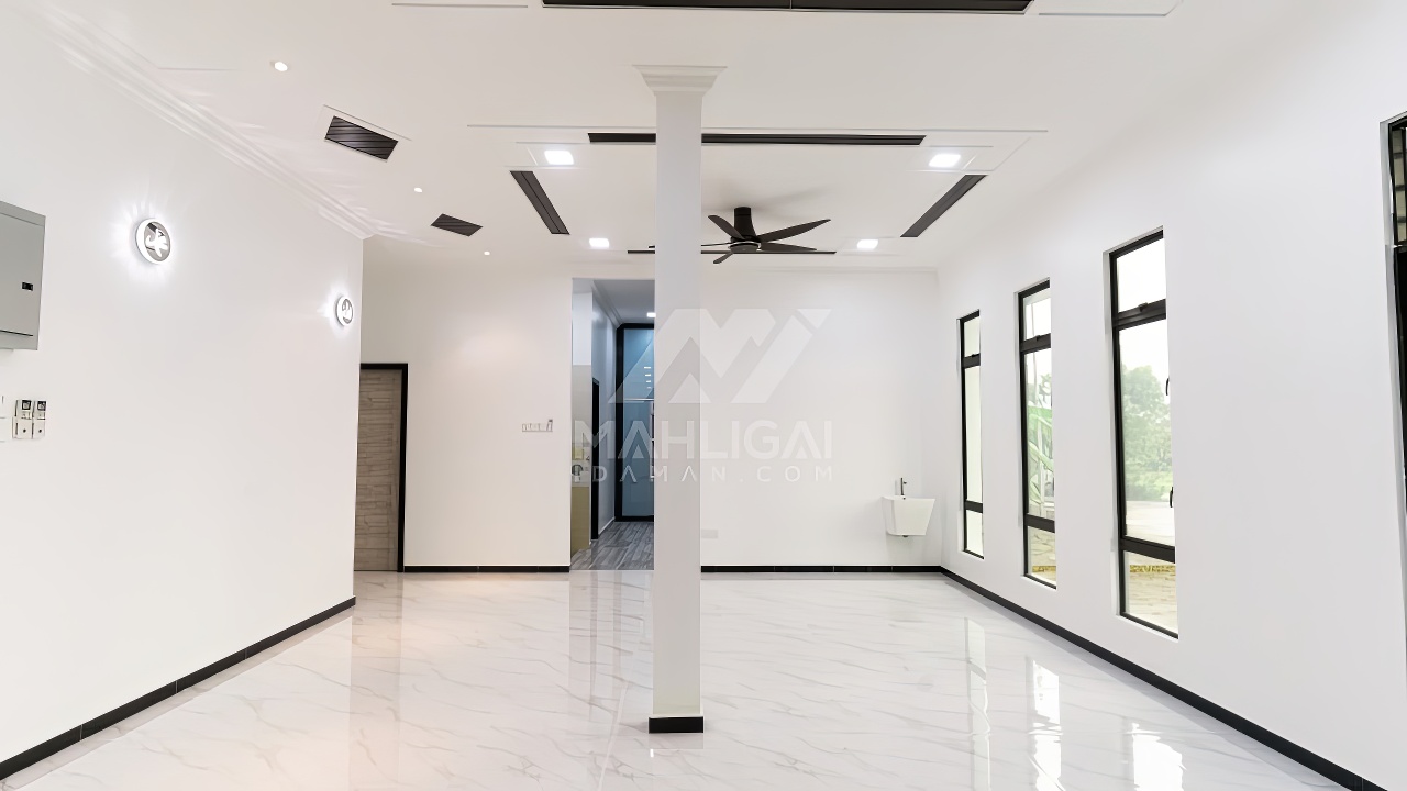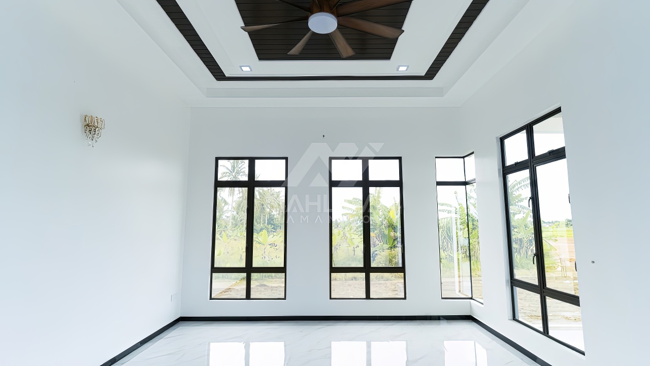 Banglo ini dibina dengan spesifikasi asas pakej silver dengan penambahan aksesori iaitu pemasangan cornice pada keseluruhan tingkap dan dinding luar rumah, groove line pada dinding di bahagian luar rumah.