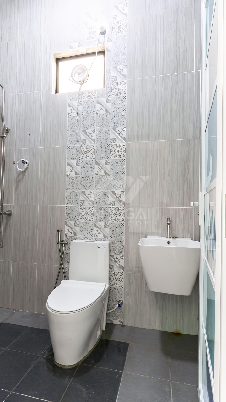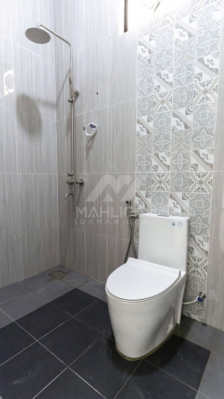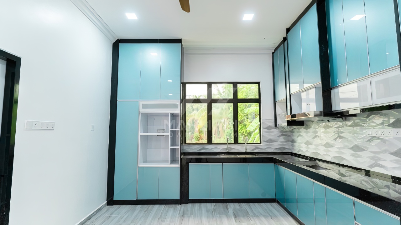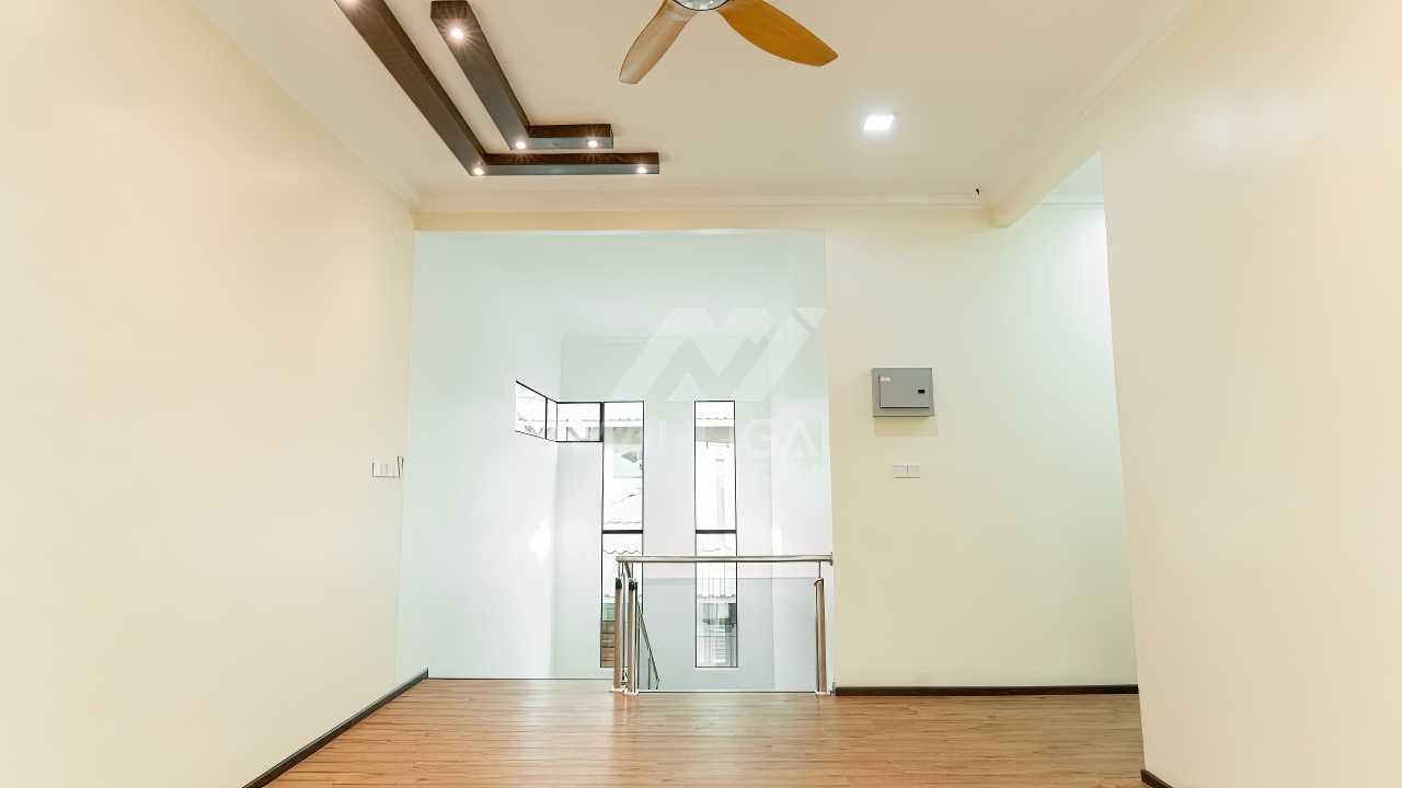 Banglo ini dibina dengan spesifikasi asas pakej silver dengan penambahan aksesori iaitu pemasangan cornice pada keseluruhan tingkap dan dinding luar rumah, groove line pada dinding di bahagian luar rumah.
