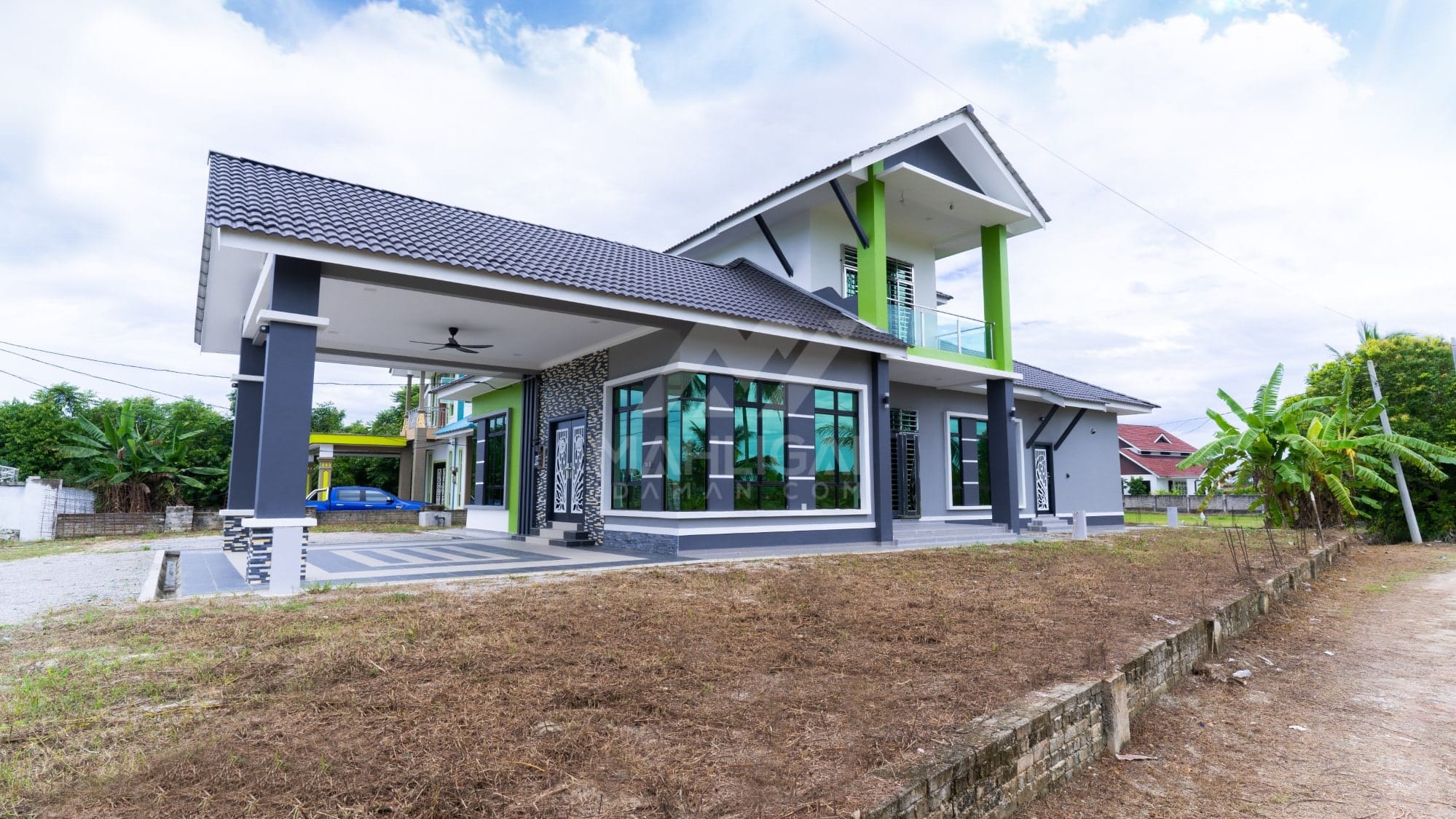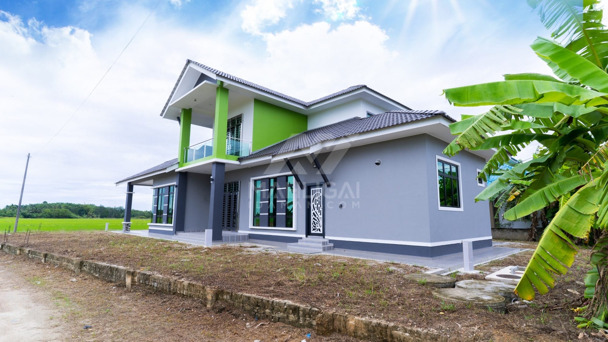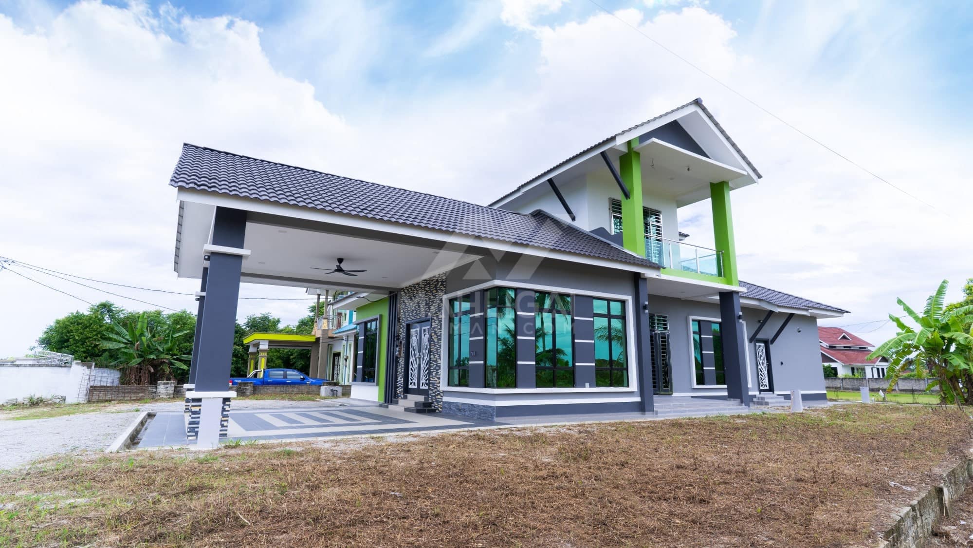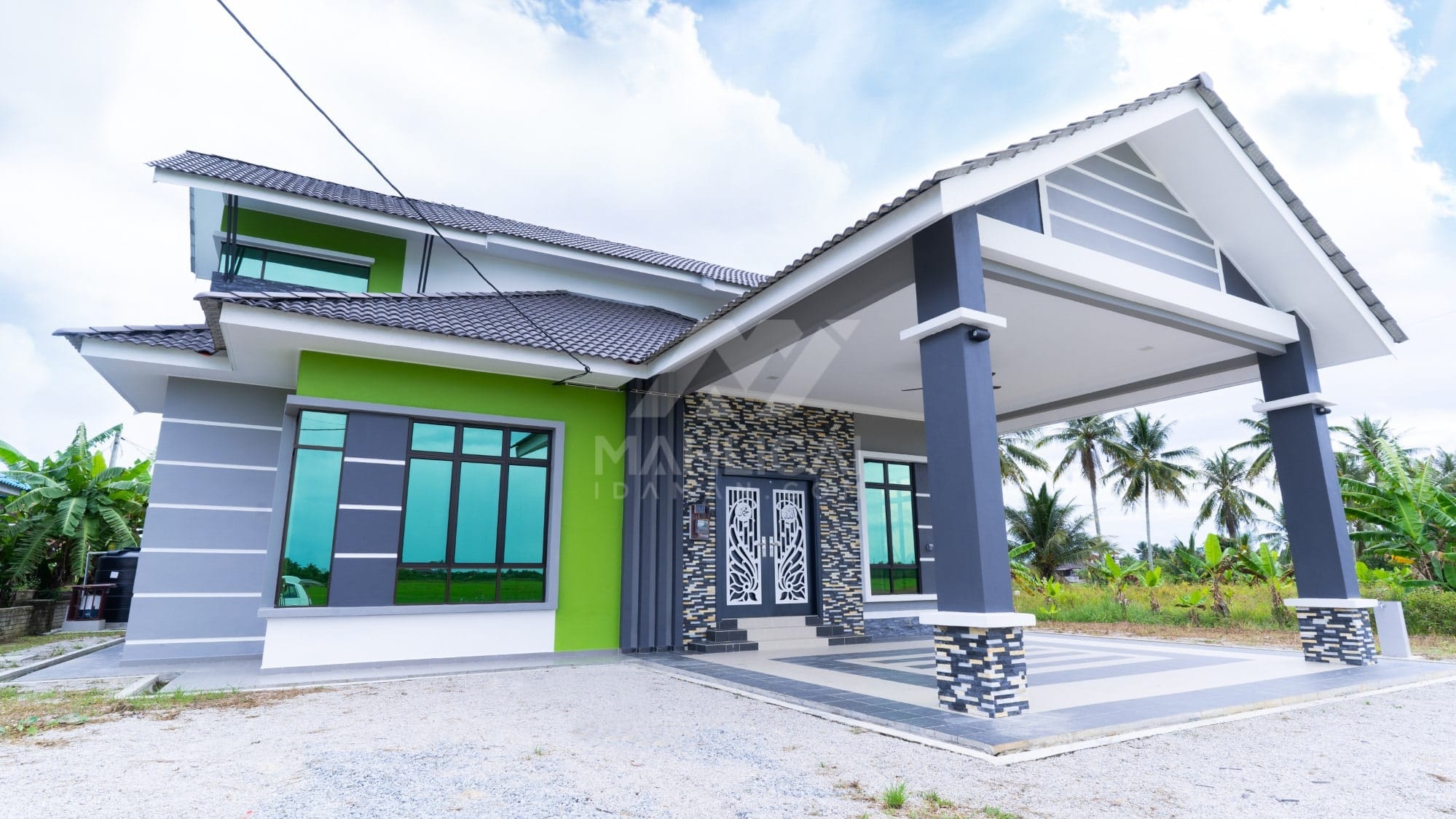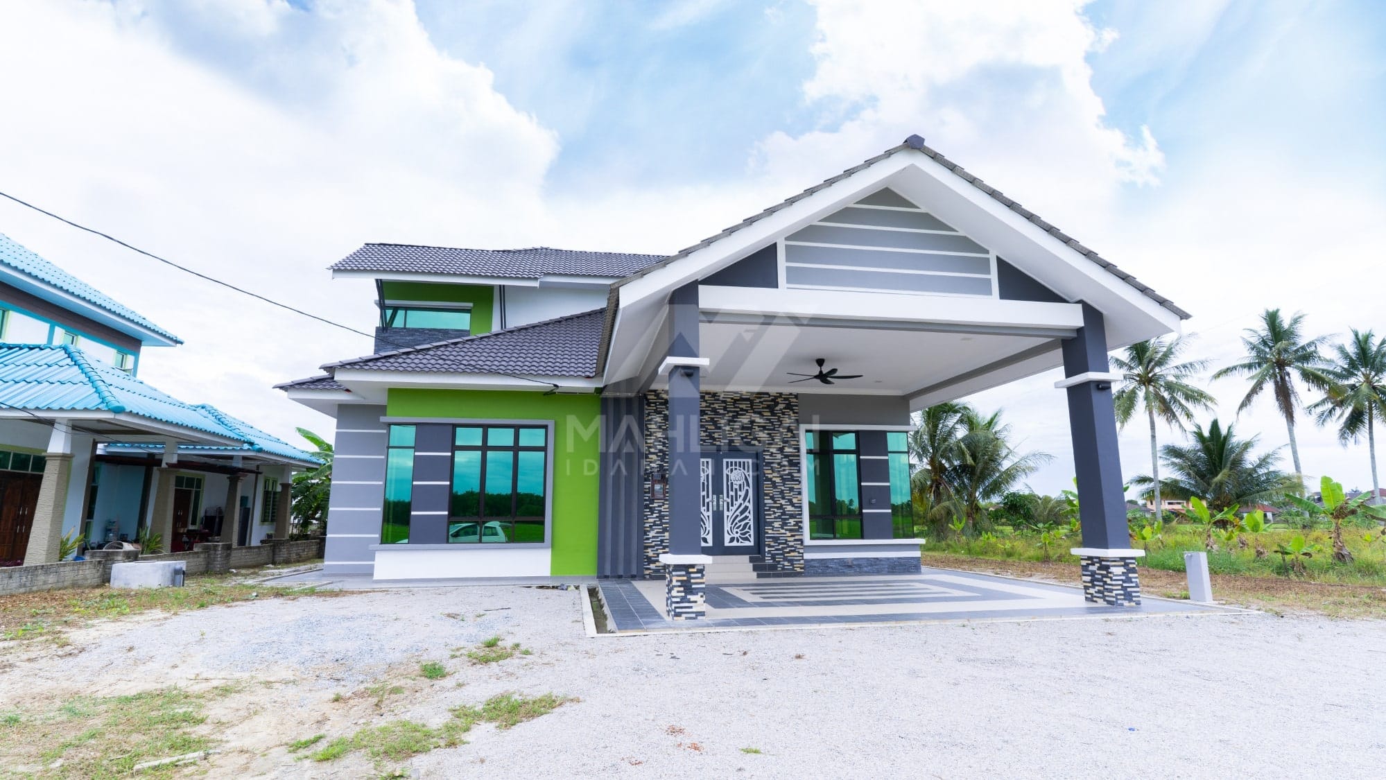Kini banglo 2 tingkat milik klien kami En Azraai telah siap dibina sepenuhnya di Kubang Terap, Pasir Mas, Kelantan. Banglo ini dilengkapi dengan empat bilik tidur dan empat bilik air. Banglo yang berkeluasan 3,010 kaki persegi ini menggabungkan ciri-ciri banglo moden iaitu dari segi rekabentuk dalaman dan luaran yang sangat menarik. Dari segi penggunaan tona warna ungu dan hijau. Bahagian dalam rumah pula mereka memilih warna pink dan ungu menaikan lagi seri dan kemewahan dalam rumah.