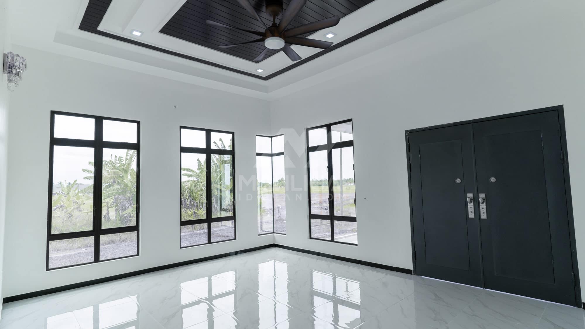 Banglo ini dibina dengan spesifikasi asas Pakej Gold dengan penambahan aksesori iaitu pemasangan cornice pada keseluruhan tingkap dan dinding luar rumah, groove line pada dinding di bahagian luar rumah.