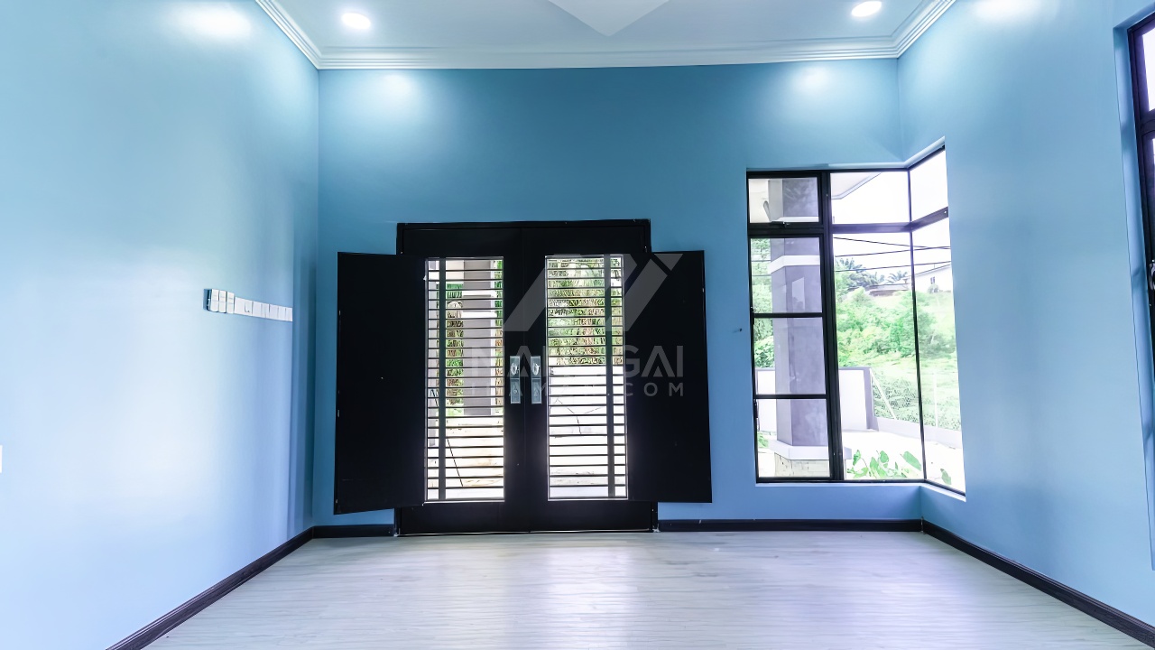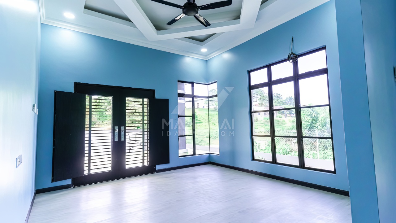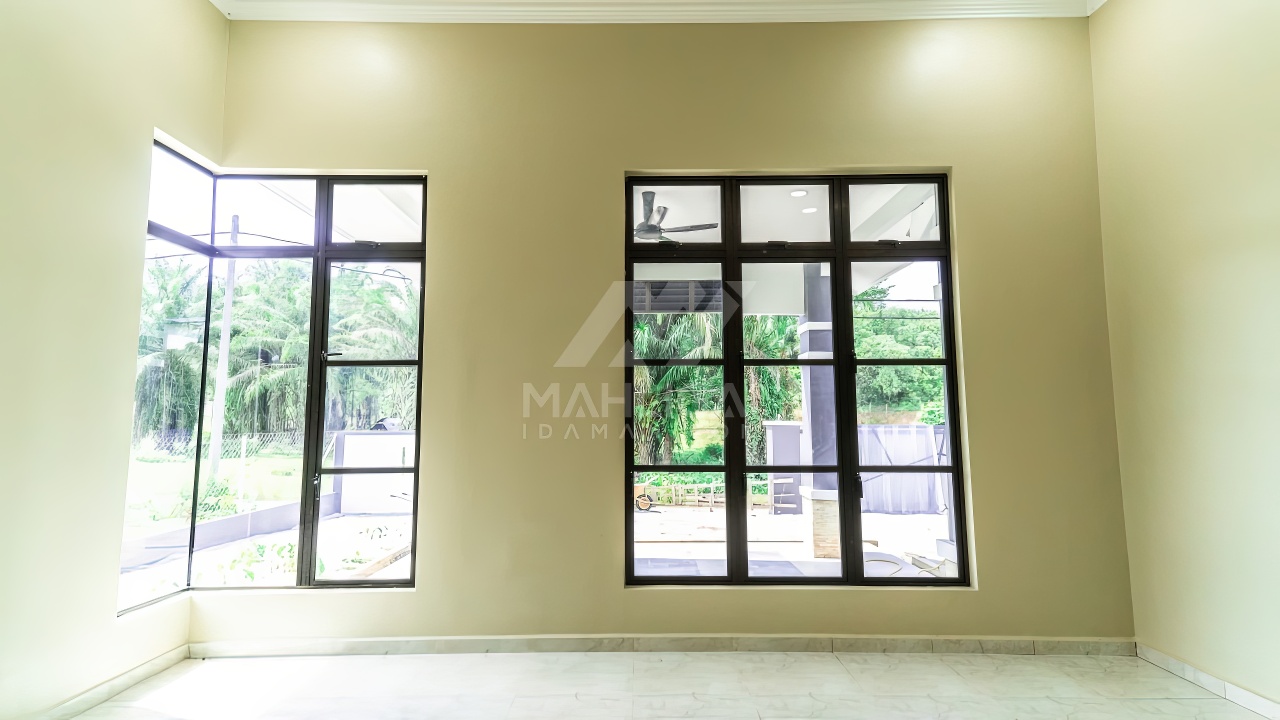 Banglo ini dibina dengan spesifikasi asas pakej silver dengan penambahan aksesori iaitu pemasangan cornice pada keseluruhan tingkap dan dinding luar rumah, groove line pada dinding di bahagian luar rumah.