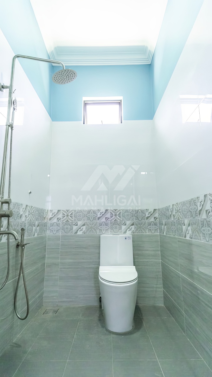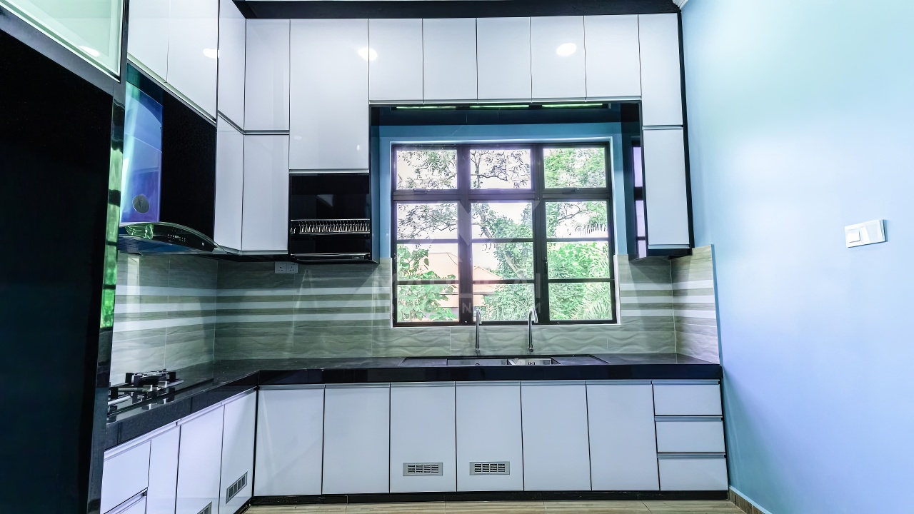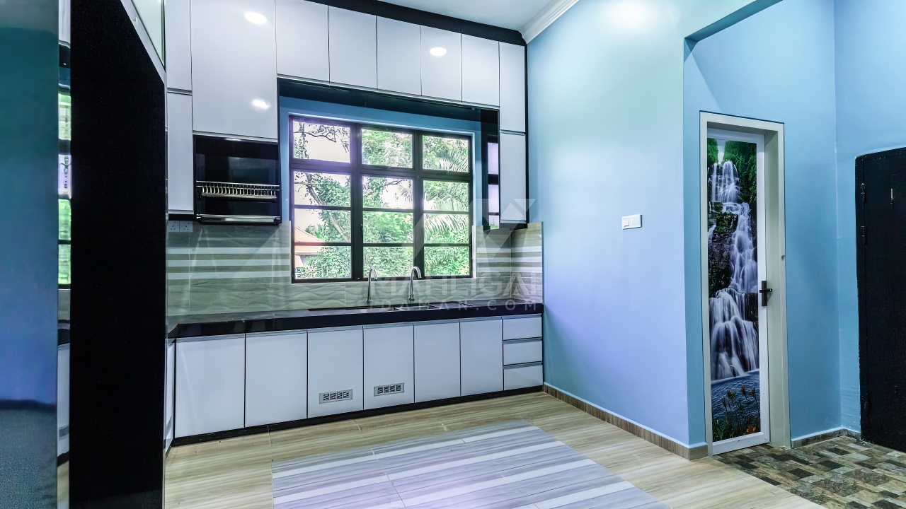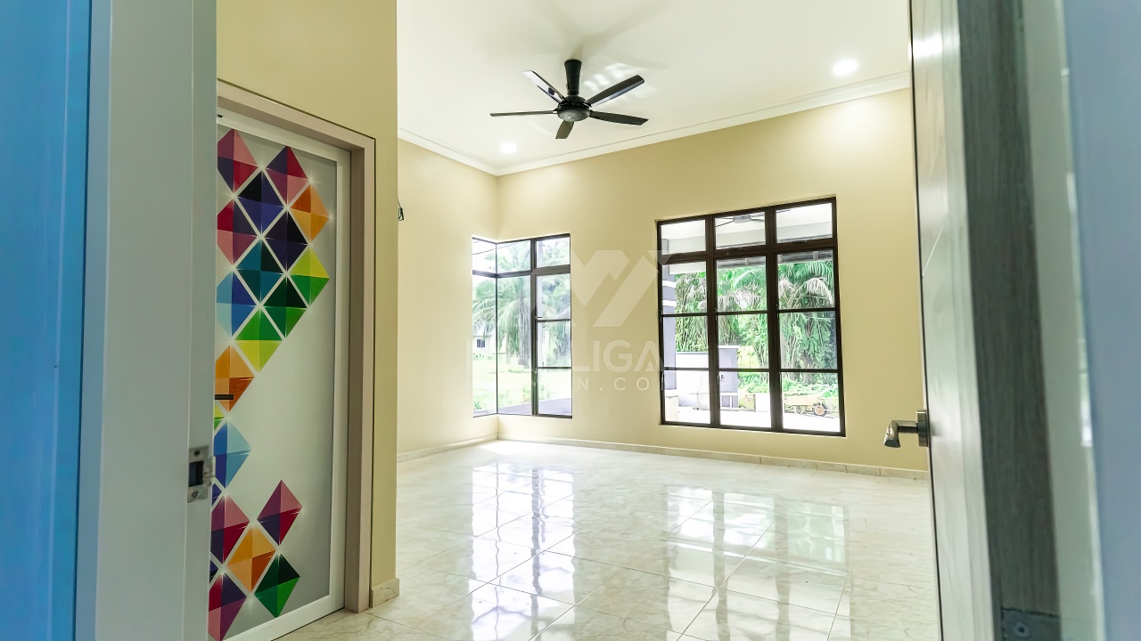 Banglo ini dibina dengan spesifikasi asas pakej silver dengan penambahan aksesori iaitu pemasangan cornice pada keseluruhan tingkap dan dinding luar rumah, groove line pada dinding di bahagian luar rumah.