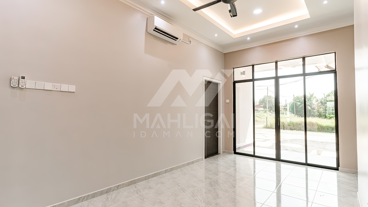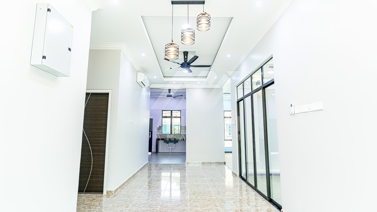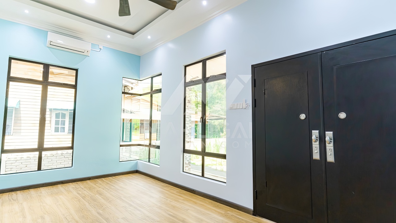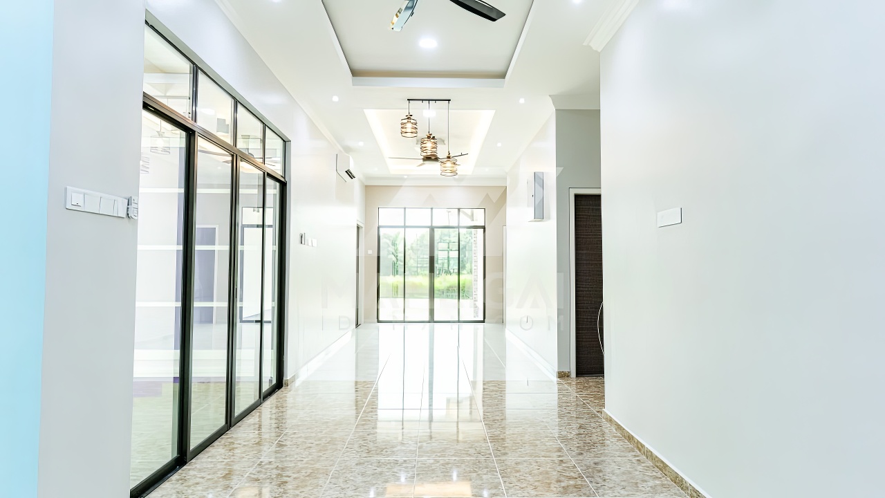 Banglo ini dibina dengan spesifikasi asas pakej gold dengan penambahan aksesori iaitu pemasangan cornice pada keseluruhan tingkap dan dinding luar rumah, groove line pada dinding di bahagian luar rumah.