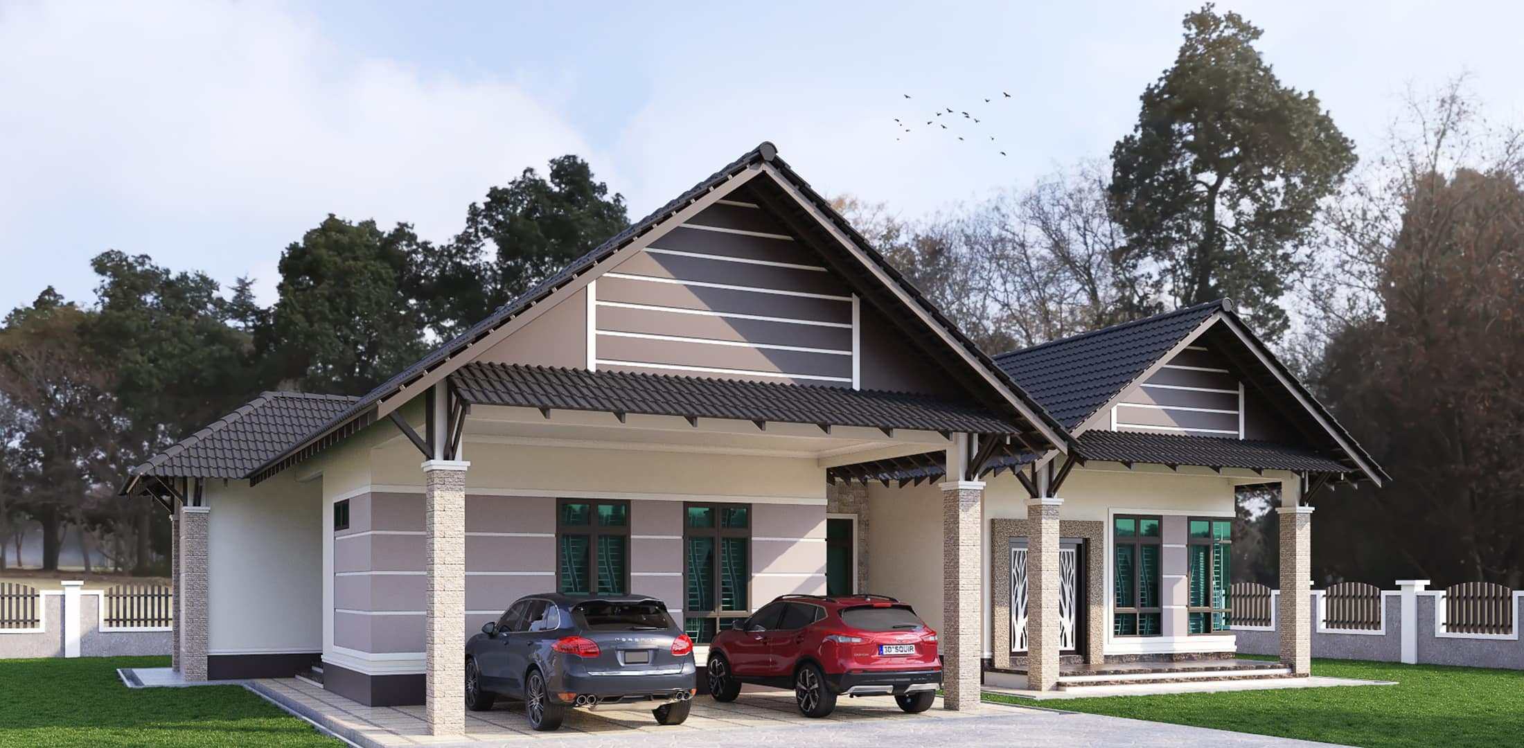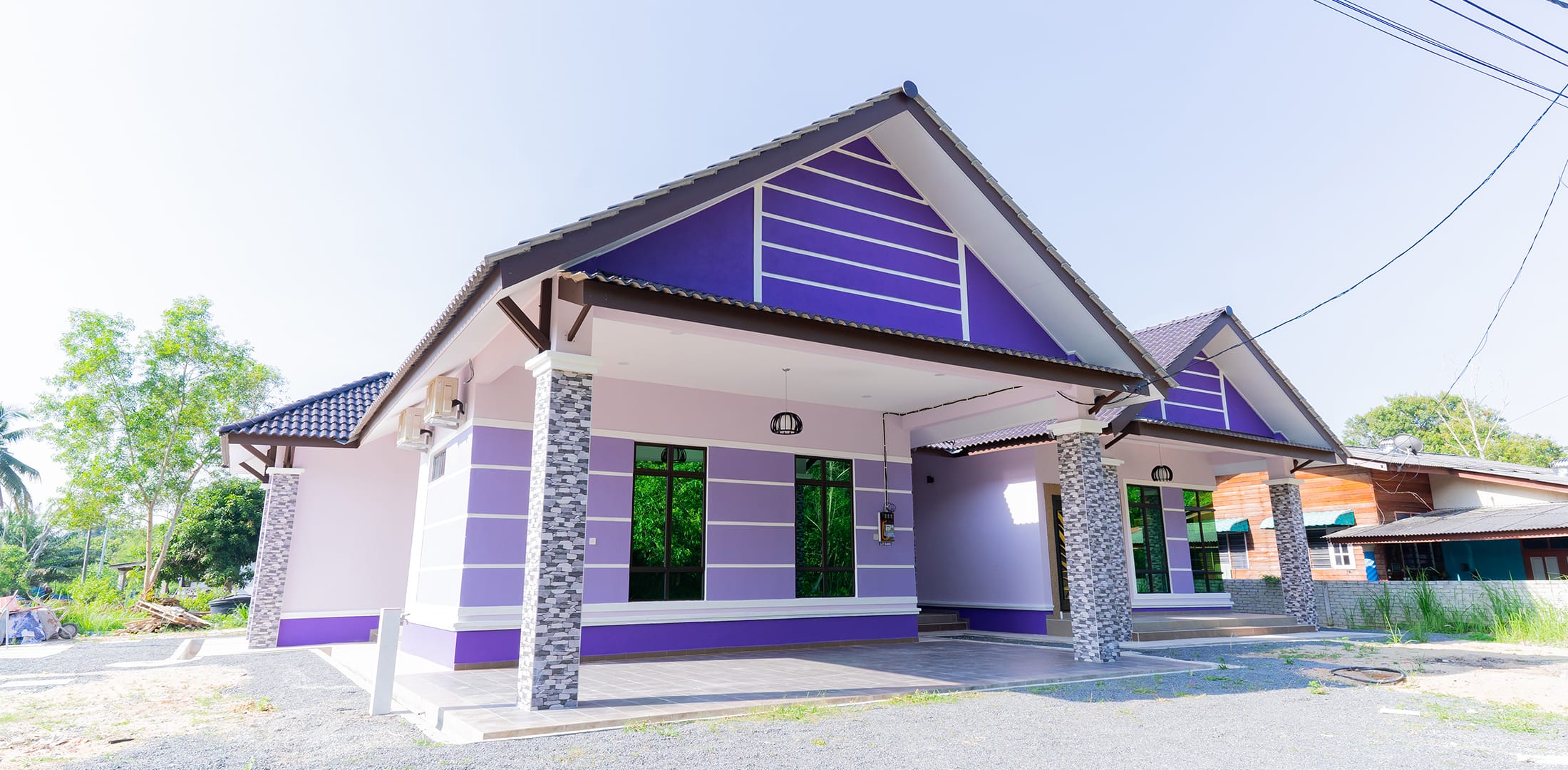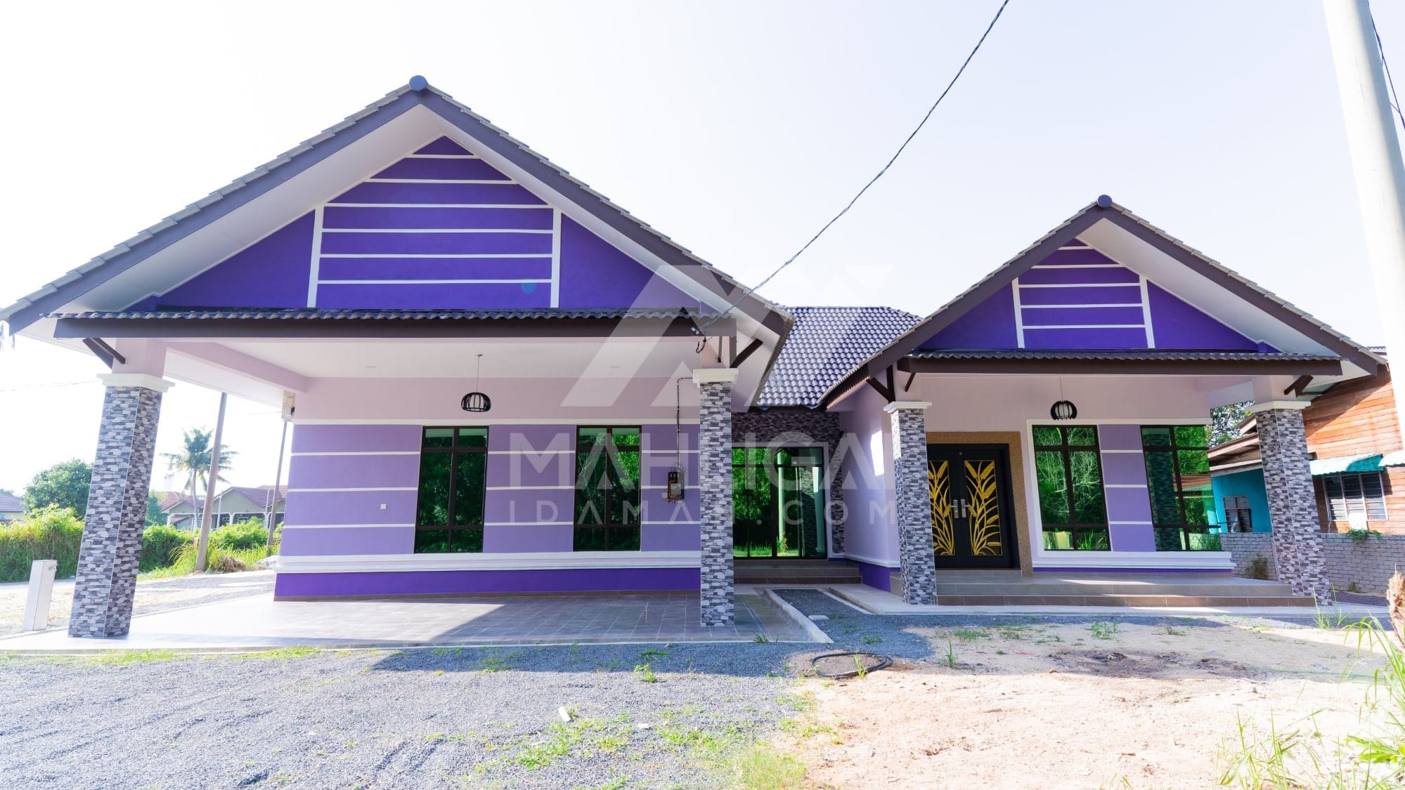 Kini banglo 1 tingkat milik klien kami Pn Fadzilah telah siap dibina sepenuhnya di Dungun, Terengganu. Banglo ini dilengkapi dengan empat bilik tidur dan tiga bilik air. Banglo yang berkeluasan 2,106 kaki persegi ini menggabungkan ciri-ciri banglo moden iaitu dari segi rekabentuk dalaman dan luaran yang sangat menarik. Dari segi penggunaan tona ungu dan putih. Bahagian dalam rumah pula mereka memilih warna kuning dan merah jambu menaikan lagi seri dan kemewahan dalam rumah.