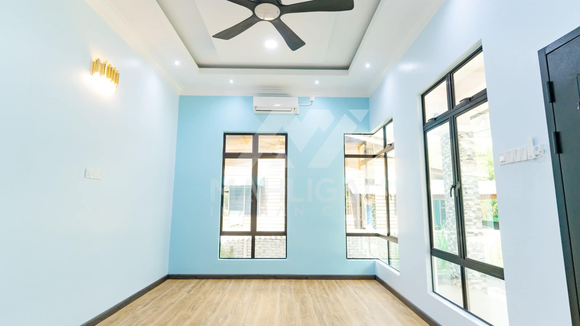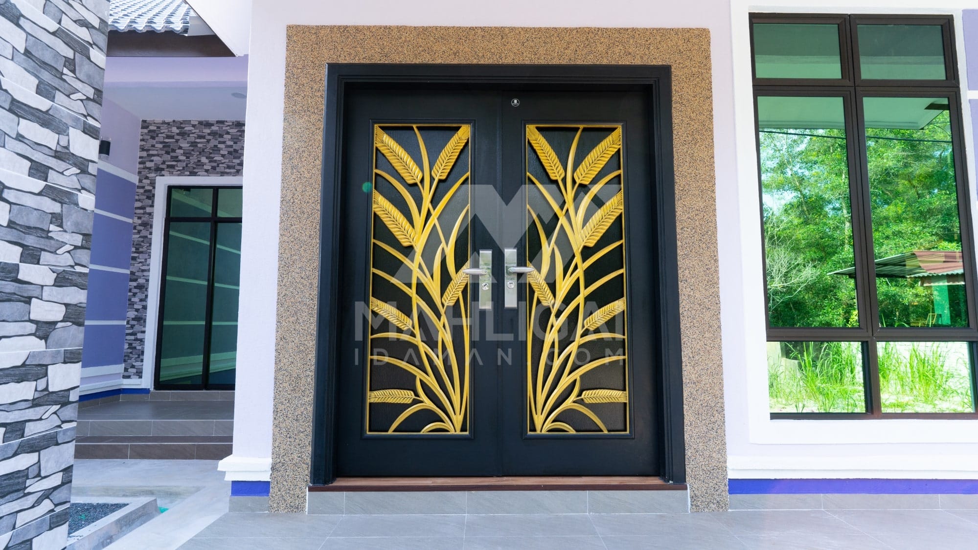 Banglo ini dibina dengan spesifikasi asas Pakej Silver dengan penambahan aksesori iaitu pemasangan cornice pada keseluruhan tingkap dan dinding luar rumah, groove line pada dinding di bahagian luar rumah.