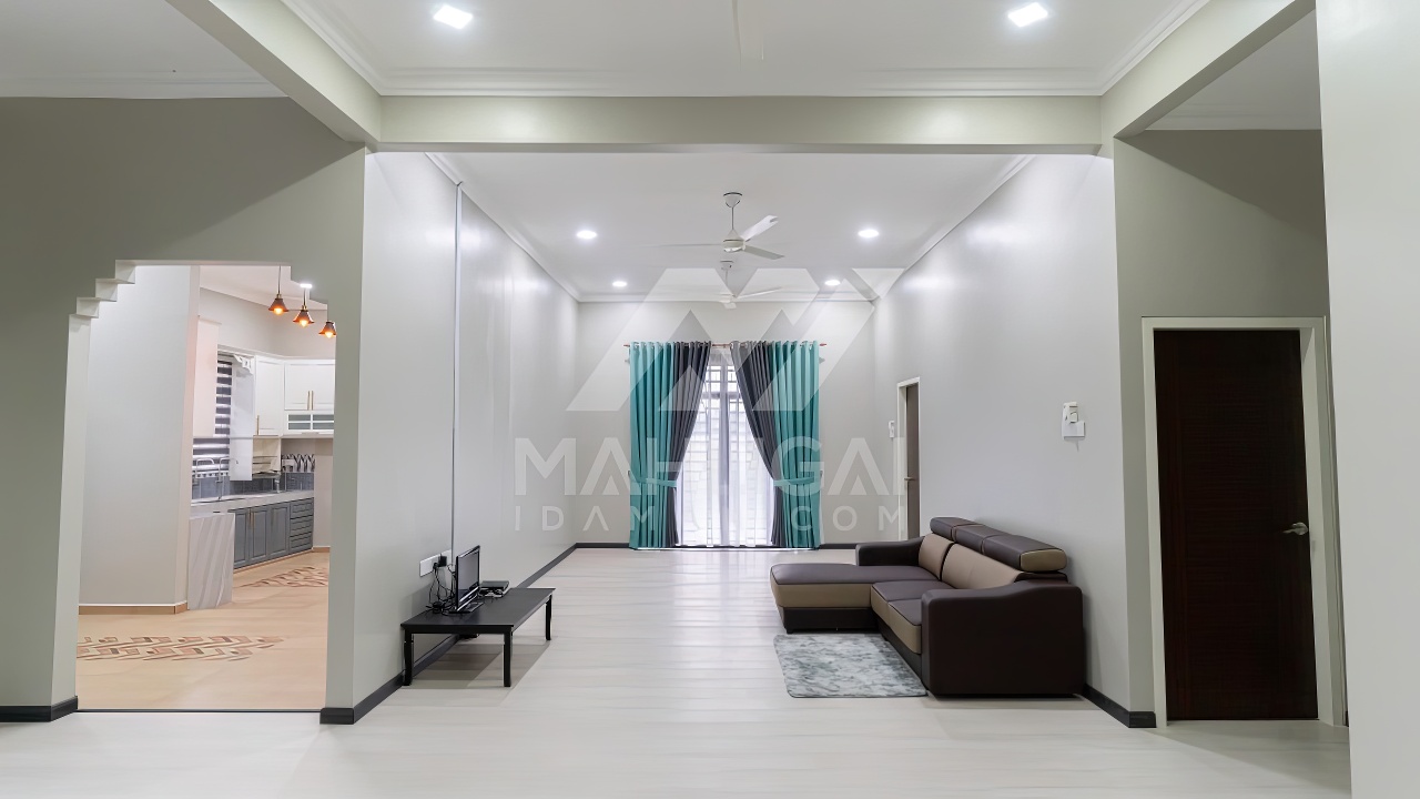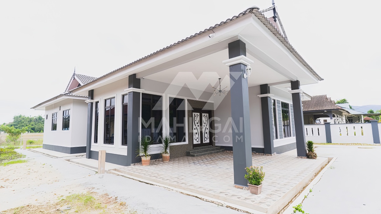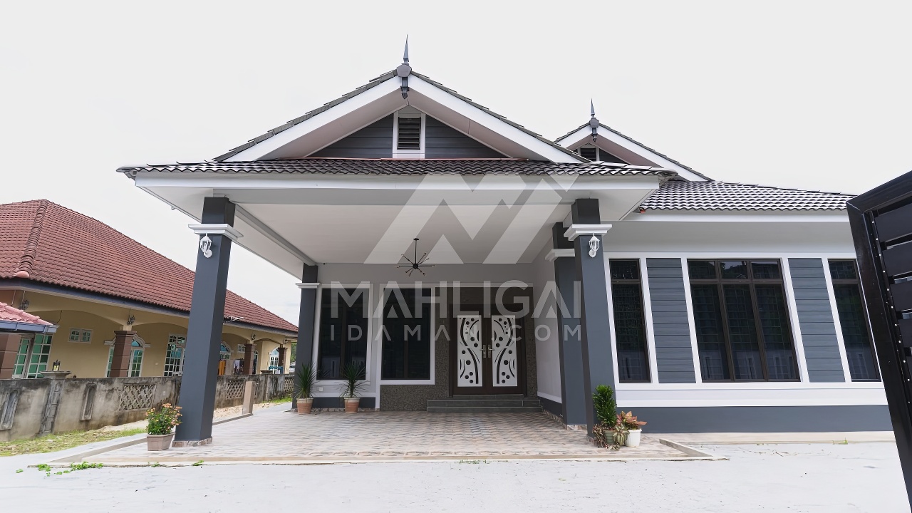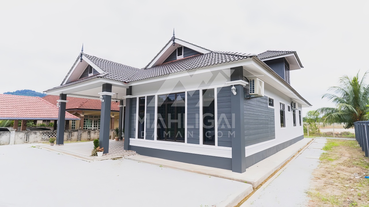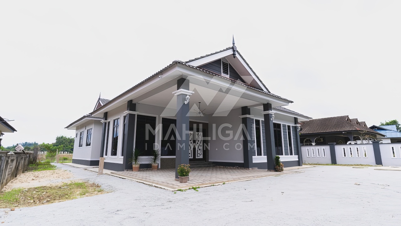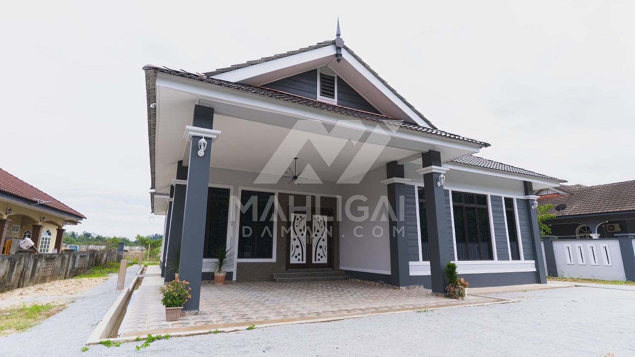 Banglo satu tingkat milik klien kami Puan Muhaini kini telah siap dibina sepenuhnya di Besut, Terengganu. Banglo ini dilengkapi dengan empat (4) bilik tidur dan dua (2) bilik air. Banglo yang berkeluasan 2,458 kaki persegi ini menggabungkan ciri-ciri banglo moden iaitu dari segi rekabentuk dalaman dan luaran yang sangat menarik. Dari segi penggunaan tona hijau tua dan kelabu. Bahagian dalam rumah pula mereka memilih warna putih dan biru gelap menaikan lagi seri dan kemewahan dalam rumah.