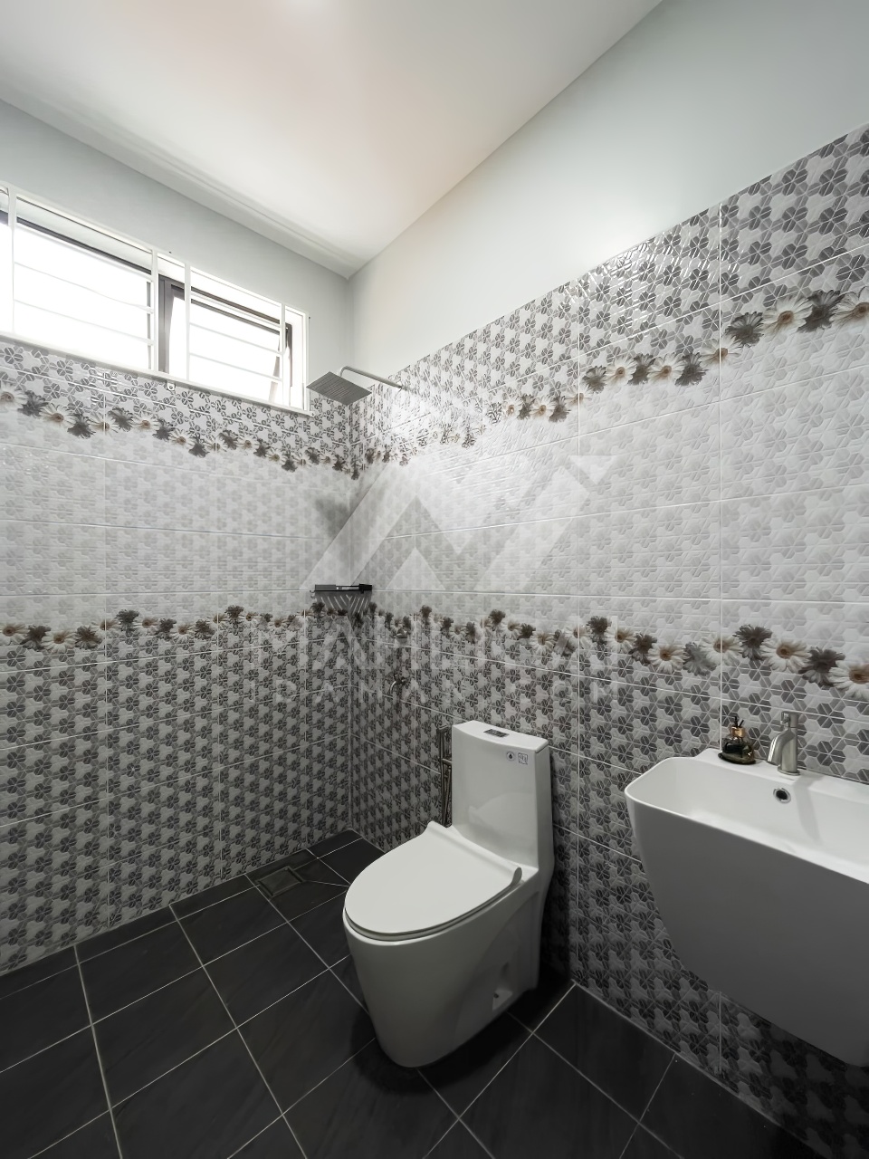 Banglo ini dibina dengan spesifikasi asas pakej silver dengan penambahan aksesori iaitu pemasangan cornice pada keseluruhan tingkap dan dinding luar rumah, groove line pada dinding di bahagian luar rumah.