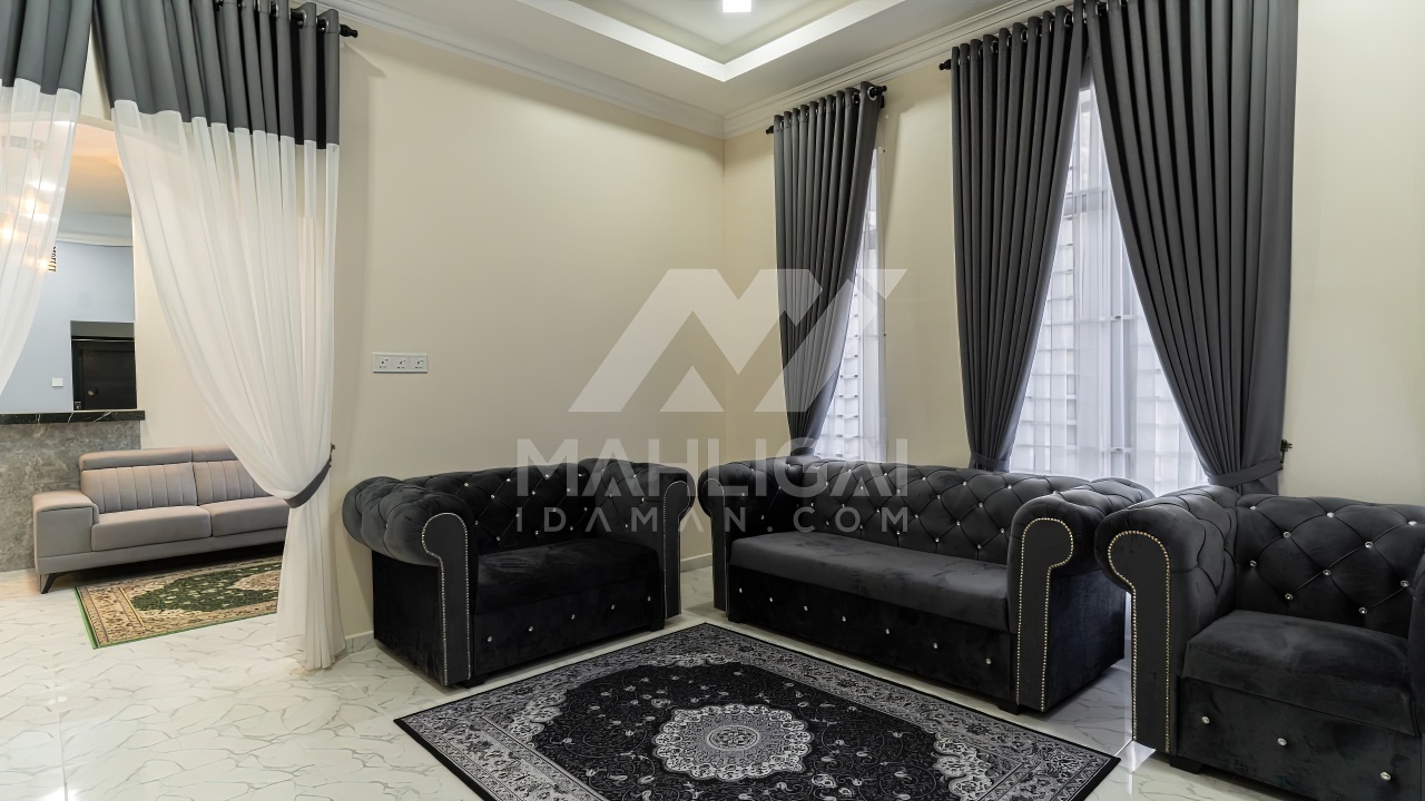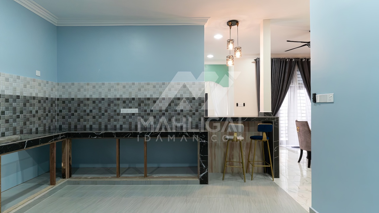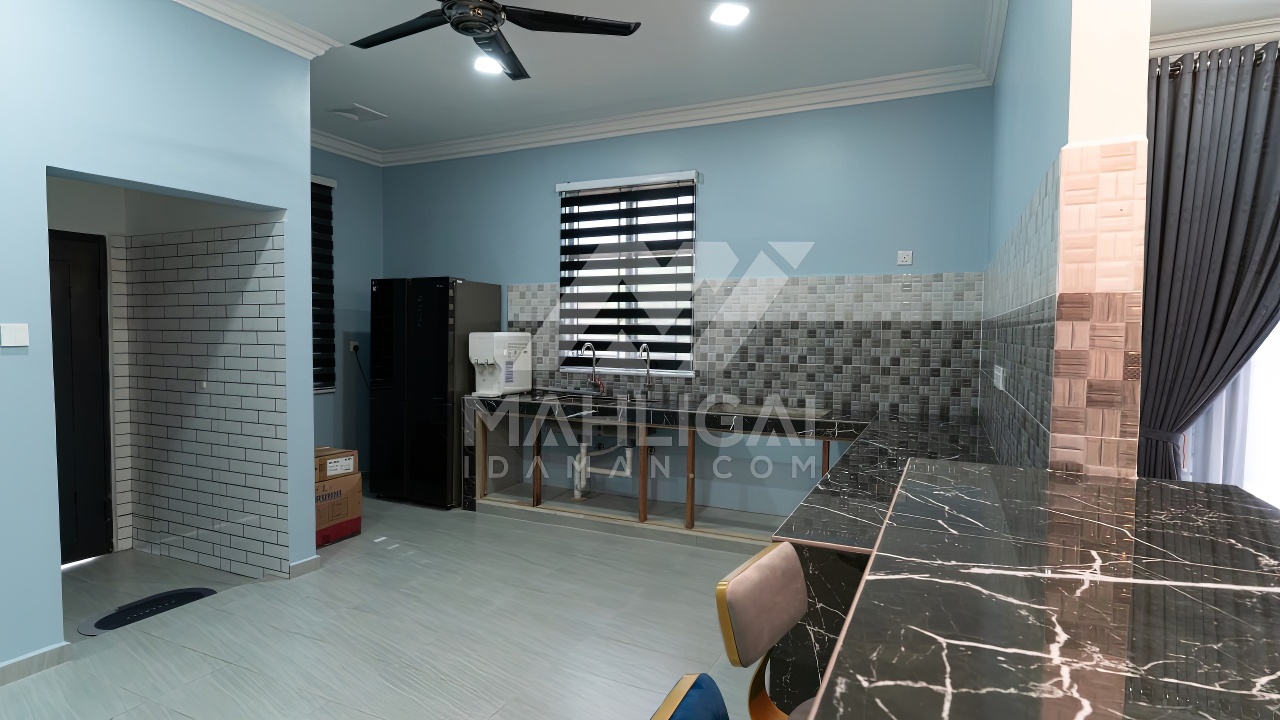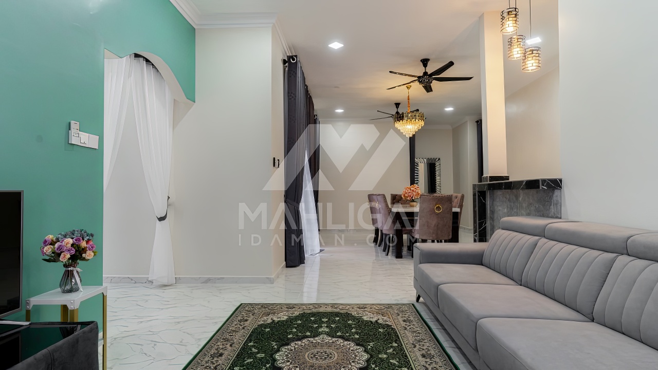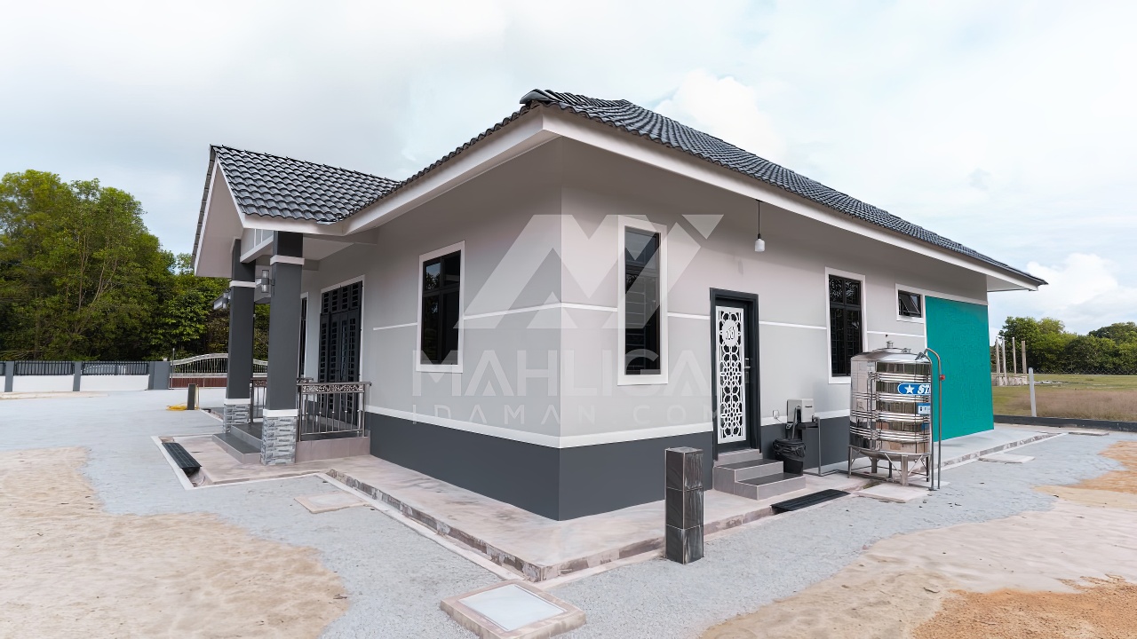 Banglo 1 tingkat milik klien kami Encik Muliyadi telah siap dibina sepenuhnya di Setiu, Terengganu. Banglo ini dilengkapi dengan empat (4) bilik tidur dan tiga (3) bilik air. Banglo yang berkeluasan 2,107 kaki persegi ini menggabungkan ciri-ciri banglo moden iaitu dari segi rekabentuk dalaman dan luaran yang sangat menarik. Dari segi penggunaan tona hijau dan kelabu. Bahagian dalam rumah pula mereka memilih warna biru dan hijau menaikan lagi seri dan kemewahan dalam rumah.