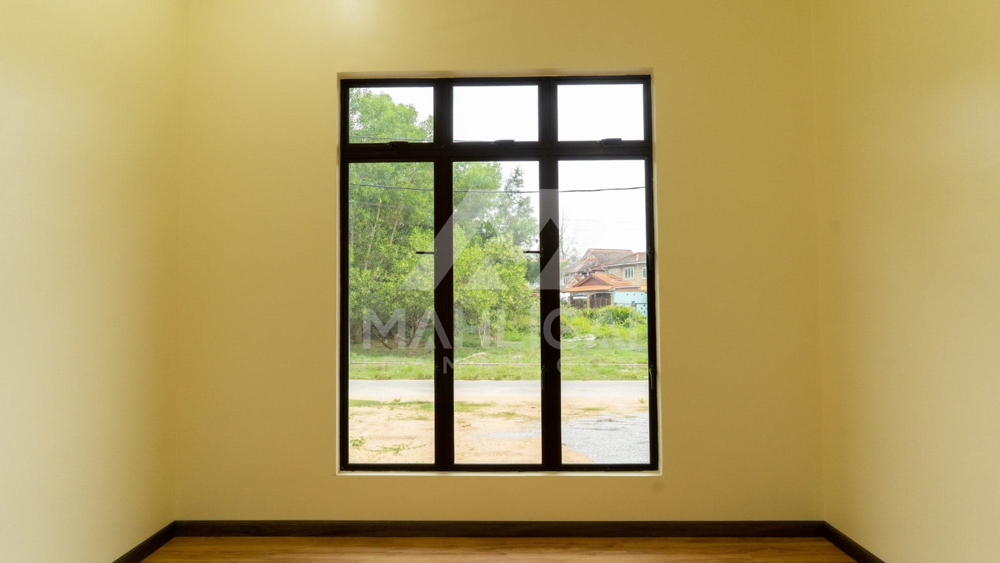 Banglo ini dibina dengan spesifikasi asas Pakej Silver dengan penambahan aksesori iaitu pemasangan cornice pada keseluruhan tingkap dan dinding luar rumah, groove line pada dinding di bahagian luar rumah.
