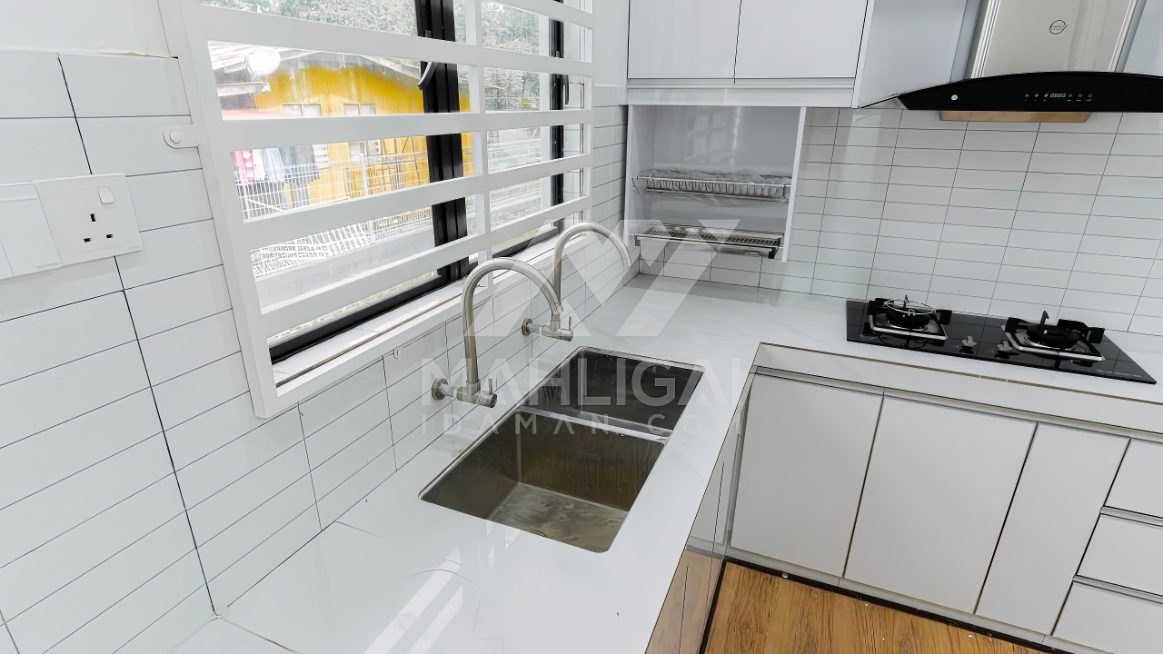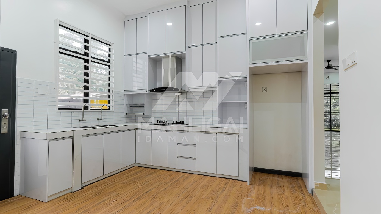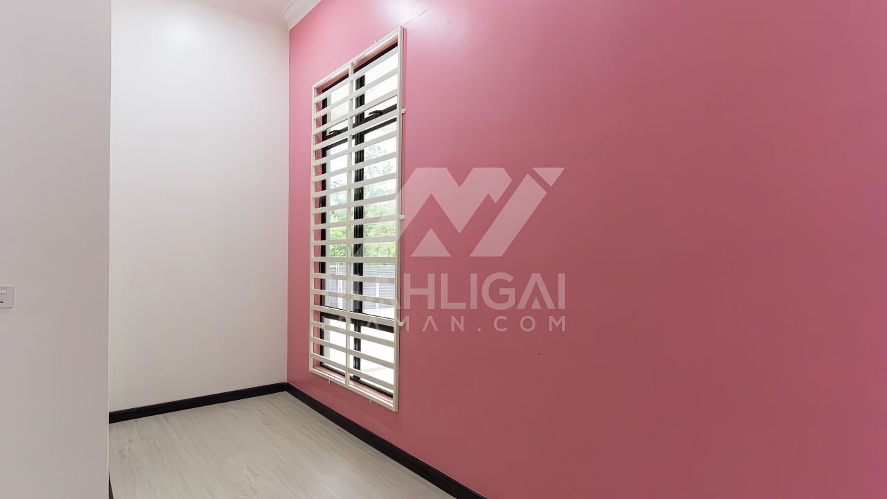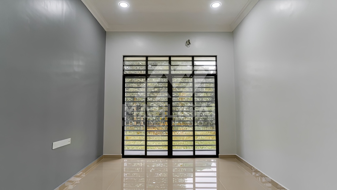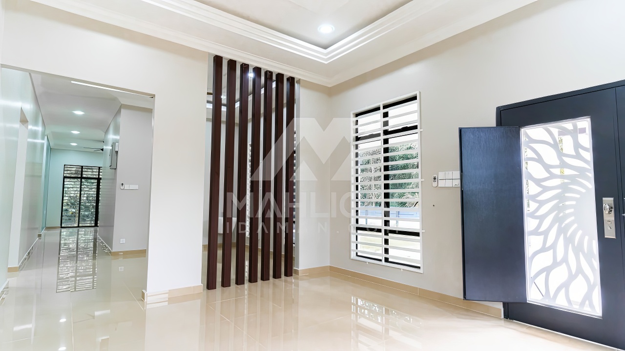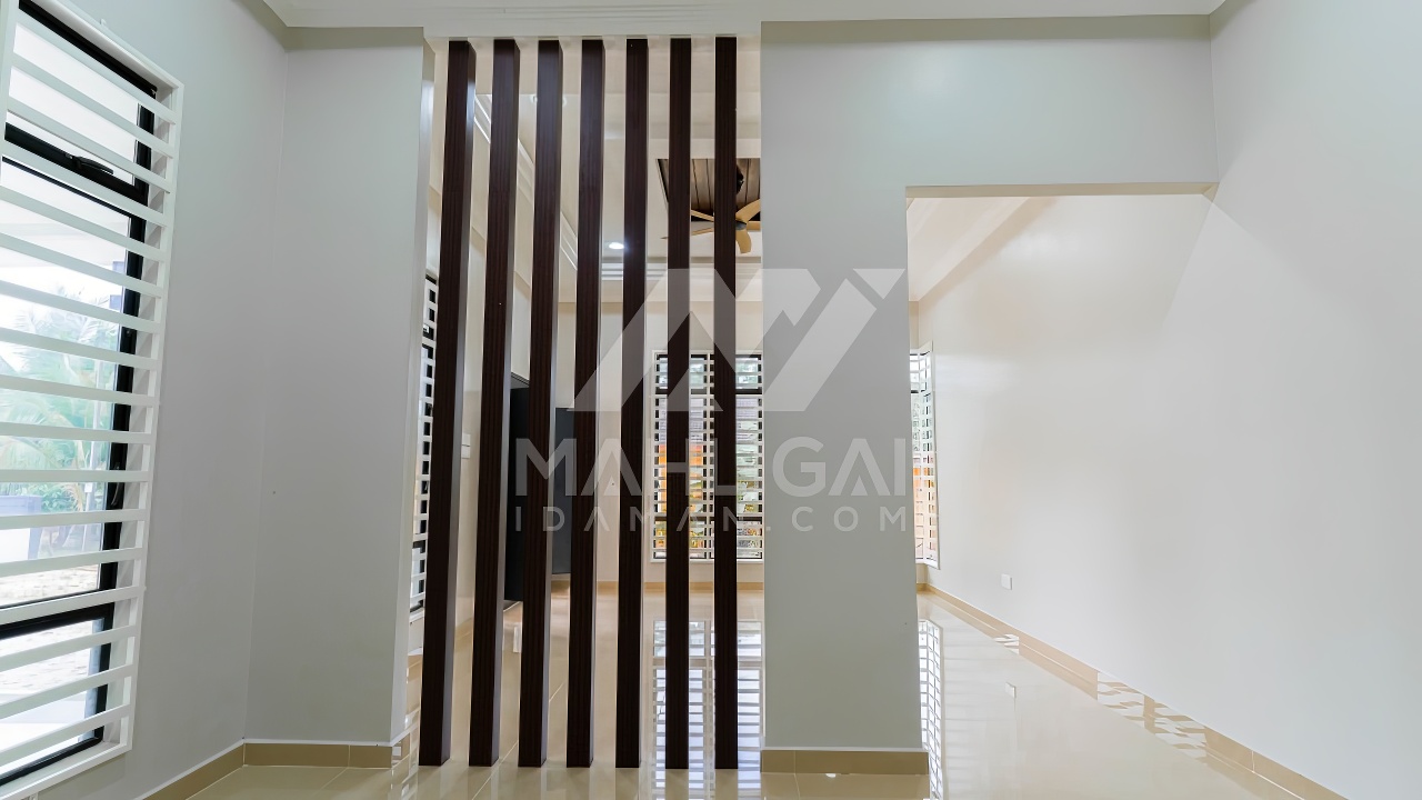 Banglo ini dibina dengan spesifikasi asas pakej silver dengan penambahan aksesori iaitu pemasangan cornice pada keseluruhan tingkap dan dinding luar rumah, groove line pada dinding di bahagian luar rumah.