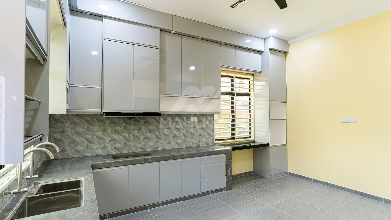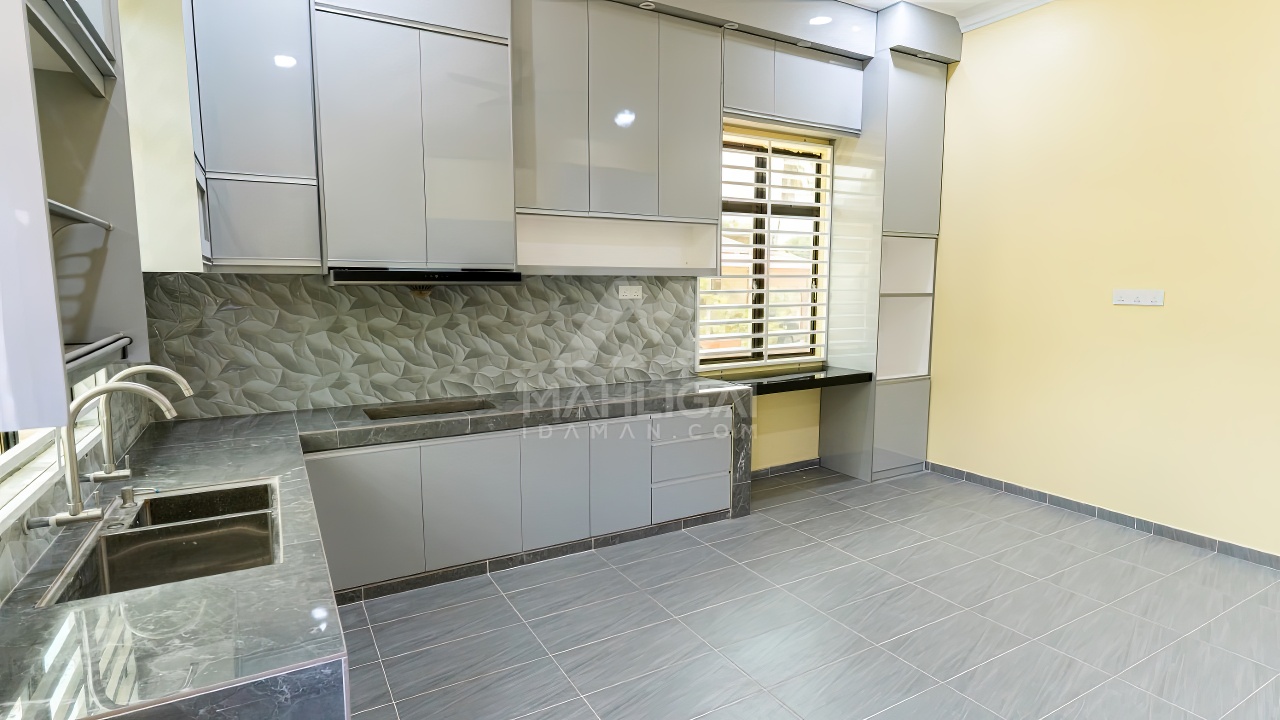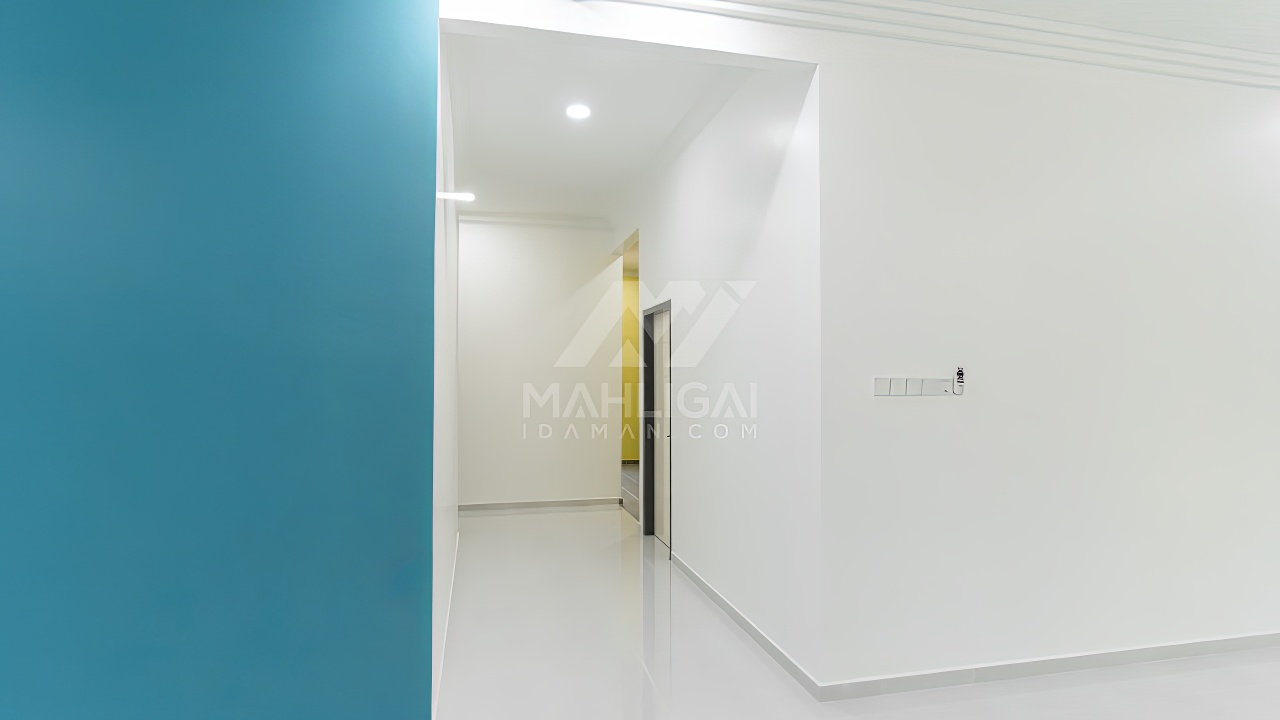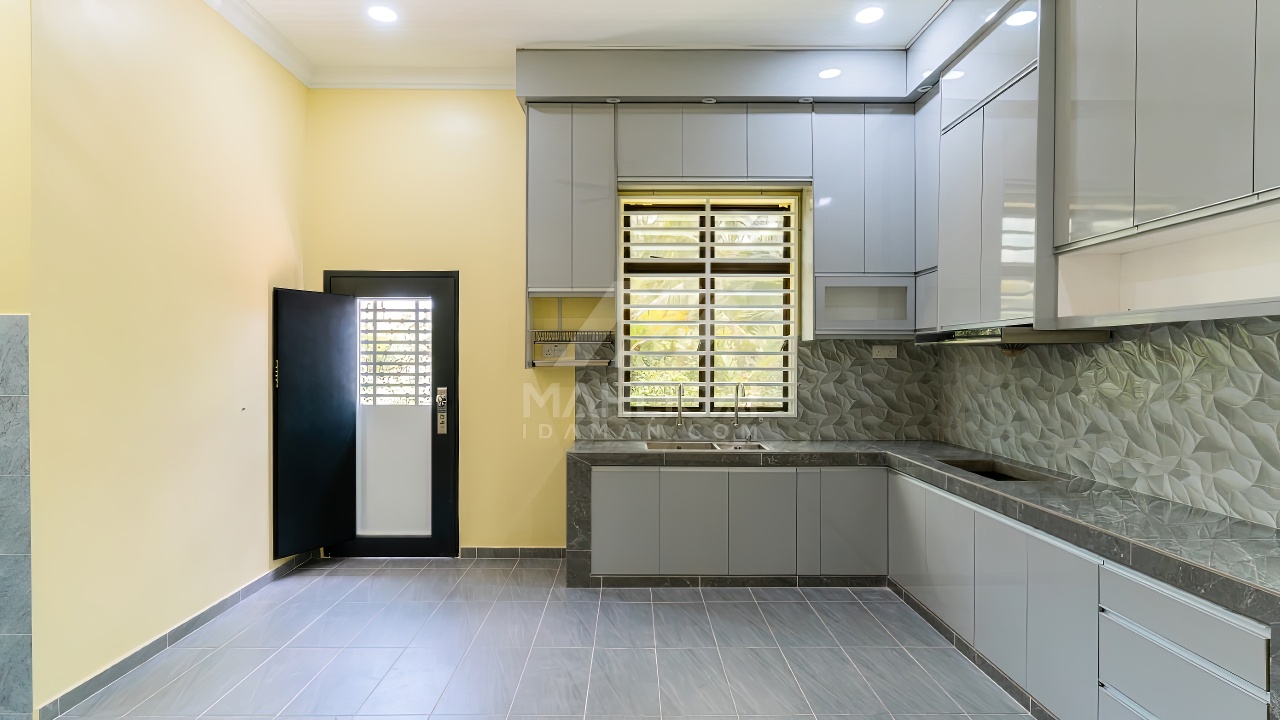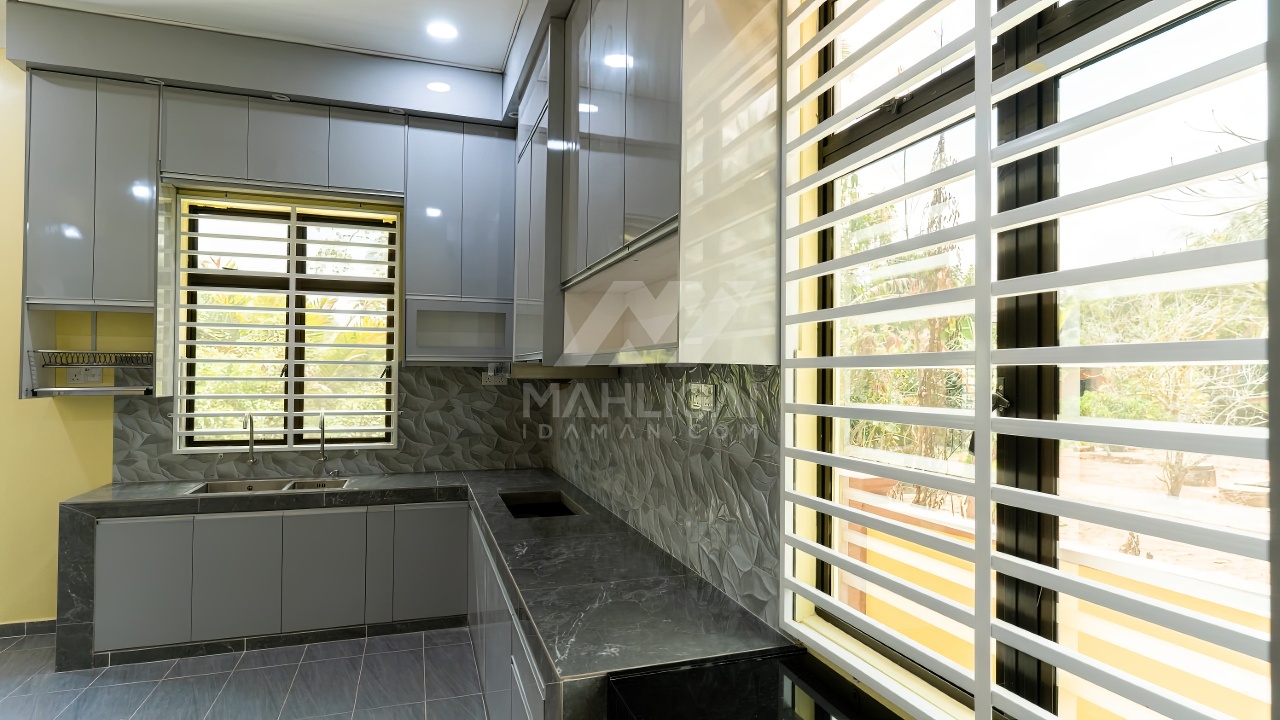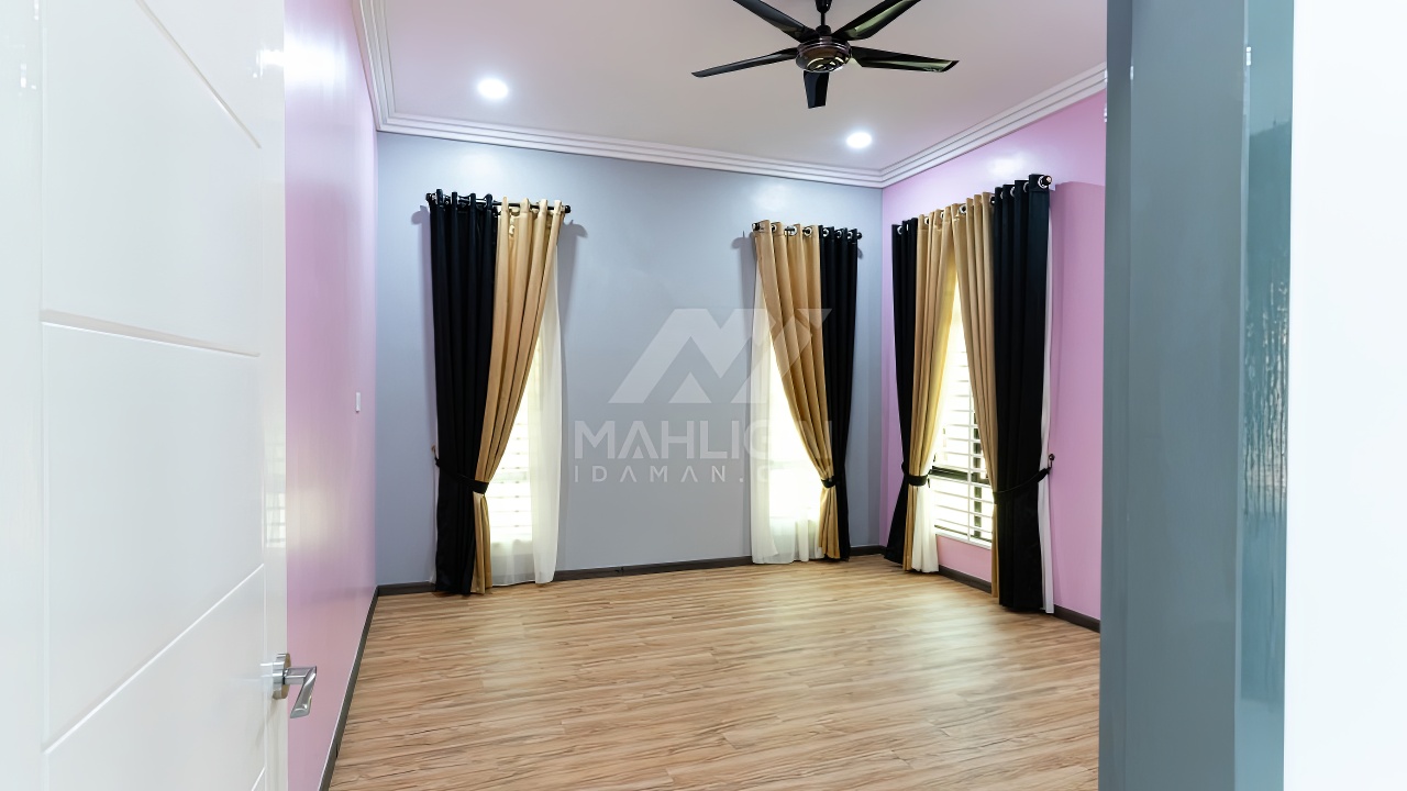 Banglo ini dibina dengan spesifikasi asas pakej gold dengan penambahan aksesori iaitu pemasangan cornice pada keseluruhan tingkap dan dinding luar rumah, groove line pada dinding di bahagian luar rumah