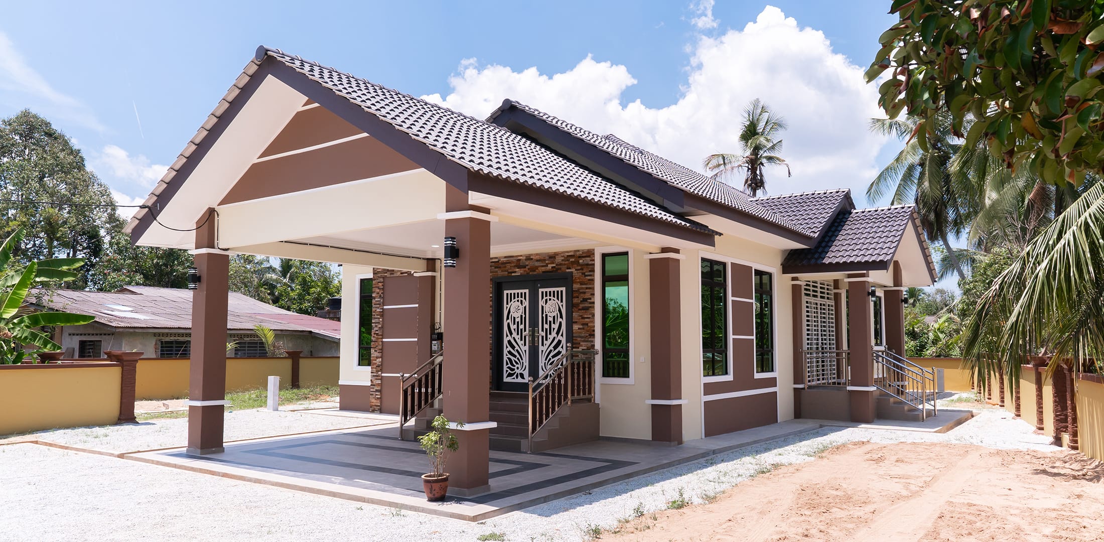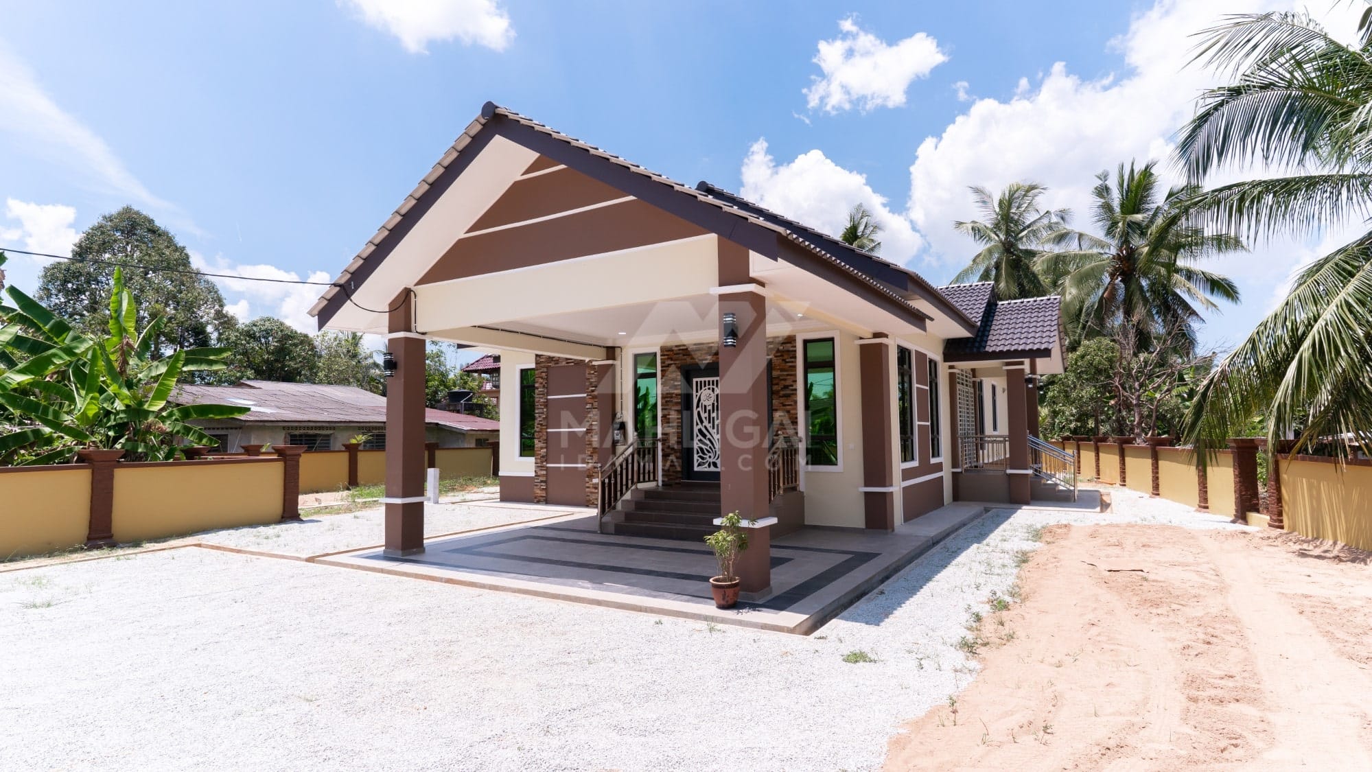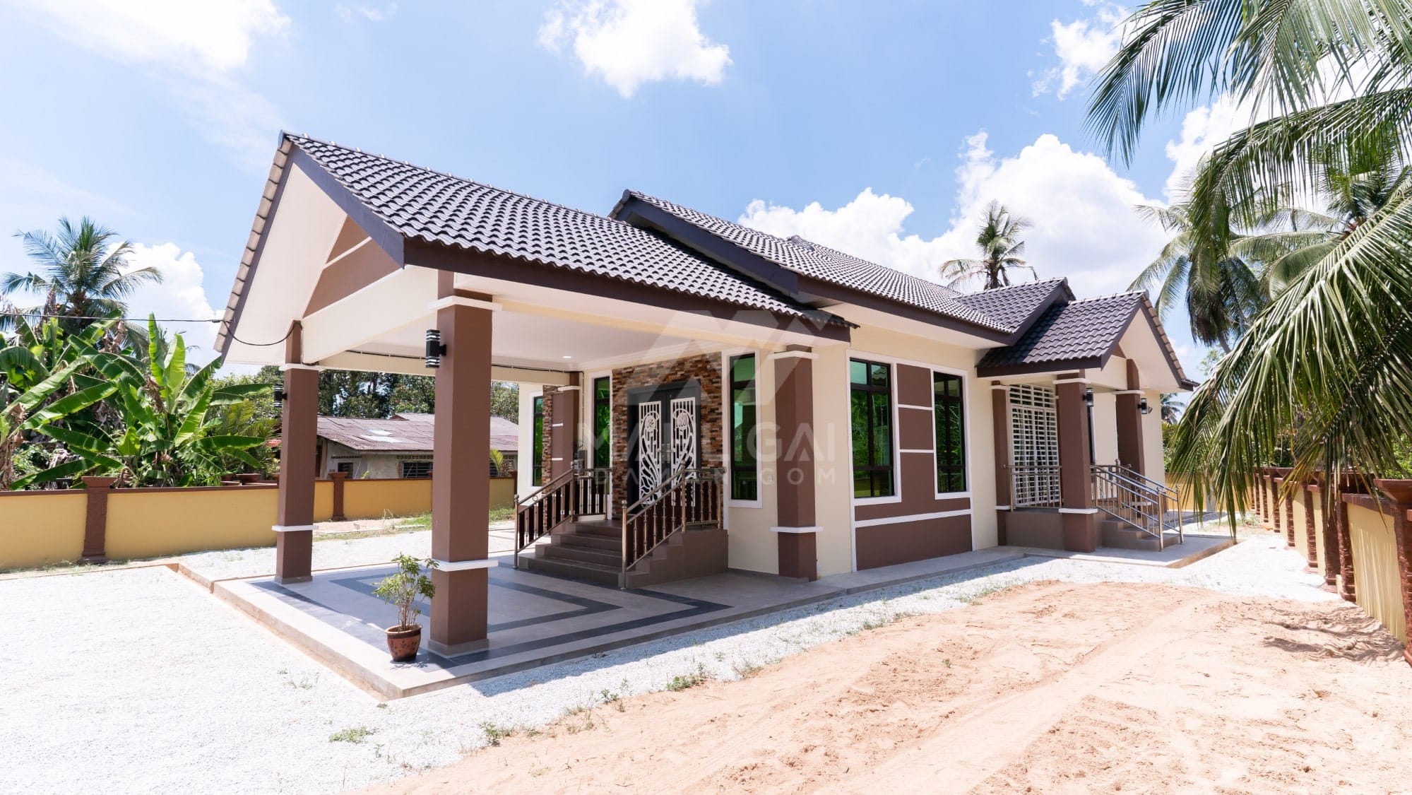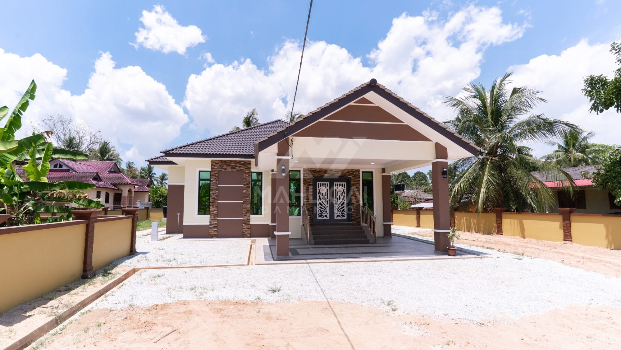 Kini banglo 1 tingkat milik klien kami Tuan Syazali telah siap dibina sepenuhnya di Bunut Susu, Pasir Mas, Kelantan. Banglo ini dilengkapi dengan empat bilik tidur dan tiga bilik air. Banglo yang berkeluasan 2,247 kaki persegi ini menggabungkan ciri-ciri banglo moden iaitu dari segi rekabentuk dalaman dan luaran yang sangat menarik. Dari segi penggunaan tona cream dan coklat. Bahagian dalam rumah pula mereka memilih warna putih dan kuning, menaikan lagi seri dan kemewahan dalam rumah.