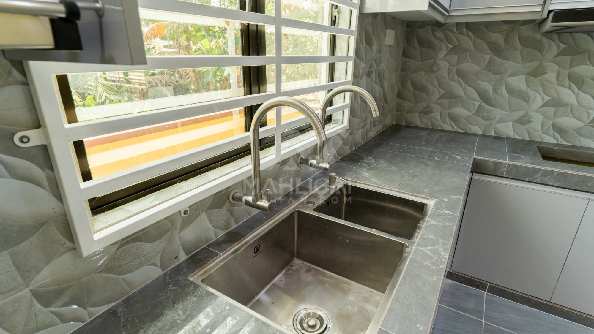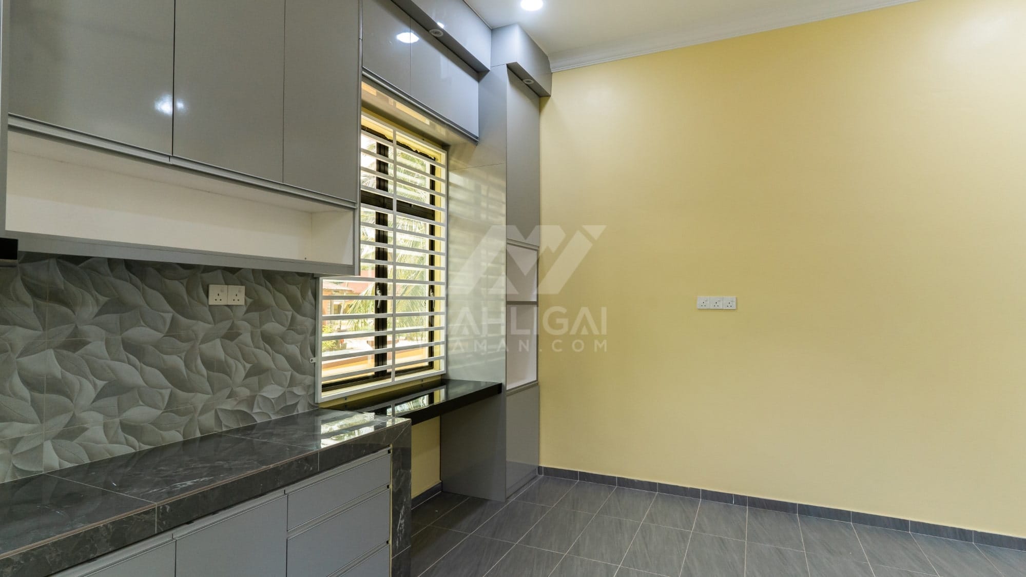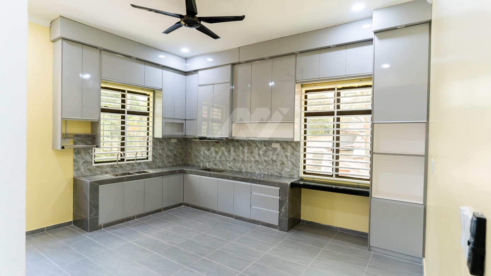 Banglo ini dibina dengan spesifikasi asas Pakej Gold dengan penambahan aksesori iaitu pemasangan cornice pada keseluruhan tingkap dan dinding luar rumah, groove line pada dinding di bahagian luar rumah.