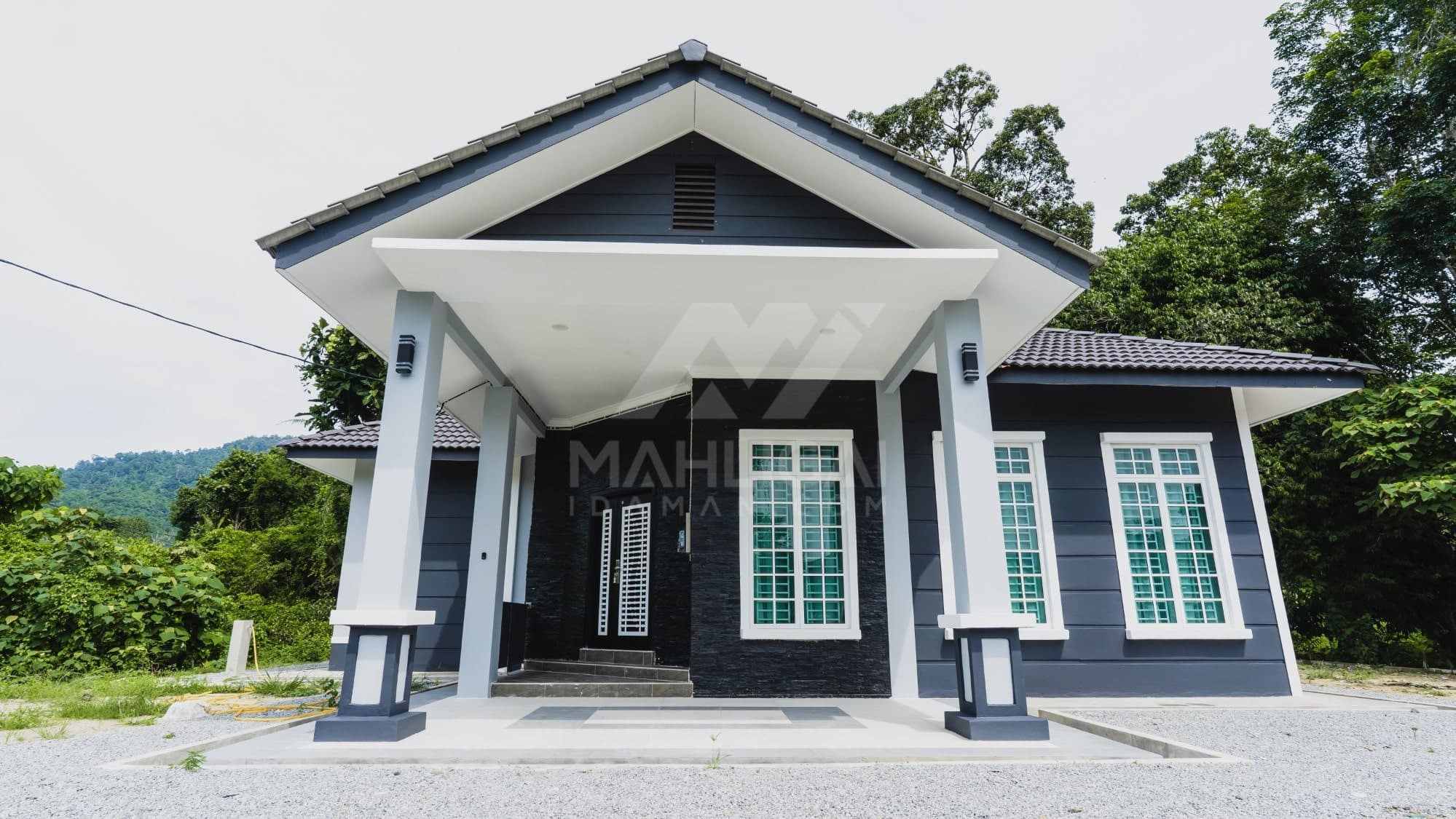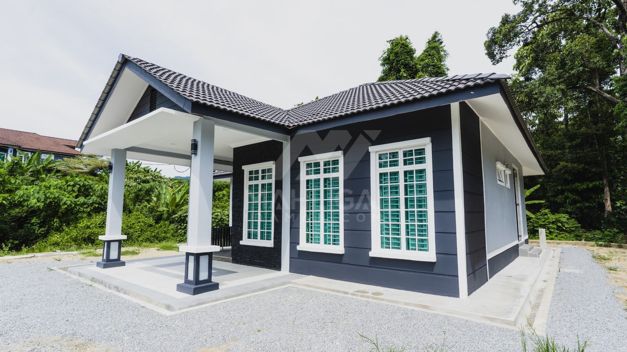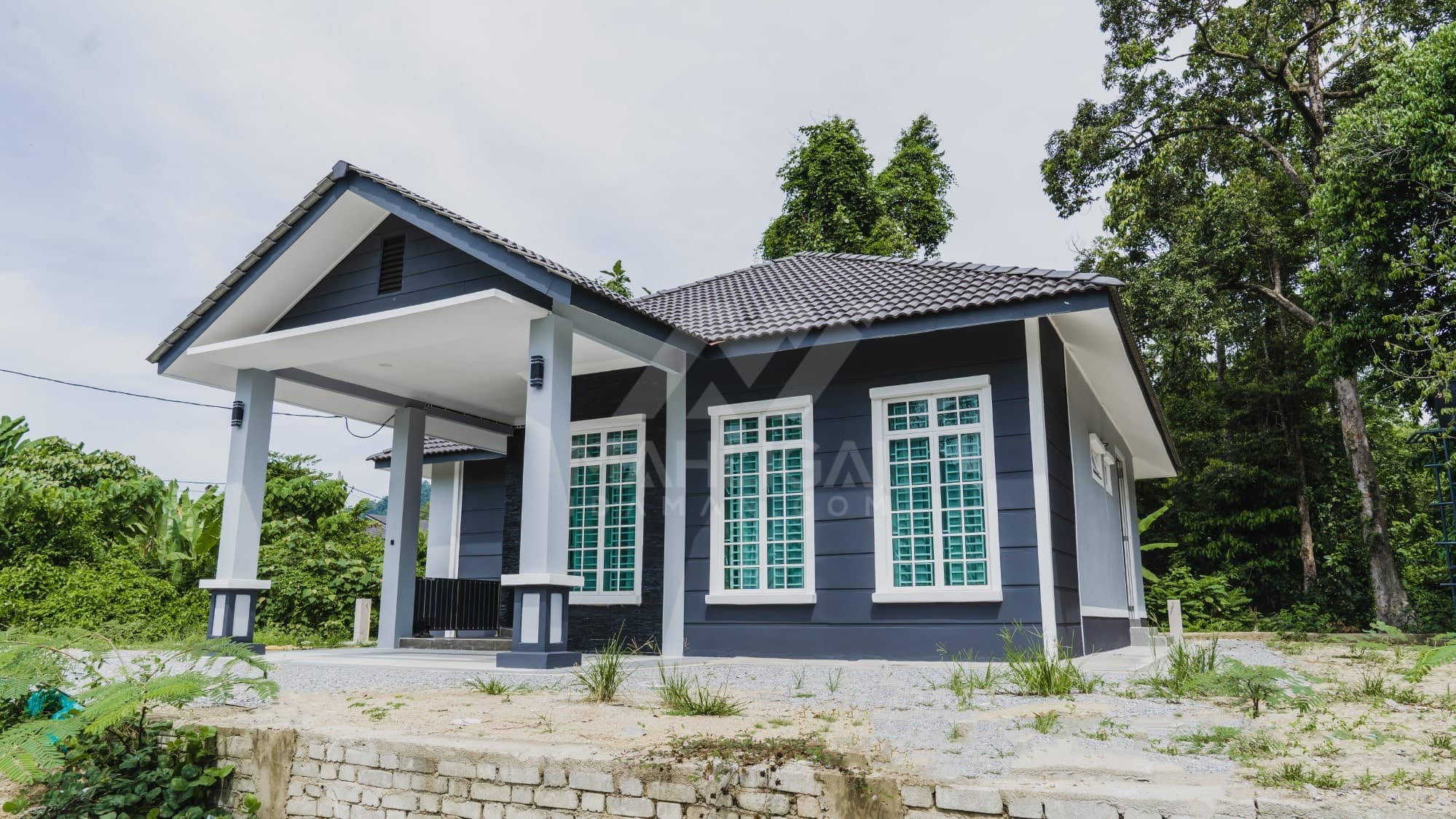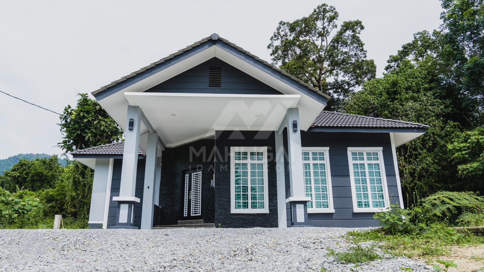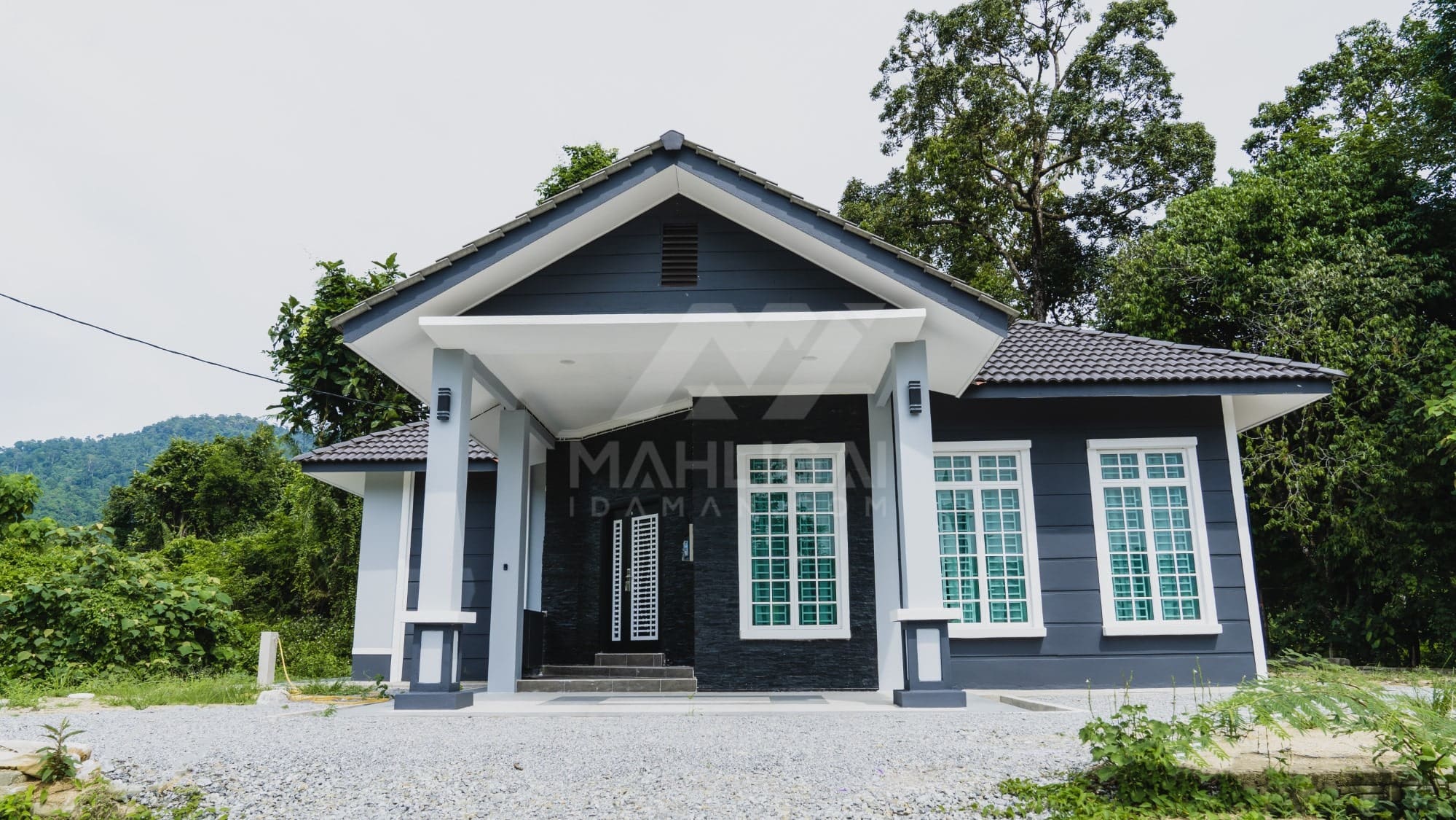 Kini banglo 1 tingkat milik klien kami Tuan Ridzuan telah siap dibina sepenuhnya di Jeli, Kelantan. Banglo ini dilengkapi dengan tiga bilik tidur dan tiga bilik air. Banglo yang berkeluasan 1,581 kaki persegi ini menggabungkan ciri-ciri banglo moden iaitu dari segi rekabentuk dalaman dan luaran yang sangat menarik. Dari segi penggunaan tona putih dan biru gelap. Bahagian dalam rumah pula mereka memilih warna putih, menaikan lagi seri dan kemewahan dalam rumah.