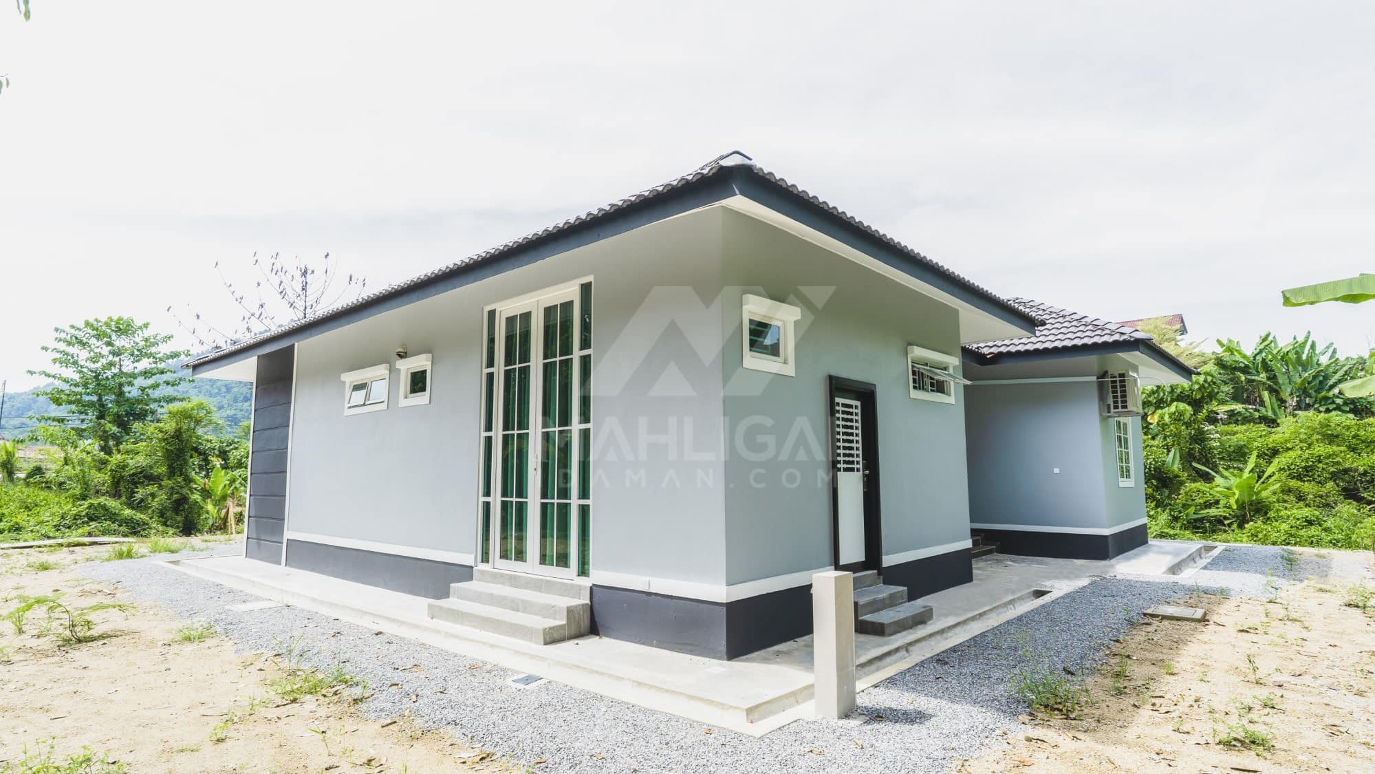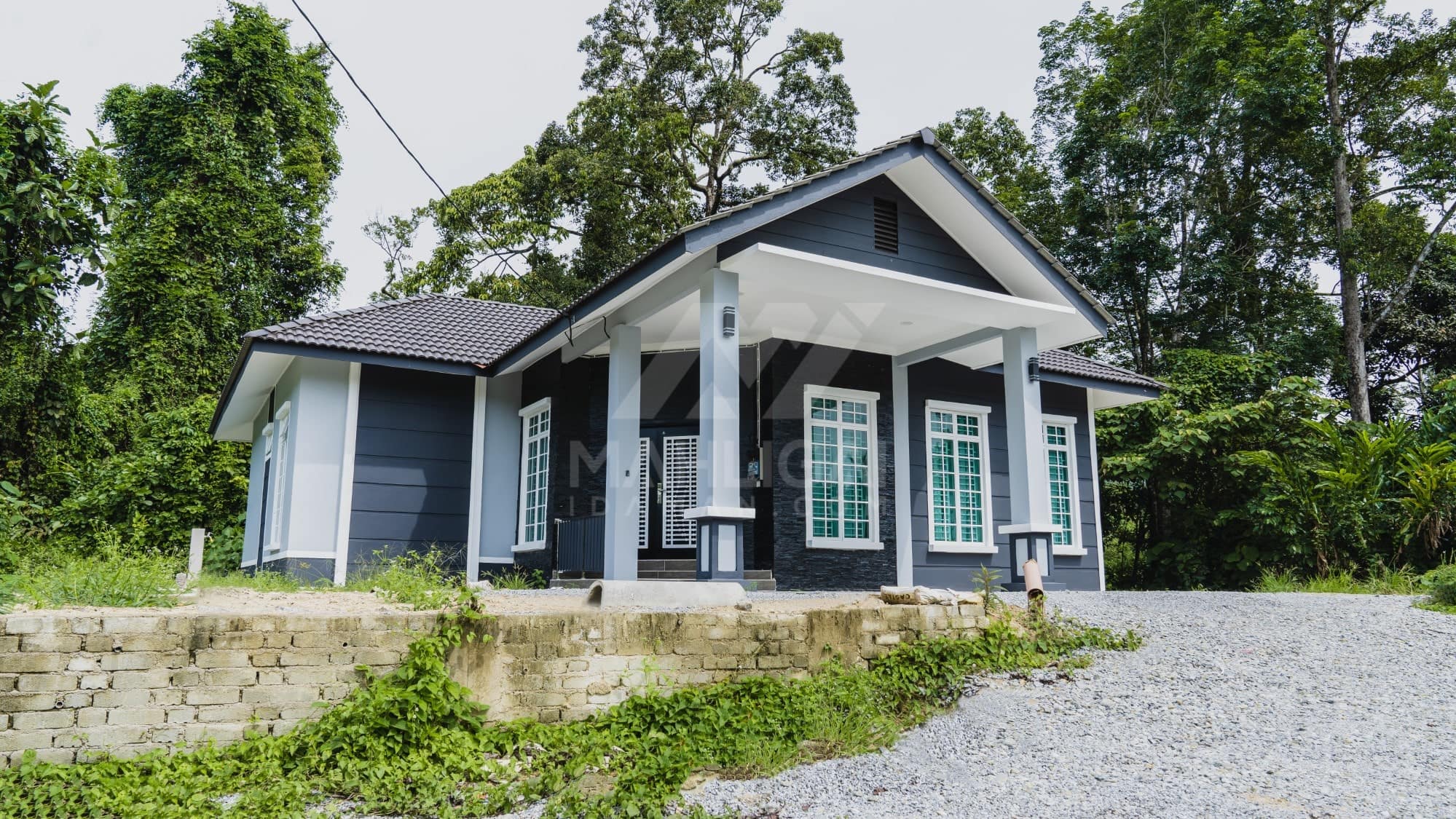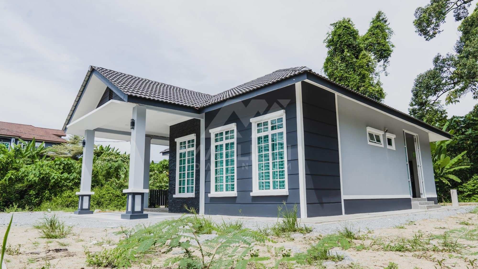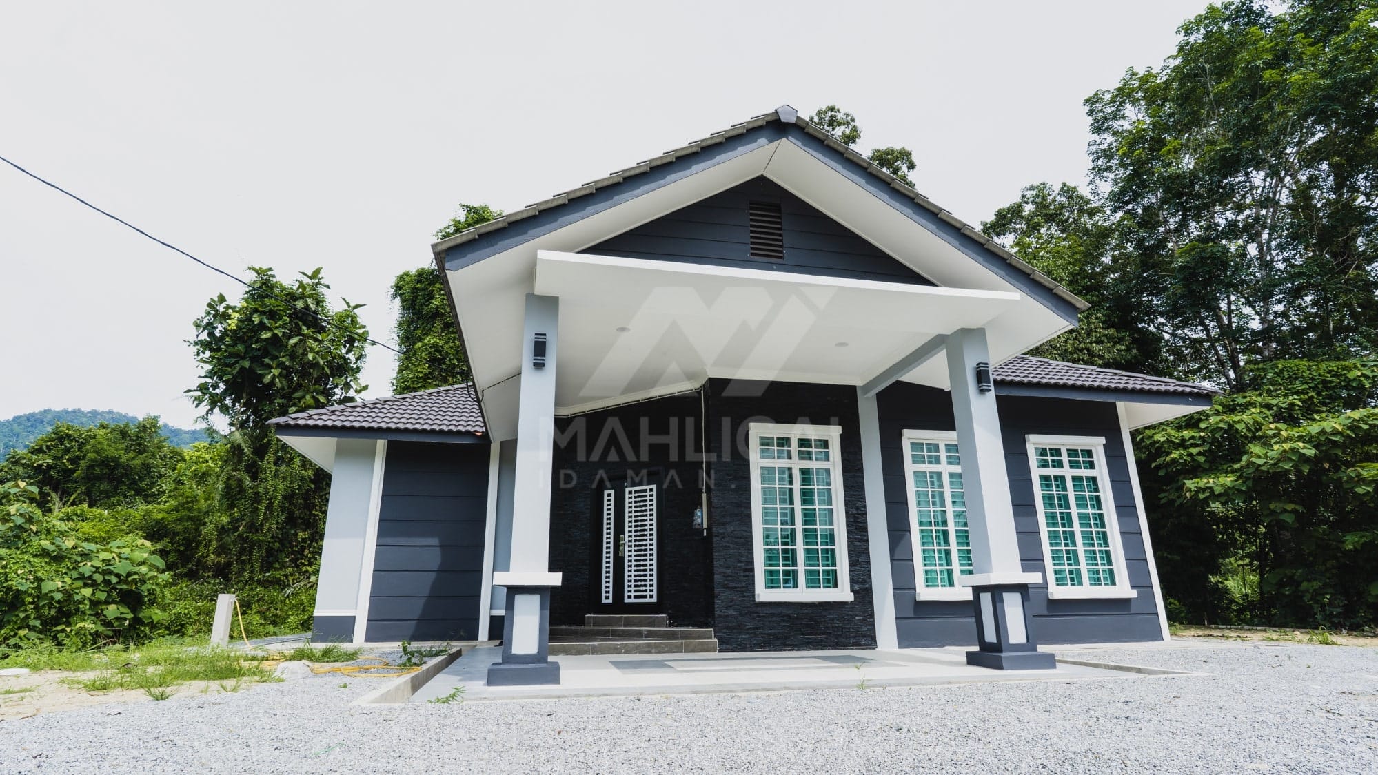 Kini banglo 1 tingkat milik klien kami Tuan Ridzuan telah siap dibina sepenuhnya di Jeli, Kelantan. Banglo ini dilengkapi dengan tiga bilik tidur dan tiga bilik air. Banglo yang berkeluasan 1,581 kaki persegi ini menggabungkan ciri-ciri banglo moden iaitu dari segi rekabentuk dalaman dan luaran yang sangat menarik. Dari segi penggunaan tona putih dan biru gelap. Bahagian dalam rumah pula mereka memilih warna putih, menaikan lagi seri dan kemewahan dalam rumah.