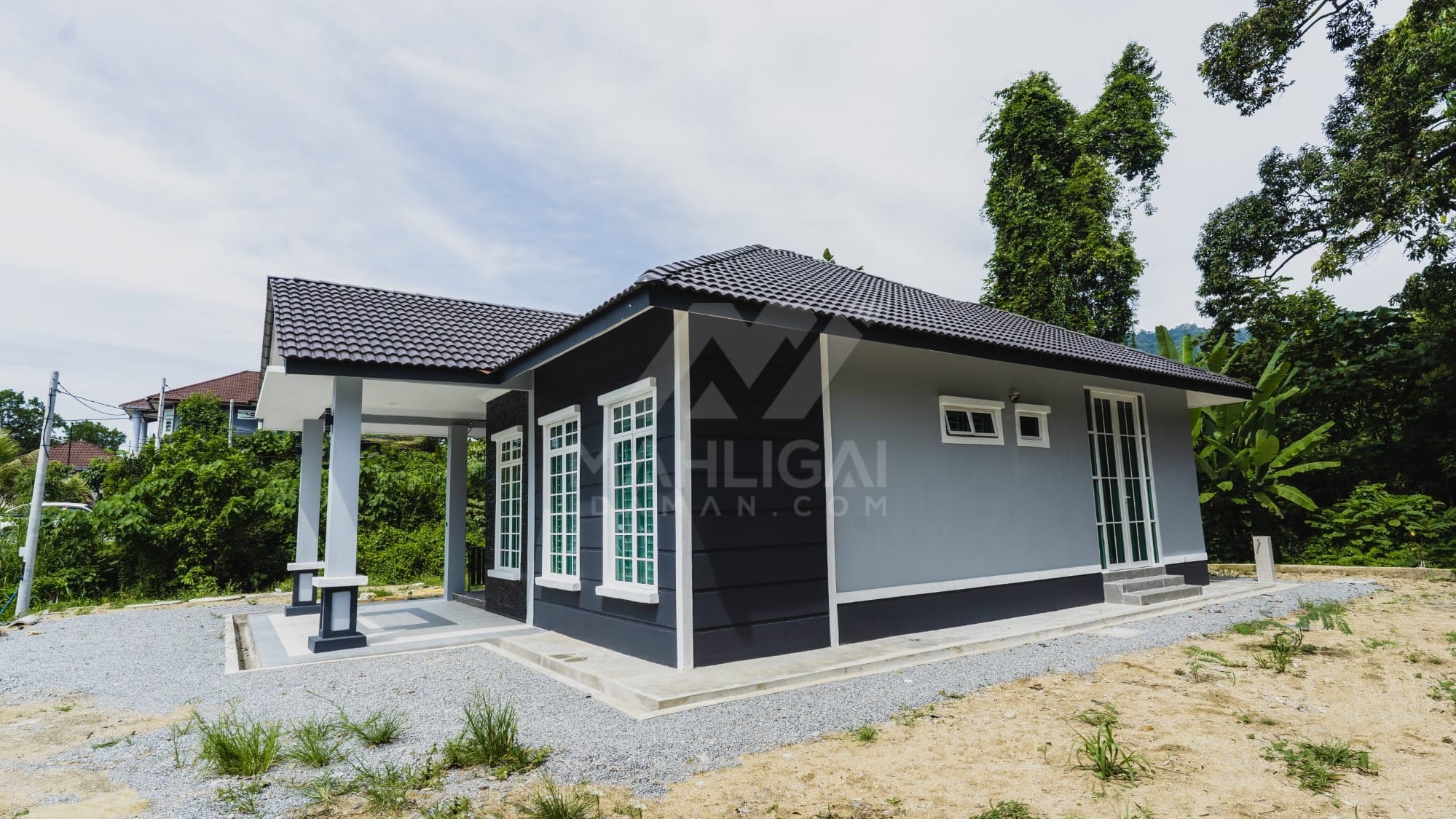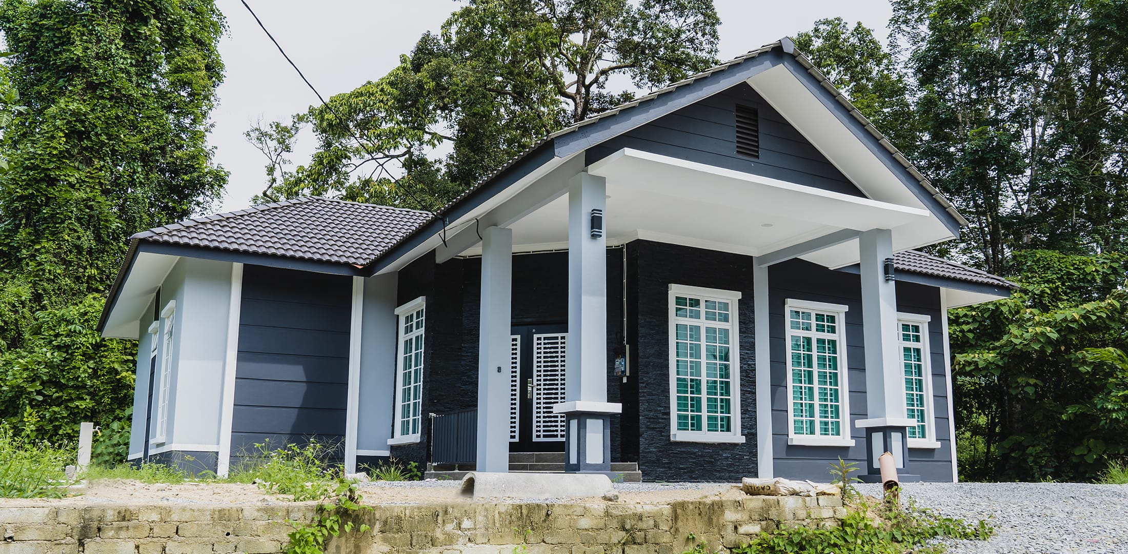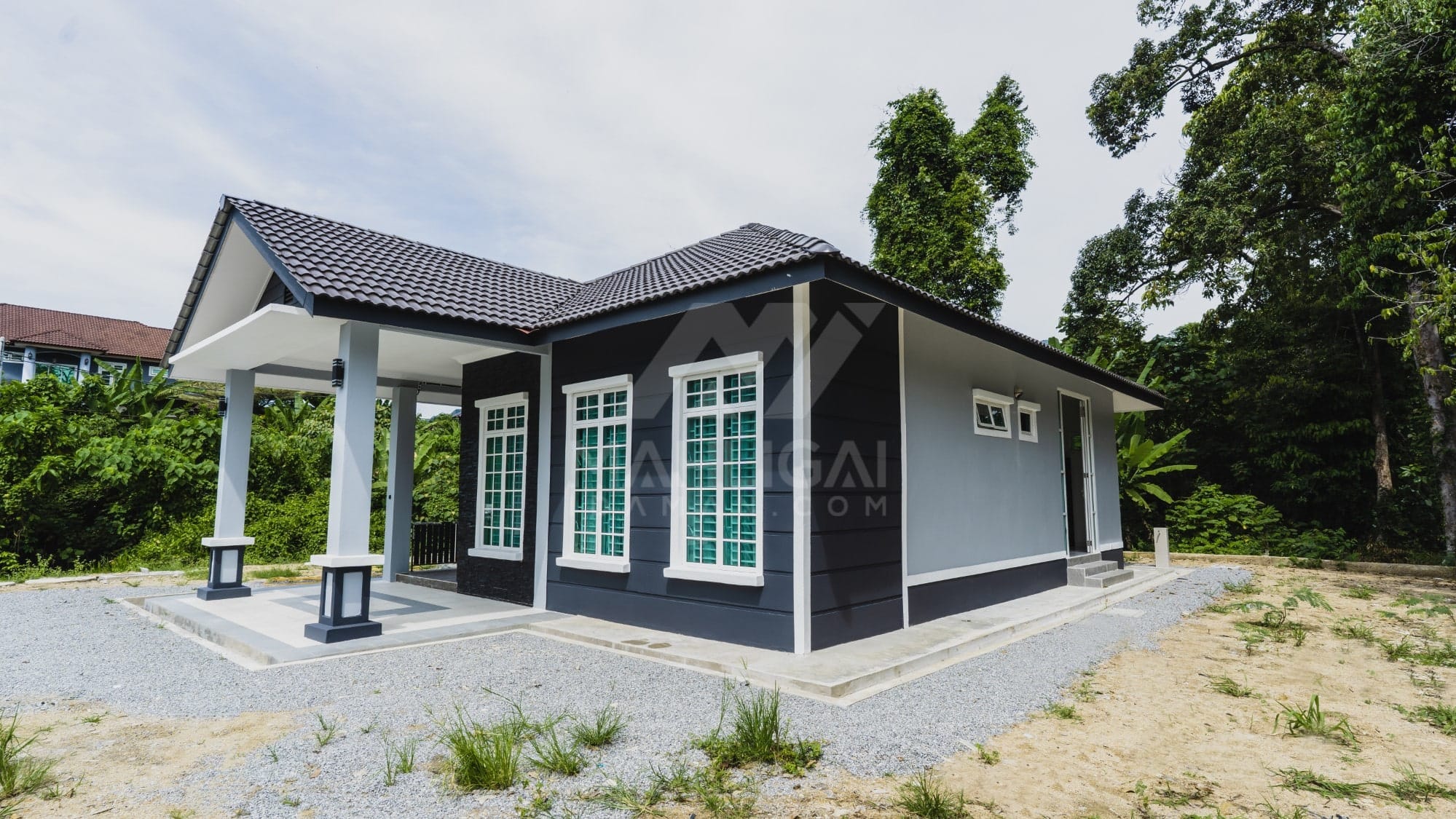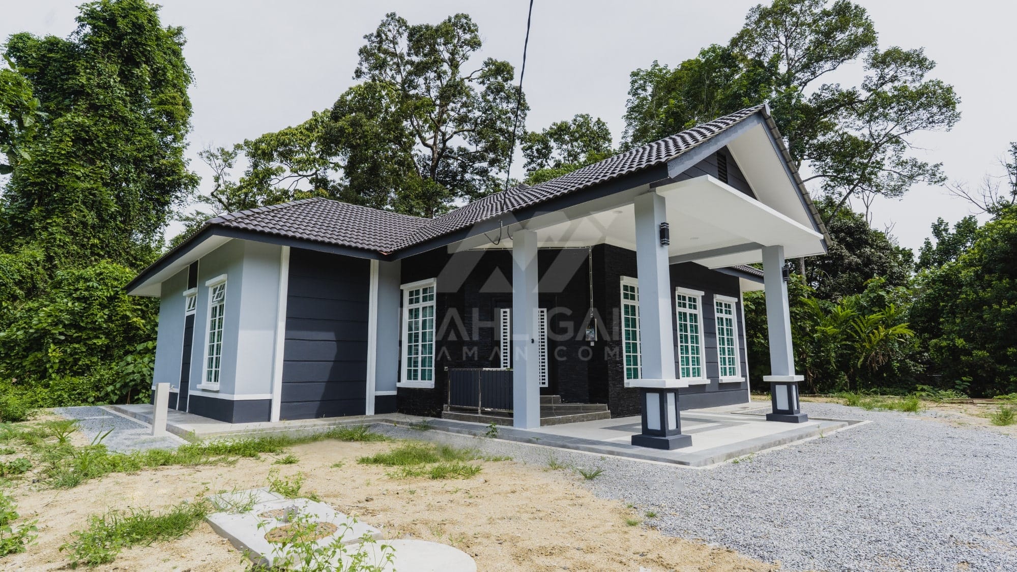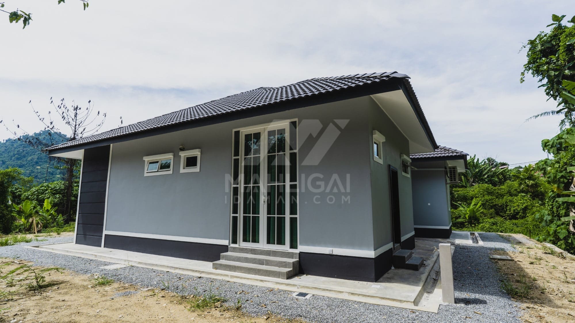 Kini banglo 1 tingkat milik klien kami Tuan Ridzuan telah siap dibina sepenuhnya di Jeli, Kelantan. Banglo ini dilengkapi dengan tiga bilik tidur dan tiga bilik air. Banglo yang berkeluasan 1,581 kaki persegi ini menggabungkan ciri-ciri banglo moden iaitu dari segi rekabentuk dalaman dan luaran yang sangat menarik. Dari segi penggunaan tona putih dan biru gelap. Bahagian dalam rumah pula mereka memilih warna putih, menaikan lagi seri dan kemewahan dalam rumah.