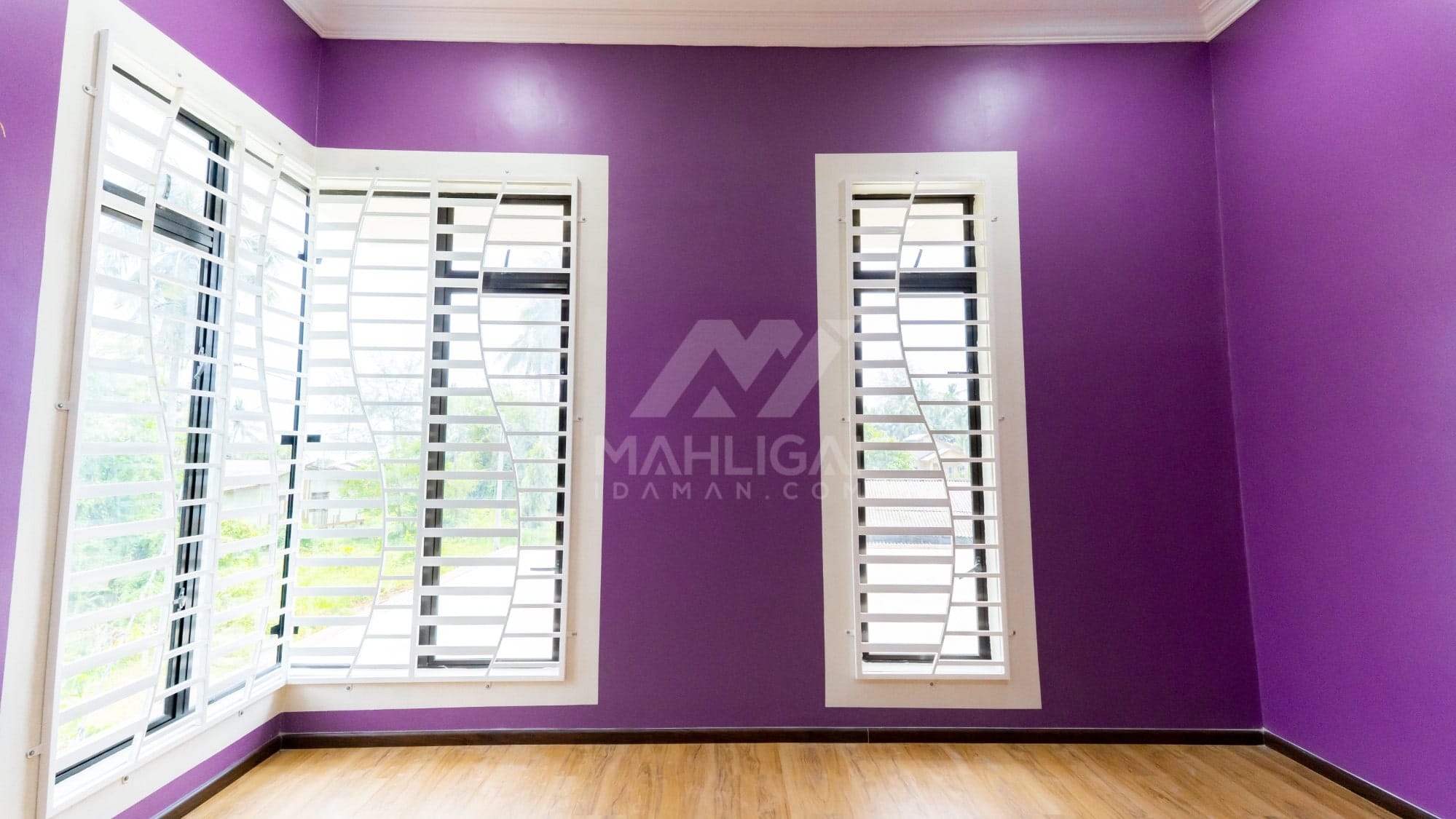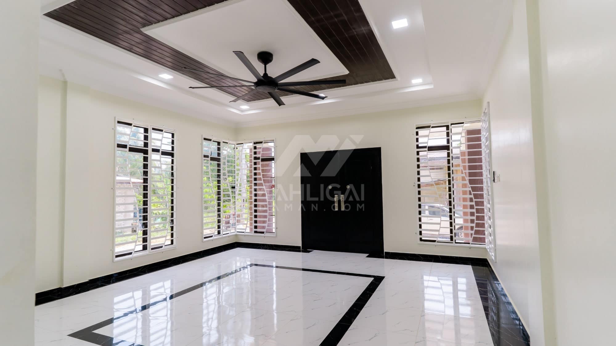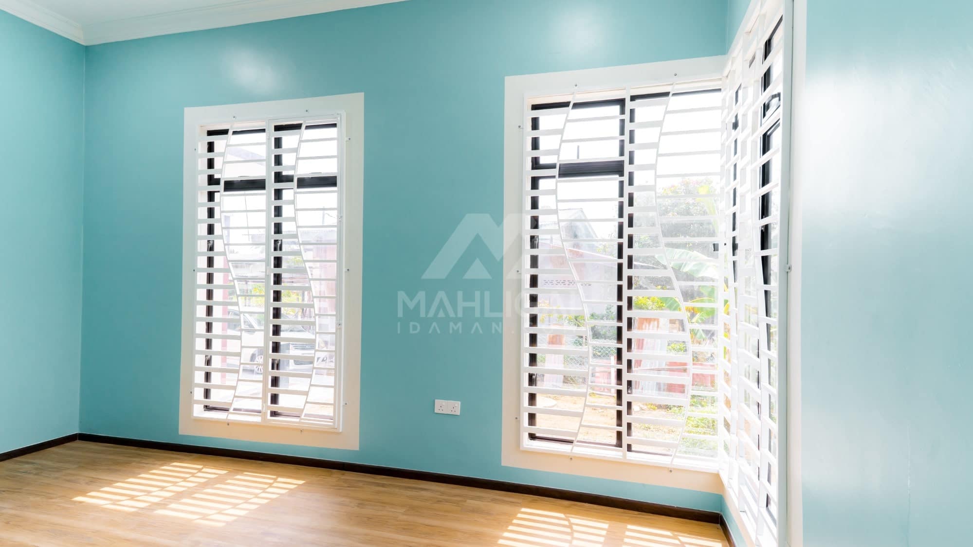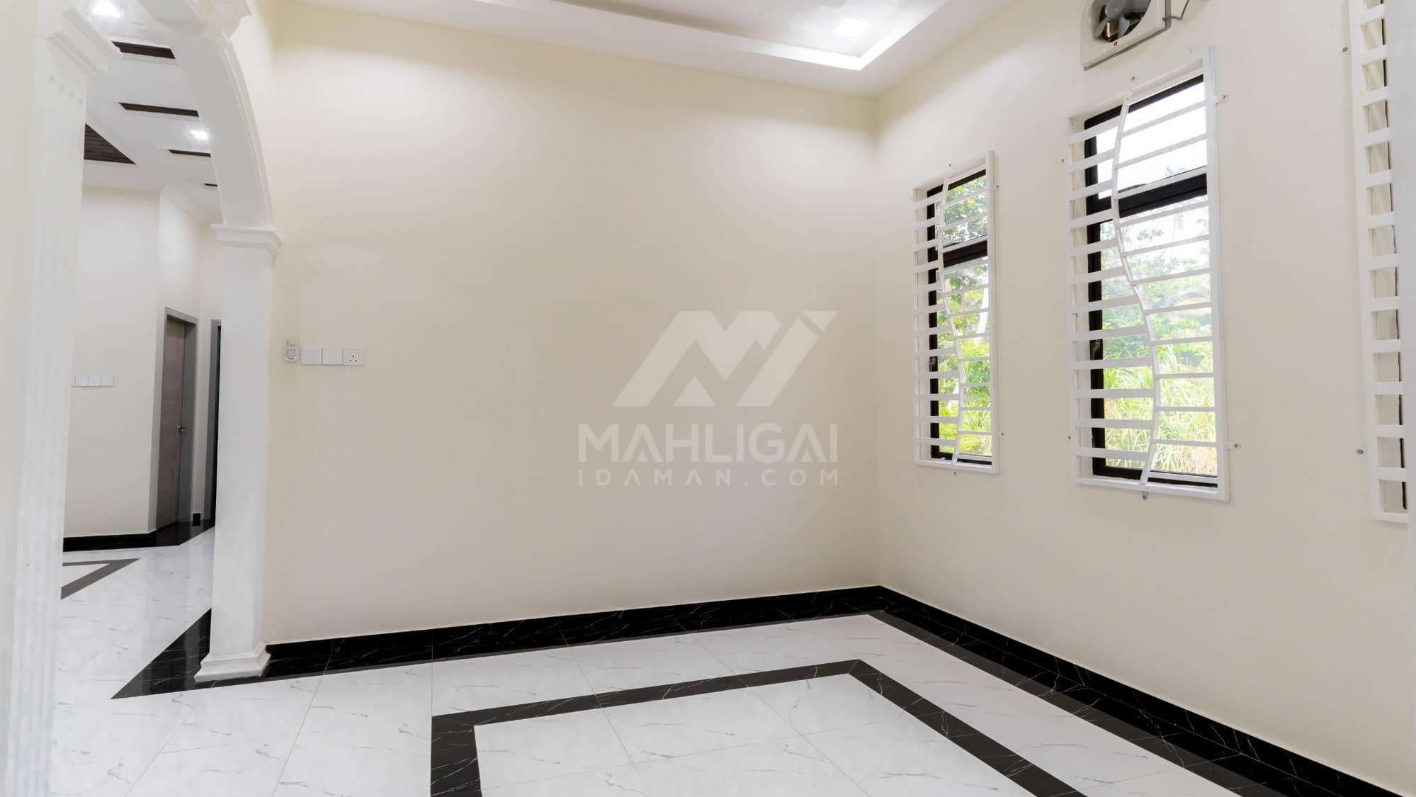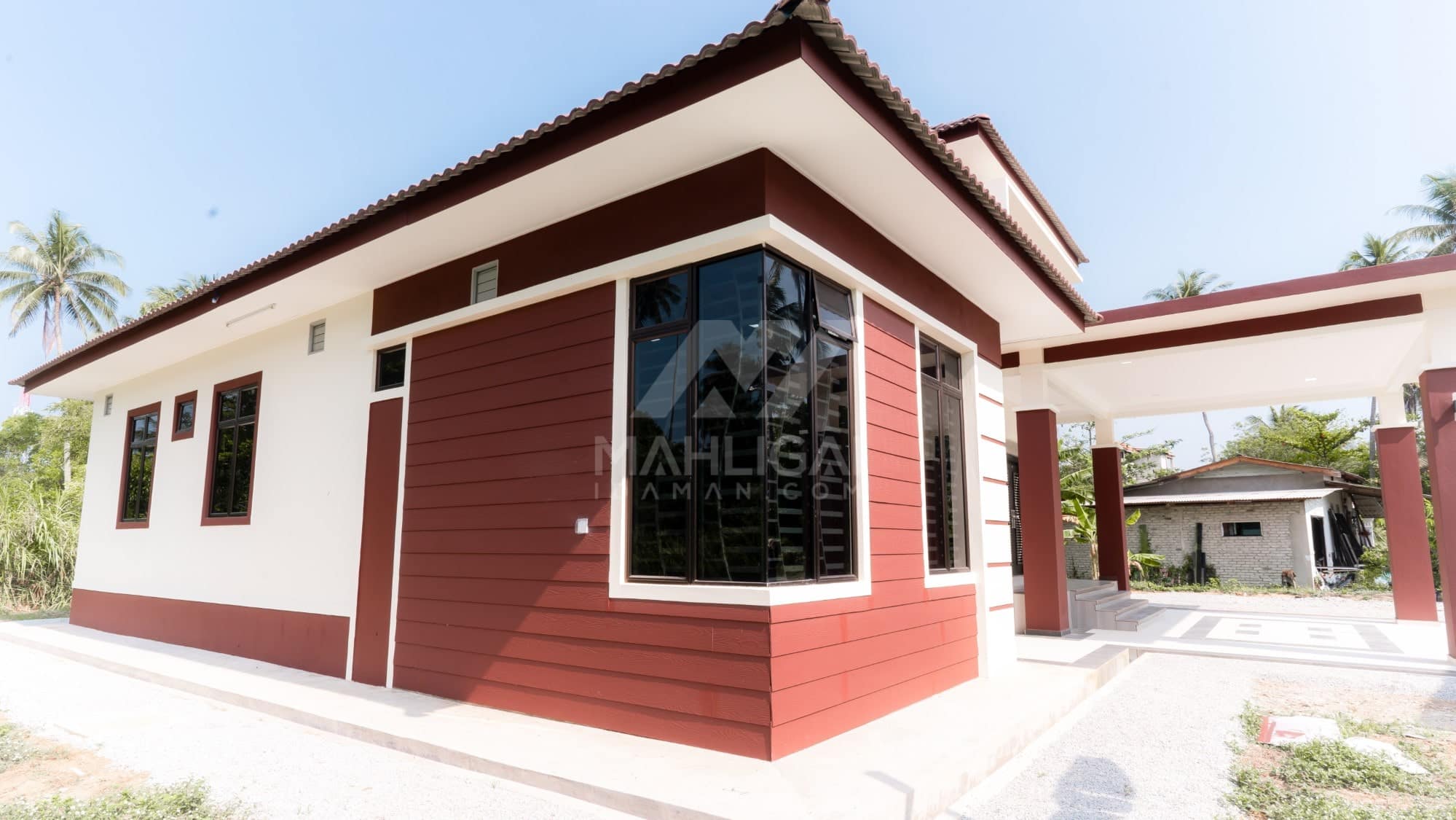 Banglo ini dibina dengan spesifikasi asas Pakej Silver dengan penambahan aksesori iaitu pemasangan cornice pada keseluruhan tingkap dan dinding luar rumah, groove line pada dinding di bahagian luar rumah.