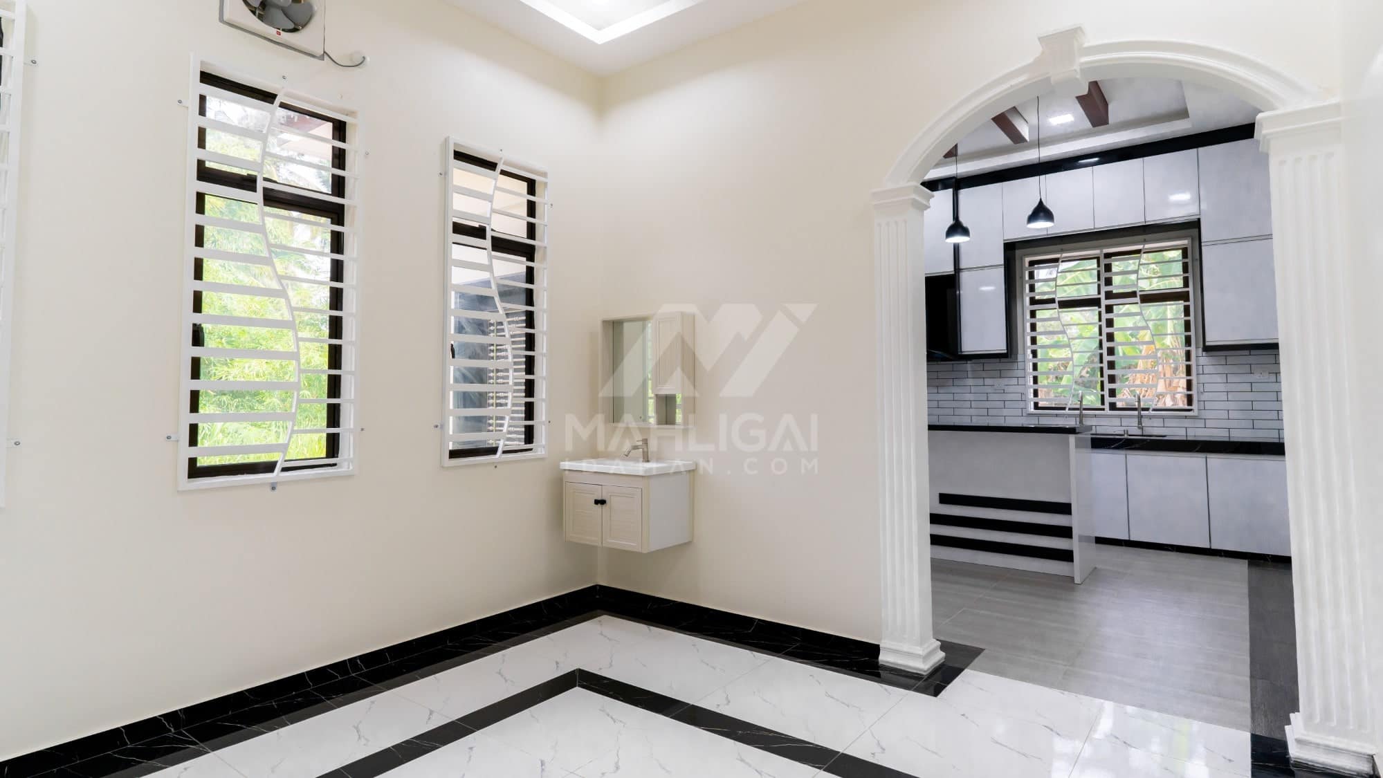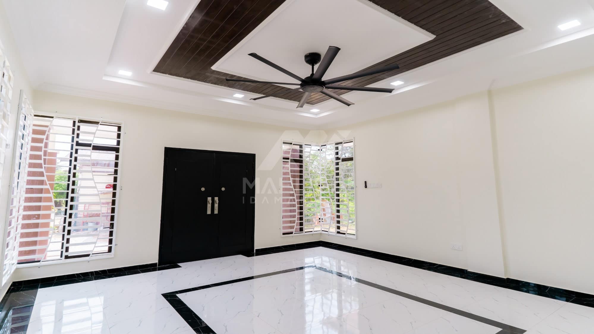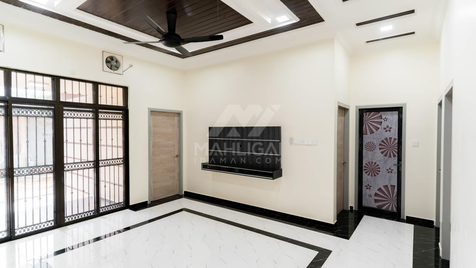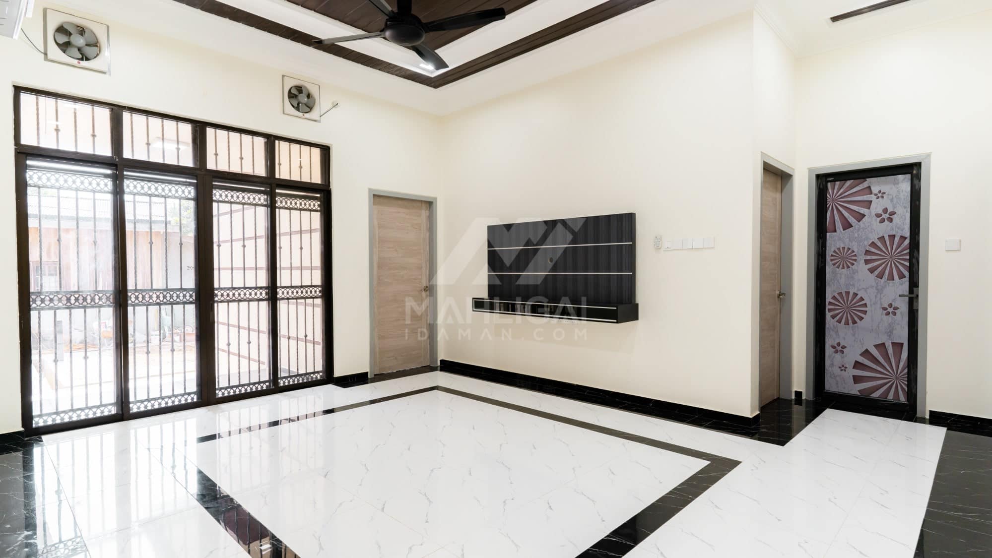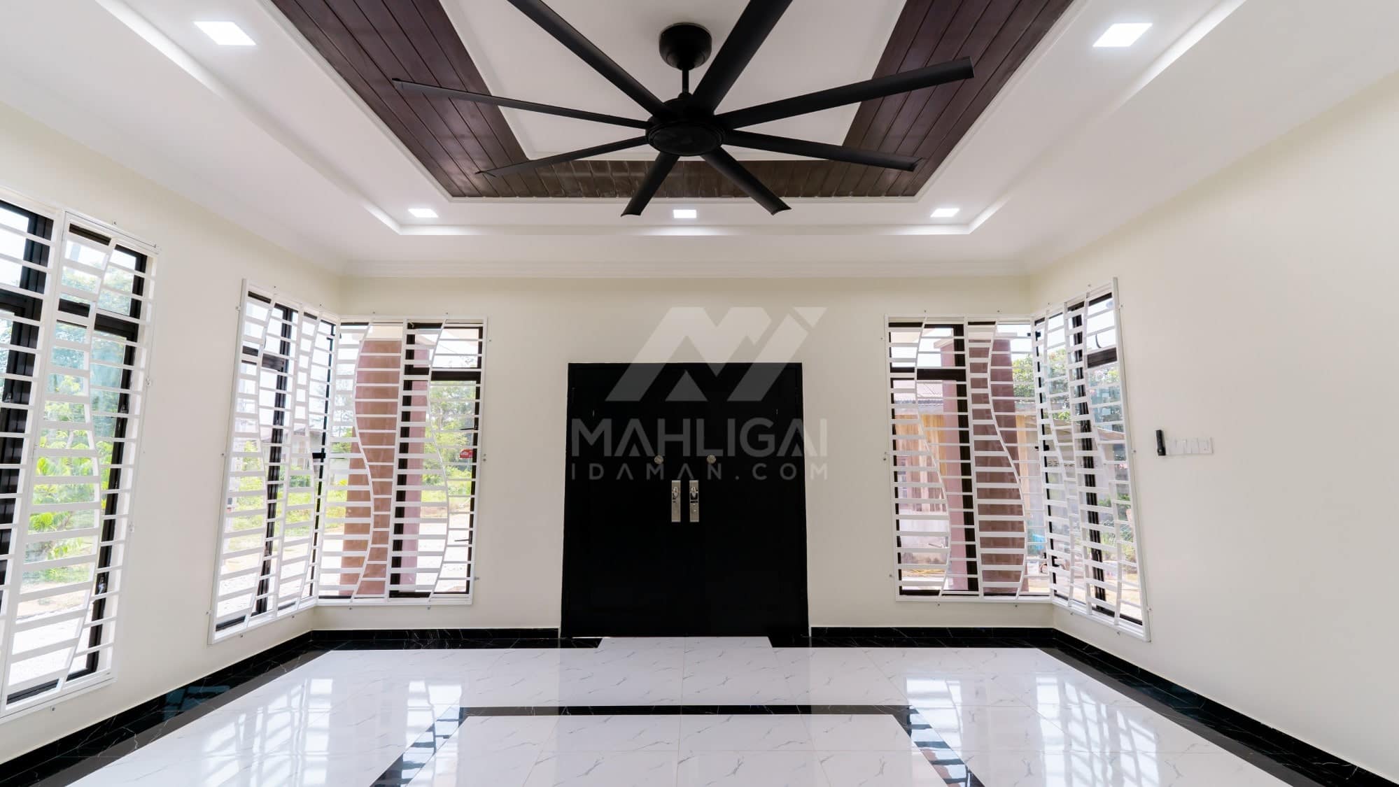 Banglo ini dibina dengan spesifikasi asas Pakej Silver dengan penambahan aksesori iaitu pemasangan cornice pada keseluruhan tingkap dan dinding luar rumah, groove line pada dinding di bahagian luar rumah.