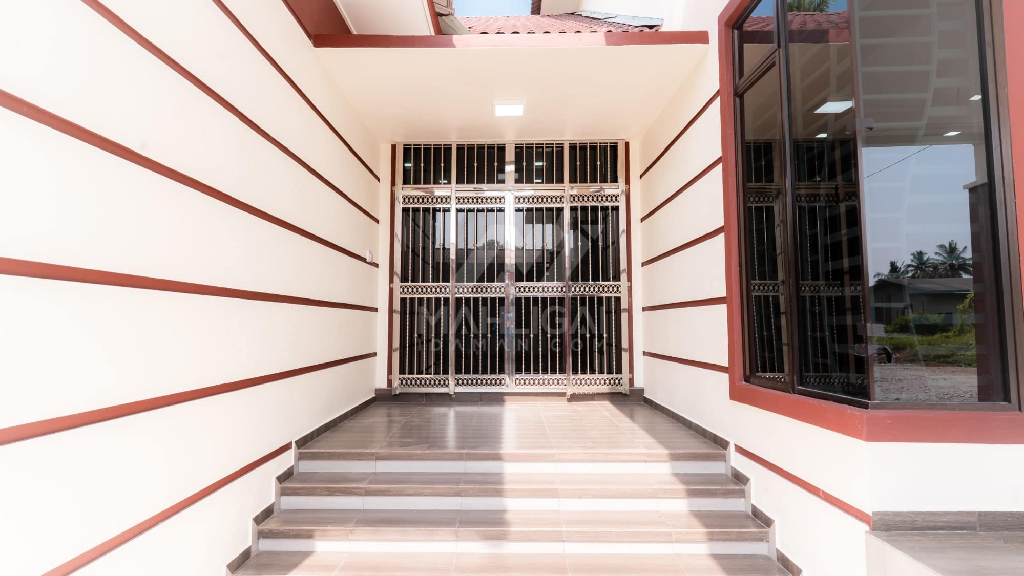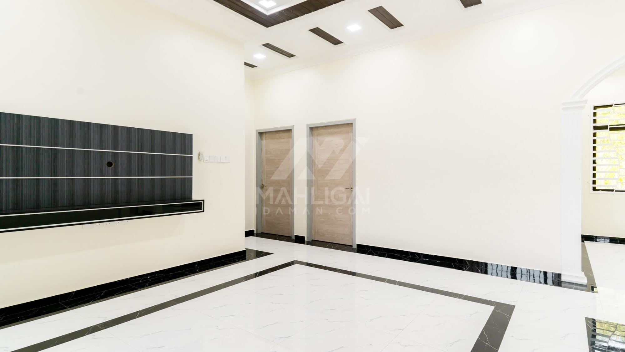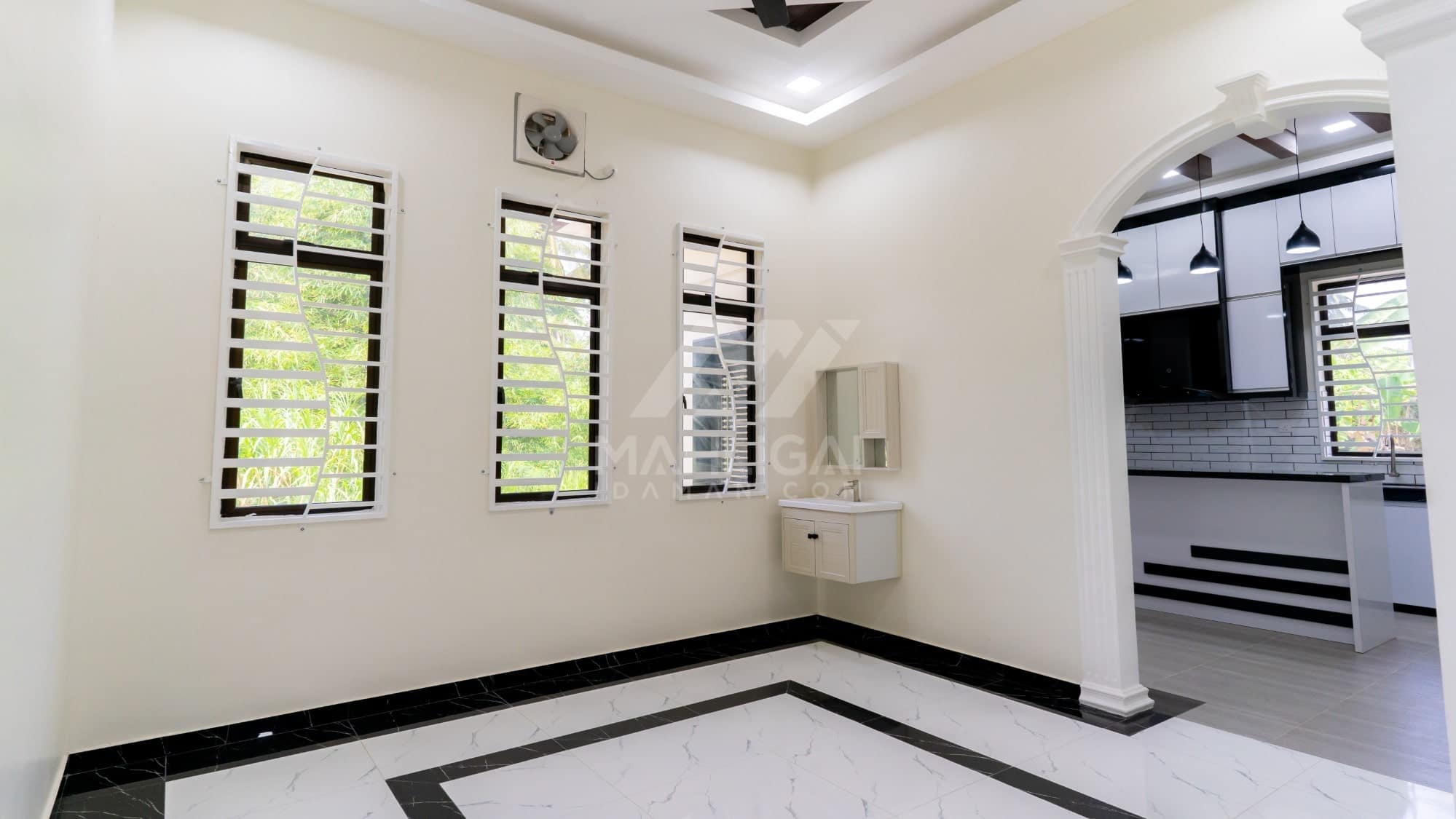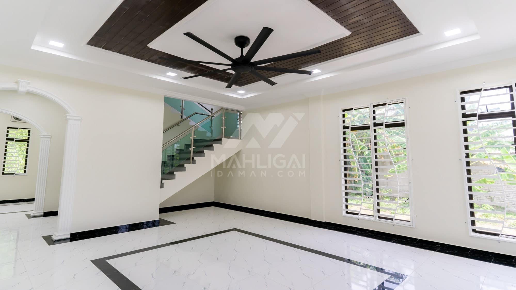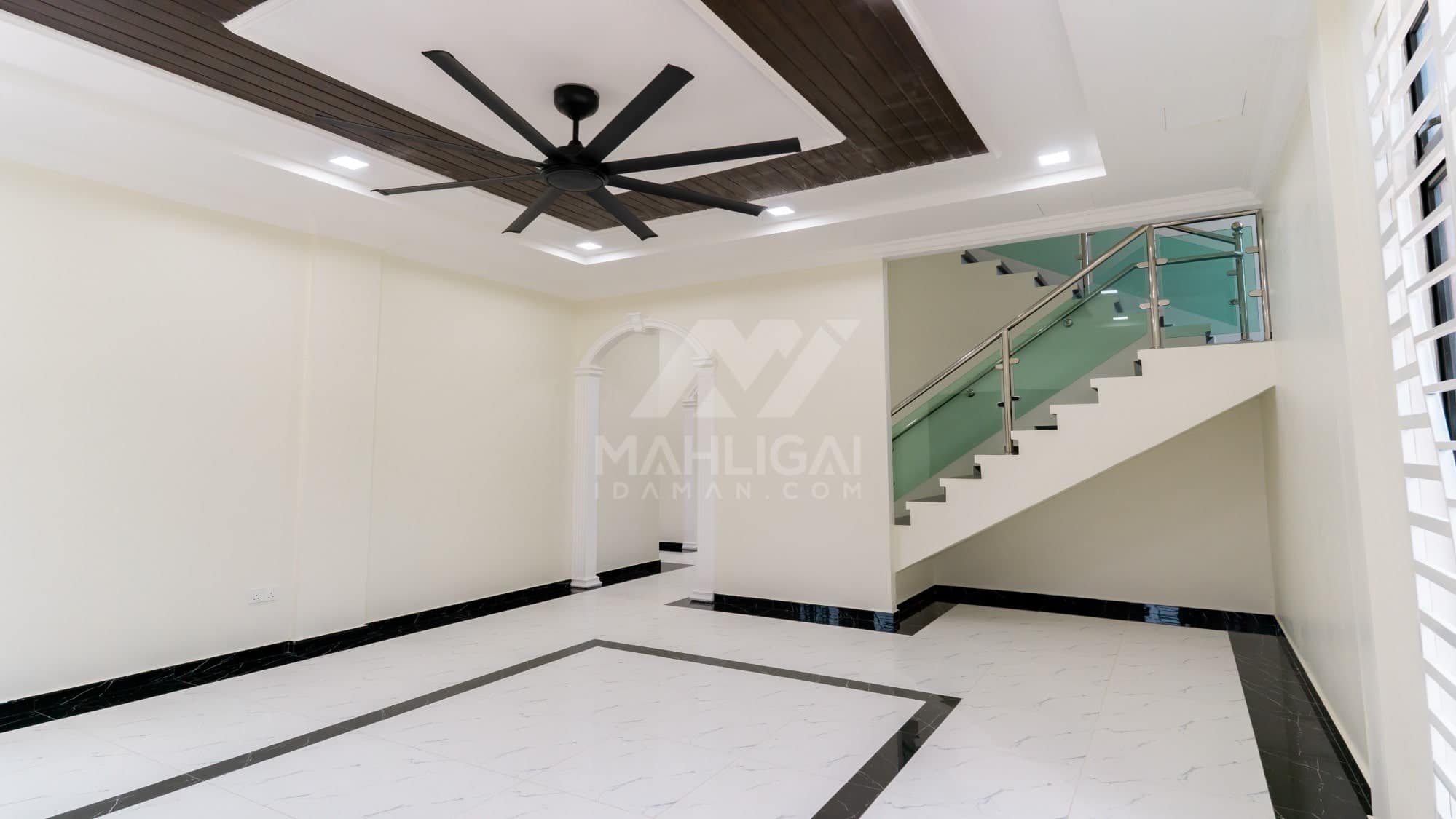 Banglo ini dibina dengan spesifikasi asas Pakej Silver dengan penambahan aksesori iaitu pemasangan cornice pada keseluruhan tingkap dan dinding luar rumah, groove line pada dinding di bahagian luar rumah.